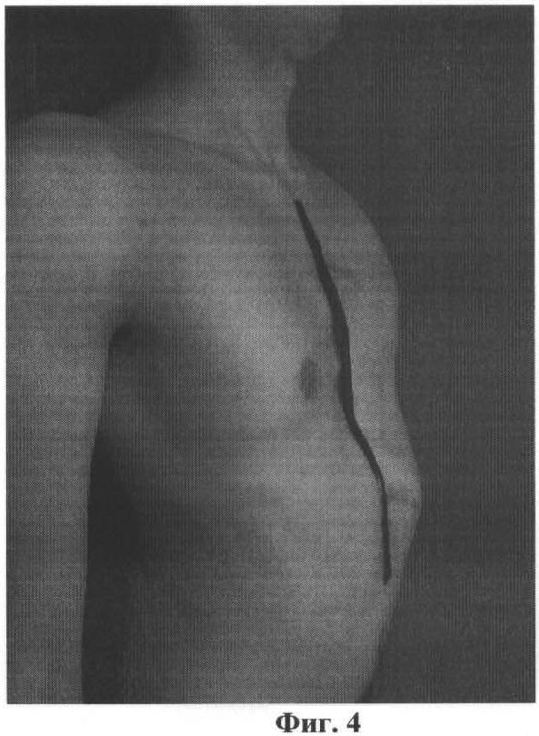 Больной С, 15 лет поступил в клинику 14 апреля 2009 г. для оперативной коррекции воронкообразной деформации грудной клетки 3 степени (Фиг 1, 2, 3).