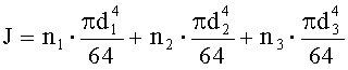 n1, n2 - соответственно суммарные числа проволочек в периферийных прядях троса, соответствующие диаметрам d1, d2; E - модуль упругости материала проволочек,