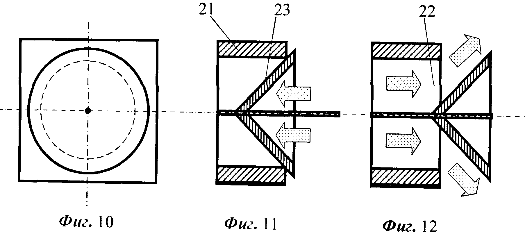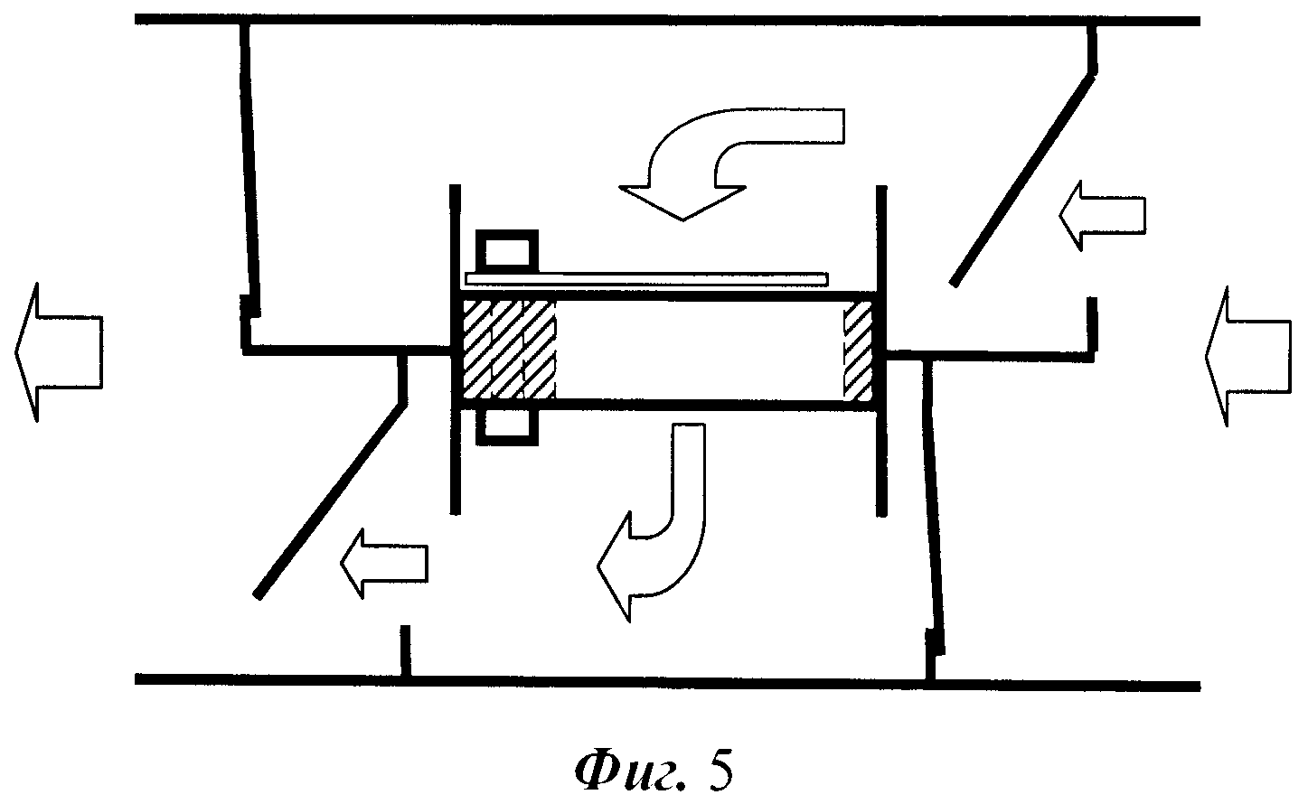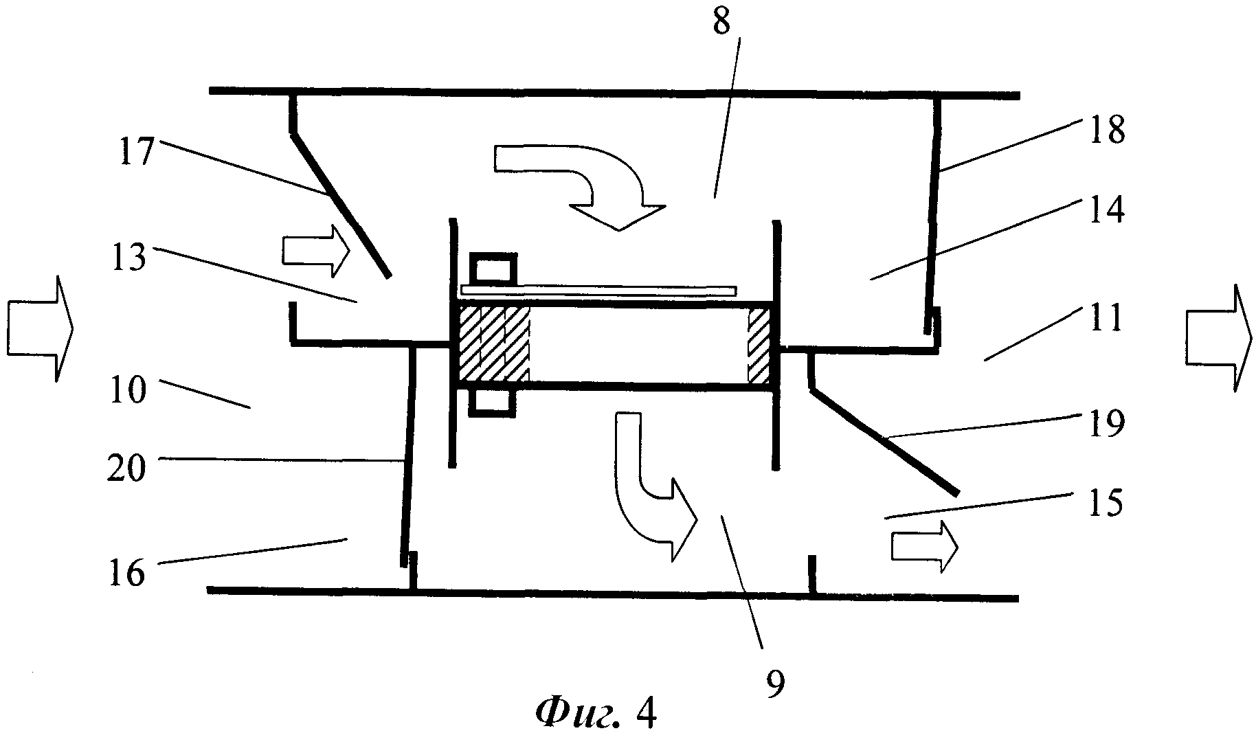 при поступлении воздушного потока во второе наружное отверстие (11) он направлялся через второе внутреннее отверстие (14) во входную камеру и после прохождения проема голосовой планки через выходную камеру и четвертое внутреннее отверстие (16) он направлялся в первое наружное отверстие (10).