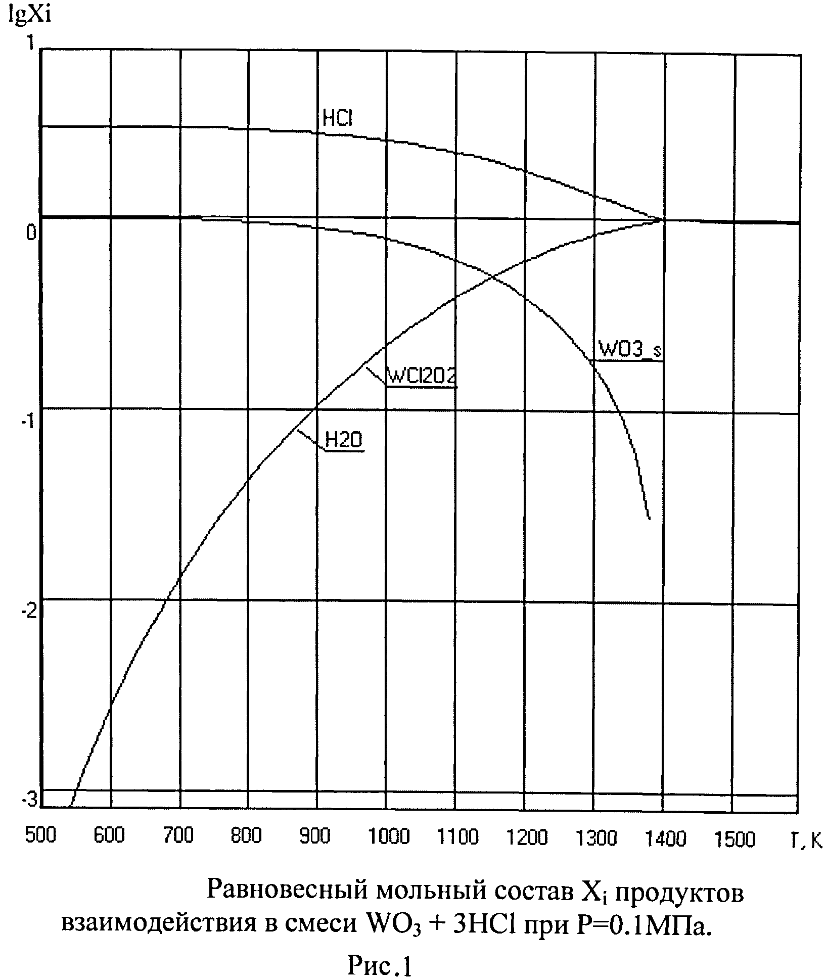 Способ получения хлора из хлороводорода с помощью вольфрамсодержащих соединений, включающий хлорирование триоксида вольфрама хлороводородом при температуре более 1400 К, выделение диоксидихлорида вольфрама из газовой смеси продуктов хлорирования, окисление диоксидихлорида вольфрама кислородом с выделением хлора при температуре менее 900 К и возврат триоксида вольфрама на стадию хлорирования.