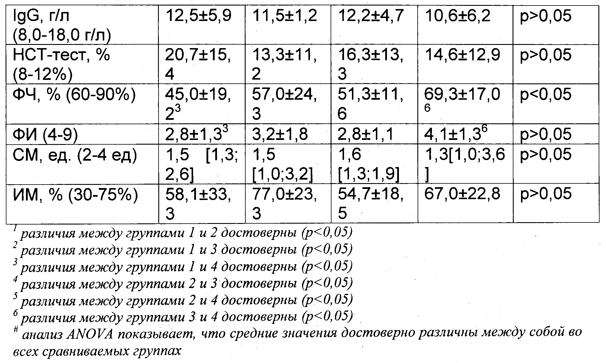 Изобретение относится к области медицины, а именно клинической лабораторной диагностике и может использоваться для определения целесообразности проведения иммунологического обследования у больных хроническими инфекционно-воспалительными заболеваниями (ХИВЗ) различной локализации. Иммунологическое исследование у больных хроническими инфекционно-воспалительными заболеваниями различной локализации проводится с целью назначения иммуномодулирующей терапии. Наличие часторецидивирующих бактериальных инфекций является проявлением вторичной иммунной недостаточности, что приводит к тому, что иммунологическое исследование выполняется практически всем обследуемым больным данной группы. В настоящее время не существует критериев для определения целесообразности выполнения иммунологического исследования у данной категории больных (1, 2, 3, 4, 5). Обследовались больные хроническими инфекционно-воспалительными заболеваниями ЛОР органов, бронхо-легочной системы, кожи, мочевыделительной системы. Различными авторами получены следующие результаты. Так, по данным Косяковой Н.И. и соавторов [1], изменения в иммунном статусе у пациентов с хроническими инфекционно-воспалительными заболеваниями выявлены в среднем у половины пациентов, так, у 56,8%±2,1% пациентов отмечены низкие показатели иммуноглобулинов класса А, интерферона альфа, интерлейкина -1, слабая динамика нарастания иммуноглобулинов класса М и сниженная функциональная активность нейтрофилов. У 42,8%±1,8% пациентов было отмечено снижение иммунорегуляторного индекса, то есть изменения в иммунограмме были выявлены только у половины пациентов, включенных в исследование, соответственно иммунологическое исследование каждому второму пациенту было выполнено излишне. Безрукова Е.В. и соавторы [2] при риносинусите отмечают отсутствие в гемограмме значимых отклонений, при этом всем пациентам выполняется иммунологическое обследование. Фролов А.П. [3], исследуя иммунный статус у больных с рожей, отмечает, что у больных с различными формами рожи количество лейкоцитов, лимфоцитов было в пределах нормальных значений, и в то же время всем группам пациентов было выполнено иммунологическое обследование. По результатам иммунологического обследования характерным был Т-супрессорный иммунодефицит, снижение уровня иммуноглобулинов класса А и увеличение количества циркулирующих иммунных комплексов, при этом нарушения в иммунной системе при некротической форме рожистого воспаления были более выражены. Известно, что рожистое воспаление вызывается стрептококковой флорой, некротический характер процесса свидетельствует о присоединении анаэробной флоры. Учитывая, что при всех формах рожистого воспаления этиологическим фактором является Streptococcus spp., поэтому изменения в иммунограмме могут быть однотипны во всех группах, присоединение анаэробной флоры и развитие некротической формы процесса могло усугублять иммунодефицит. Однако автором не проведен анализ взаимосвязи клинических проявлений заболевания, возбудителя и изменений в иммунограмме, возможные критерии определения показаний к иммунологическому обследованию не выделены. По данным Скороходкиной О.В. и соавторов [4] всем пациентам с клиническими признаками вторичной иммунной недостаточности было выполнено иммунологиче
