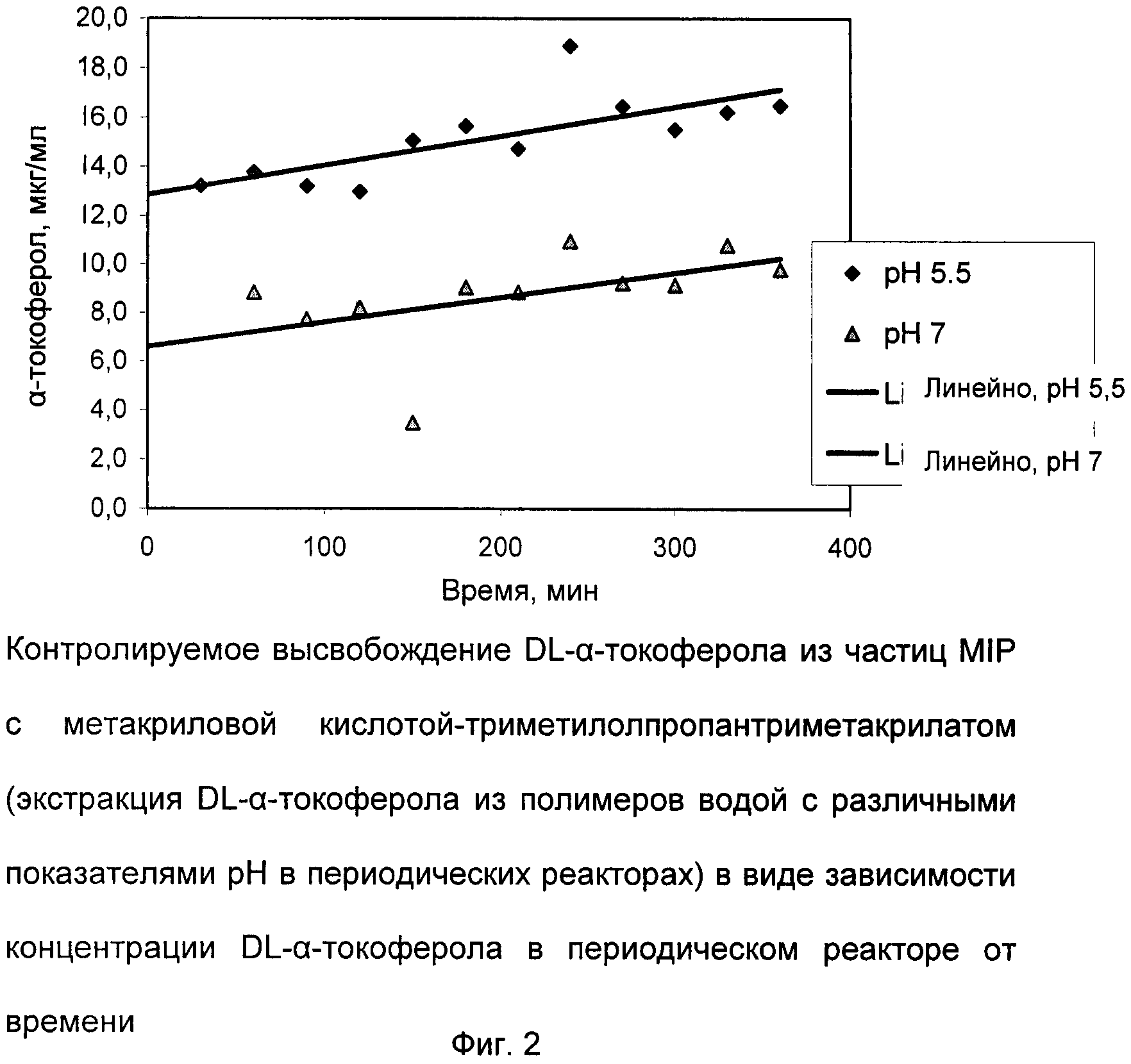 Объектом настоящего изобретения являются косметические или дерматологические препараты, содержащие по меньшей мере одно действующее вещество, по меньшей мере один полимер, молекулярно впечатанный в присутствии этого действующего вещества, и по меньшей мере одну жировую фазу. При разработке косметических изделий, обеспечивающих достижение особых эффектов, решающее значение имеет надлежащий выбор ингредиентов. Огромный ассортимент предлагаемых ныне рынком сбыта компонентов и сырья для косметических композиций продолжает непрерывно расширяться, поскольку потребитель заинтересован в приобретении удовлетворяющей их требованиям эффективной продукции, например, косметических изделий, способных предупреждать проявления старения. Изготовители косметической продукции также проявляют особую заинтересованность в действующих веществах, способных восстанавливать кожу или защищать ее от последствий вызываемого светом старения. Раньше подобные действующие вещества в первую очередь служили для разглаживания и увлажнения кожи, однако сегодня их ассортимент дополнен множеством различных веществ, обладающих физиологическим действием. Примером таких веществ являются витамины, фруктовые кислоты, а также керамиды. При этом все большее значение приобретают методы стабилизации подобных действующих веществ. В сфере косметики проявляют большую заинтересованность в действующих веществах, способных сохранять стабильность в водных или содержащих воду системах. Для сохранения эффективности неустойчивых по отношению к воздействию тепла, чувствительных к окислению или легколетучих косметических или дерматологических действующих веществ их стремятся защитить непосредственно в составе препарата. Нередко возникает необходимость в обеспечении долговременного высвобождения косметических или дерматологических действующих веществ (так называемого контролируемого высвобождения). Для обеспечения контролируемого высвобождения косметических действующих веществ в отдельных сферах хорошо оправдывает себя, например, использование полимерных микрокапсул, позволяющее также защитить действующие вещества. В идеальном случае действующие вещества должны высвобождаться из полимерных микрокапсул не при хранении соответствующего препарата, а лишь в предусматриваемом для проявления его действия месте. Высвобождение действующих веществ из микрокапсул в процессе применения содержащих их препаратов часто происходит в результате разрушения полимерной оболочки, обусловленного механическими, тепловыми, химическими или ферментативными воздействиями. Однако, подобные воздействия на полимерную оболочку в большинстве случаев оказывают негативное влияние на биологическую активность заключенных в нее действующих веществ. Происходящее в соответствии с подобным механизмом высвобождение действующих веществ из косметических композиций для ухода за кожей, прежде всего из препаратов, предназначенных для обработки чувствительной, раздраженной или детской кожи, по очевидным причинам является проблематичным или невозможным. Кроме того, при уходе за кожей особое внимание следует уделять отсутствию возможного повреждения ее кислотозащитного слоя непригодными добавками, а, напротив, сохранять этот слой и поддерживать его функ