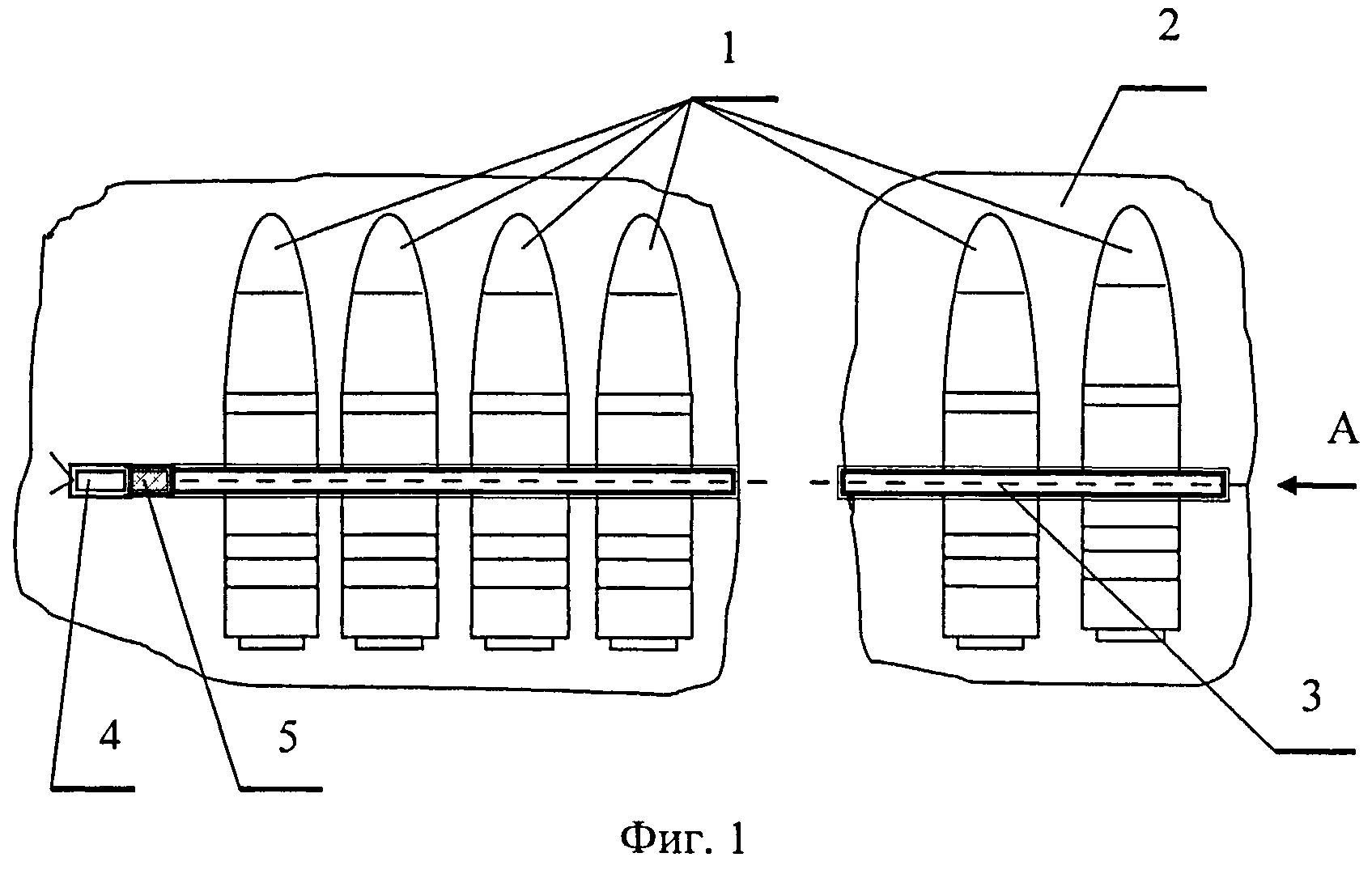 Изобретение относится к области взрывных работ по утилизации военной техники, обычных видов боеприпасов, в том числе артиллерийских снарядов, минно-торпедных боеприпасов и боевых частей. В настоящее время на складах и арсеналах, в военных частях скопилось огромное количество устаревших и находящихся за пределами сроков хранения боеприпасов, представляющих большую потенциальную опасность и вместе с тем содержащих продукты утилизации. За 20 лет с момента начала работ по утилизации боеприпасов практически создана новая подотрасль, которая переводит на практические рельсы необходимый этап жизненного цикла боеприпаса - утилизацию. Фактически решена проблема утилизации тротилосодержащих боеприпасов и боеприпасов, снаряженных раздельно-шашечными взрывчатыми веществами (ВВ) на основе гексогена (боеприпасов 1 и 2 классов). Однако проблемными остаются пока еще боеприпасы, снаряженные гексогеносодержащими ВВ (типа МС, ФС, ТГА, ТГАФ и т.п.) методом порционного прессования (боеприпасы 3 и 4 классов). Большую трудность представляют боеприпасы сложных конструкций, неразборные боеприпасы и боеприпасы, содержащие суррогаты (составы типа аммотолов, ТД и др.). Разработанная к настоящему времени технология гидрокавитационного расснаряжения боеприпасов, снаряженных гексогенсодержащими ВВ, и позволяющая получать продукты утилизации, по многим причинам не нашла широкого применения. Серьезным вопросом практической утилизации является и вопрос утилизации в труднодоступных местах, откуда экономически очень дорого доставлять боеприпасы к центрам утилизации. В этой связи почти четвертая часть всех утилизируемых боеприпасов ежегодно уничтожается подрывом или сжиганием (выжиганием ВВ). Преимущества метода выжигания ВВ перед уничтожением подрывом следующие: 1. Экологическое преимущество в том, что хотя в первой фазе горения ВВ (по модели Зельдовича-Беляева) токсичных продуктов - оксидов углерода азота, цианистых соединений - может образоваться больше, чем при их детонации, но во второй фазе в условиях доступа кислорода эти продукты доокисляются, вследствие чего, например, теплота сгорания тротила и гексогена в несколько раз превышают их теплоту взрыва. 2. При сжигании ВВ в боеприпасах остаются вторичные продукты утилизации, например, лом черного и цветных металлов. 3. При сжигании отсутствуют разрушения, вызываемые фугасным действием взрыва. 4. При утилизации боеприпасов сжиганием на площадке ведения работ не образуется воронок, что исключает необходимость выполнения дополните6льных работ по рекультивации и планированию площадки. В методе выжигания важную роль играет выбор способа воспламенения ВВ. Известный [1] и широко применяемый для утилизации минно-торпедных боеприпасов способ воспламенения ВВ с использованием легковоспламеняющихся жидких углеводородов (бензина, керосина) по ряду причин не является оптимальным. Указанный способ применим только в тех случаях, когда есть доступ к открытому срезу ВВ достаточно большой поверхности (в боеприпасах минно-торпедного вооружения снимаются заливочные крышки). Способ требует для поддержания горения свободного доступа кислорода воздуха, поэтому сжигание ВВ можно производить в камерах только небольшого объема. Он практически неприменим для утилизации артиллерийских снарядов (из-за