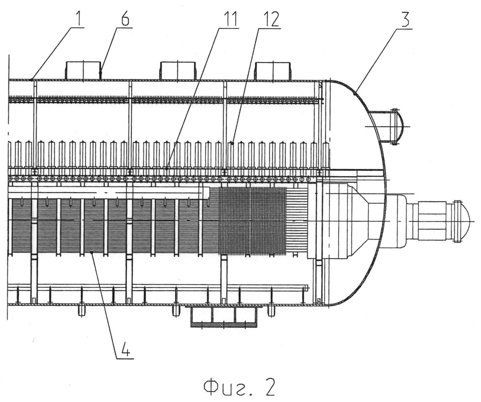 на фиг.1, 2 показан продольный разрез парогенератора;