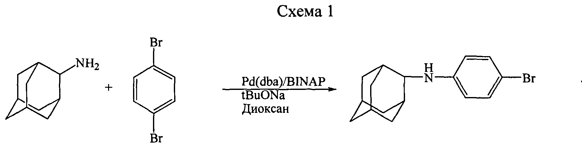 1. Способ получения N-(4-бромфенил)-N-(2-адамантил)амина из адамантанона и пара-броманилина, отличающийся тем, что смесь адамантанона, пара-броманилина и монооксида углерода подвергают взаимодействию, катализируемому солями или карбонилами металла, выбранными из группы, включающей родий, рутений, иридий, кобальт, железо, причем взаимодействие проводят при повышенном давлении и при нагревании в присутствии осушителя в полярном протонном или апротонном растворителе, выбранном из группы тетрагидрофуран, ацетонитрил, этилацетат, при этом мольное соотношение адамантанона, пара-броманилина и катализатора составляет 1,0-1,1:1,0:0,01-0,05. 2. Способ по п.1, отличающийся тем, что его осуществляют при давлении СО 5-100 атм. 3. Способ по п.1, отличающийся тем, что его осуществляют при температуре 25-200°C. 4. Способ по п.1, отличающийся тем, что в качестве катализатора используют RuCl3·3H2O. 5. Способ по п.1, отличающийся тем, что в качестве катализатора используют димер диацетата родия. 6. Способ по п.1, отличающийся тем, что в качестве катализатора используют карбонил кобальта. 7. Способ по п.1, отличающийся тем, что в качестве катализатора используют хлорид иридия (III). 8. Способ по п.1, отличающийся тем, что в качестве катализатора используют карбонил железа.