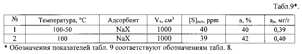 Изобретение относится к нефтеперерабатывающей промышленности, в частности к способу удаления сераорганических соединений из жидкого углеводородного топлива. Изобретение касается способа удаления сераорганических соединений из жидкого углеводородного топлива с помощью адсорбентов, в качестве которых используют алюмо-никель(или кобальт)-молибденовый катализатор гидроочистки, и/или синтетические цеолиты типа NaX или ZSM, и/или материалы, содержащие оксиды алюминия, и/или оксиды цинка и меди, при атмосферном давлении, отличающийся тем, что топливо пропускают через несколько слоев адсорбентов, каждый из которых работает в определенном диапазоне температур, при котором достигается наибольшая эффективность удаления сераорганических соединений с использованием данного адсорбента. Технический результат - эффективное удаление сераорганических соединений из жидкого углеводородного топлива. 4 з.п. ф-лы, 18 табл., 18 пр.