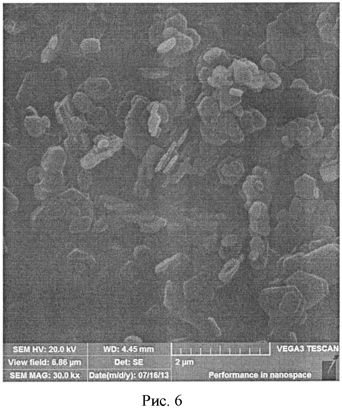 Выделение гидроксида магния проводят аналогично примеру 1. Характеристики полученного гидроксида магния представлены в таблице, форма и размер первичных частиц - и на рисунках 5, 6.