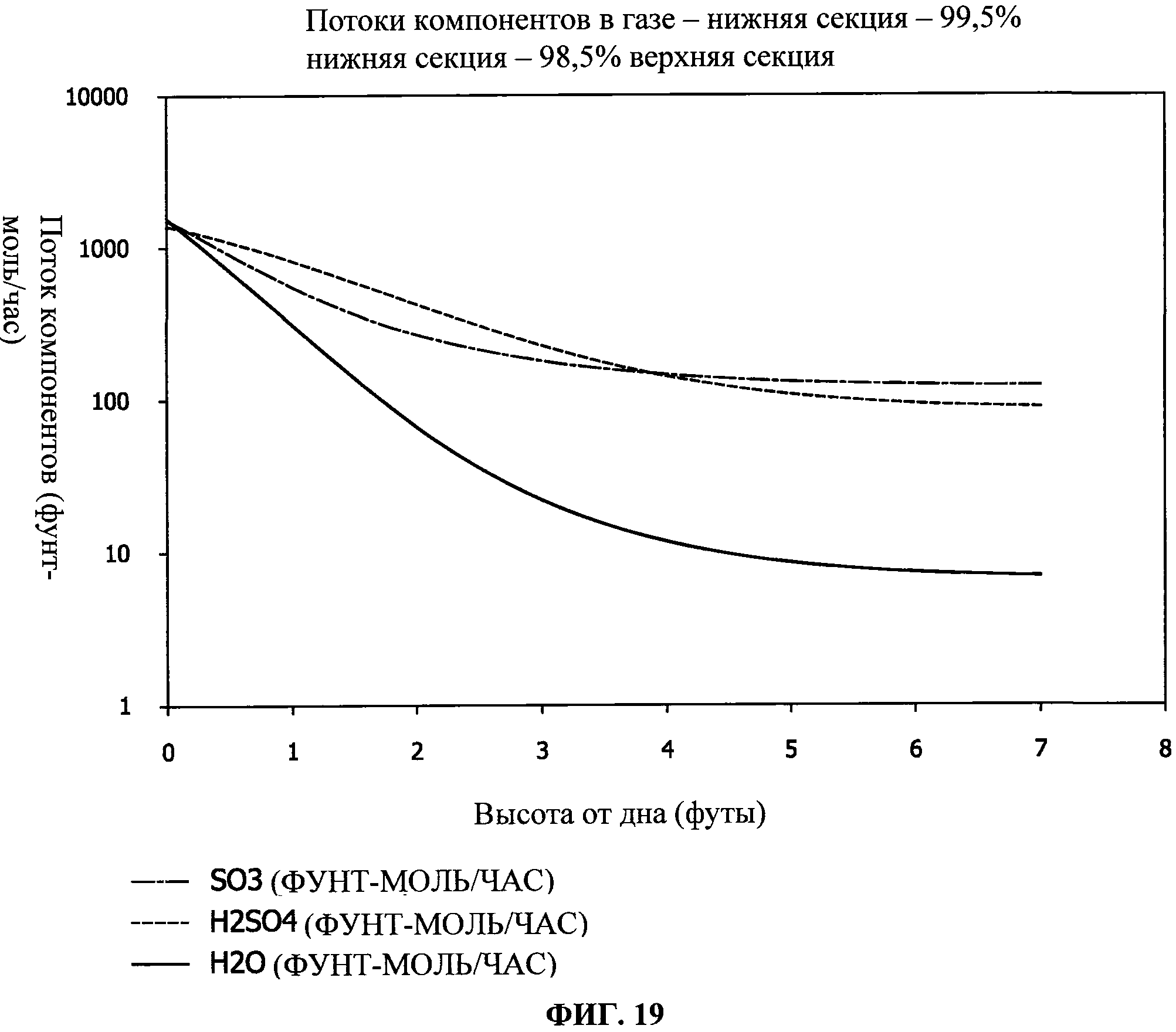 установку средств для циркуляции вторичной поглощающей жидкости через указанный существующий промежуточный абсорбер, в котором остаточный SO3 может быть удален из потока газа, выходящего из указанной первичной абсорбционной зоны, путем передачи в указанную вторичную поглощающую жидкость, причем указанные средства для циркуляции указанной вторичной поглощающей жидкости выполнены с такими размерами и/или управляются средствами регулирования расхода так, что отношение массового расхода указанной вторичной поглощающей жидкости к газу в указанной вторичной абсорбционной зоне составляет от примерно 1,0 до примерно 7,0 или от примерно 14 до примерно 18.