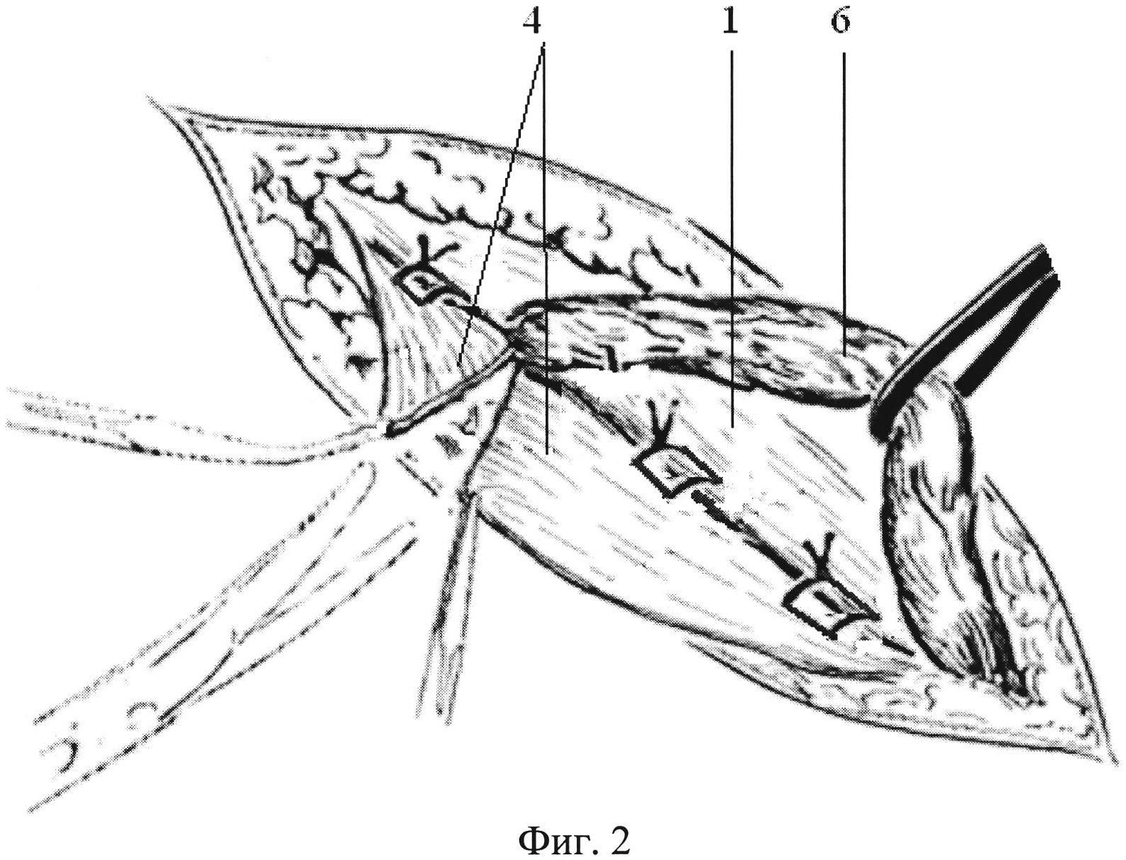 Изобретение относится к медицине, а именно к хирургии и герниопластике, может быть использовано для пластики пахового канала при паховых грыжах любых видов первичных (прямых, косых, скользящих) и рецидивных. За последнее столетие для лечения паховых грыж предложено более 200 способов и различных модификаций радикальных оперативных вмешательств, из которых только немногие нашли широкое применение в хирургической практике (способы Бассини, Постемского, Шолдайса, Кимбаровского, Лихтенштейна и др.). В 1884 г. Бассини выполнил первую анатомически обоснованную пластику грыжевых ворот. Через пять лет он сообщил о частоте рецидивов грыж, составивших около 10%. В настоящее время специализированные герниологические центры сообщают об уровне рецидивов 1%-5%, тогда как в общехирургических отделениях их частота возрастает от 5% до 20%. Грыжи передней брюшной стенки, особенно паховые, наиболее часто встречаются у мужчин в пожилом возрасте (Оперативная хирургия / Под общей редакцией И. Литтманна. - 2-е изд. на русском языке. - Будапешт: изд-во Венгрия, 1982, с. 342). Это во многом связано с атрофией мышц в зоне пахового канала, понижением эластичности апоневротических структур, наличием у лиц пожилого и старческого возрастов патологических состояний, повышающих внутрибрюшное давление. Ситуация при оперативном лечении паховых грыж усугубляется и тем, что у этой категории больных имеет место множество сопутствующих заболеваний дыхательной и сердечно-сосудистой систем. Поэтому немаловажным является вопрос ранней активизации больных в послеоперационном периоде. При решении вопроса оперативного лечения пациентов пожилого и старческого возрастов важнейшим моментом является выбор способа пластики пахового канала (Кукуджанов Н.И. Паховые грыжи. - М.: Медицина, 1969, 439 с.). Из предложенных способов пластики, наиболее часто применяемых у взрослых пациентов, являются методы Бассини, Постемского, Шолдайса и Лихтенштейна. Известен способ Шолдайса, предполагающий выполнение многослойной паховой герниопластики, разработанный в 1950-х годах в Канаде (Нестеренко Ю.А. Шляховский И.А. Первый опыт применения операции Шулдайса. Рос. Мед. Журнал, 1998; 3: с. 24-27). Разрез кожи обычный. После рассечения передней стенки пахового канала следует выделить и взять на резиновую держалку подвздошно-паховый нерв. Полностью пересекают и иссекают волокна m.cremaster, особенно у места его перехода на семенной канатик. Это необходимо для получения хорошего доступа к глубокому кольцу пахового канала. Выделяют и отводят в сторону семенной канатик. Удаляют грыжевой мешок. Особое значение при пластике придают поперечной фасции, которую рассекают от внутреннего пахового кольца до лонного бугорка параллельно паховой связке на 1-2 см медиальнее ее. Медиальный листок фасции мобилизуют и освобождают от предбрюшинного жира до задней стенки влагалища прямой мышцы живота. Далее производят восстановление задней стенки пахового канала. Первый непрерывный шов начинают медиально от лонного бугорка. С его помощью латеральный край поперечной фасции подшивают к нижней поверхности медиального, позади влагалища прямой мышцы. Этот шов завязывают у внутреннего кольца и оставляют один конец нити длинным. Шов продолжают книзу в обратном направлении, соединяя обе части поперечной фасции до лонного бугорка. К