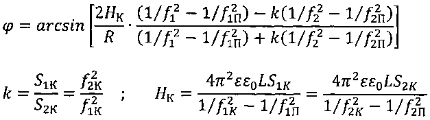 f2 - частота второго автогенератора при измерении угла наклона плоскости.