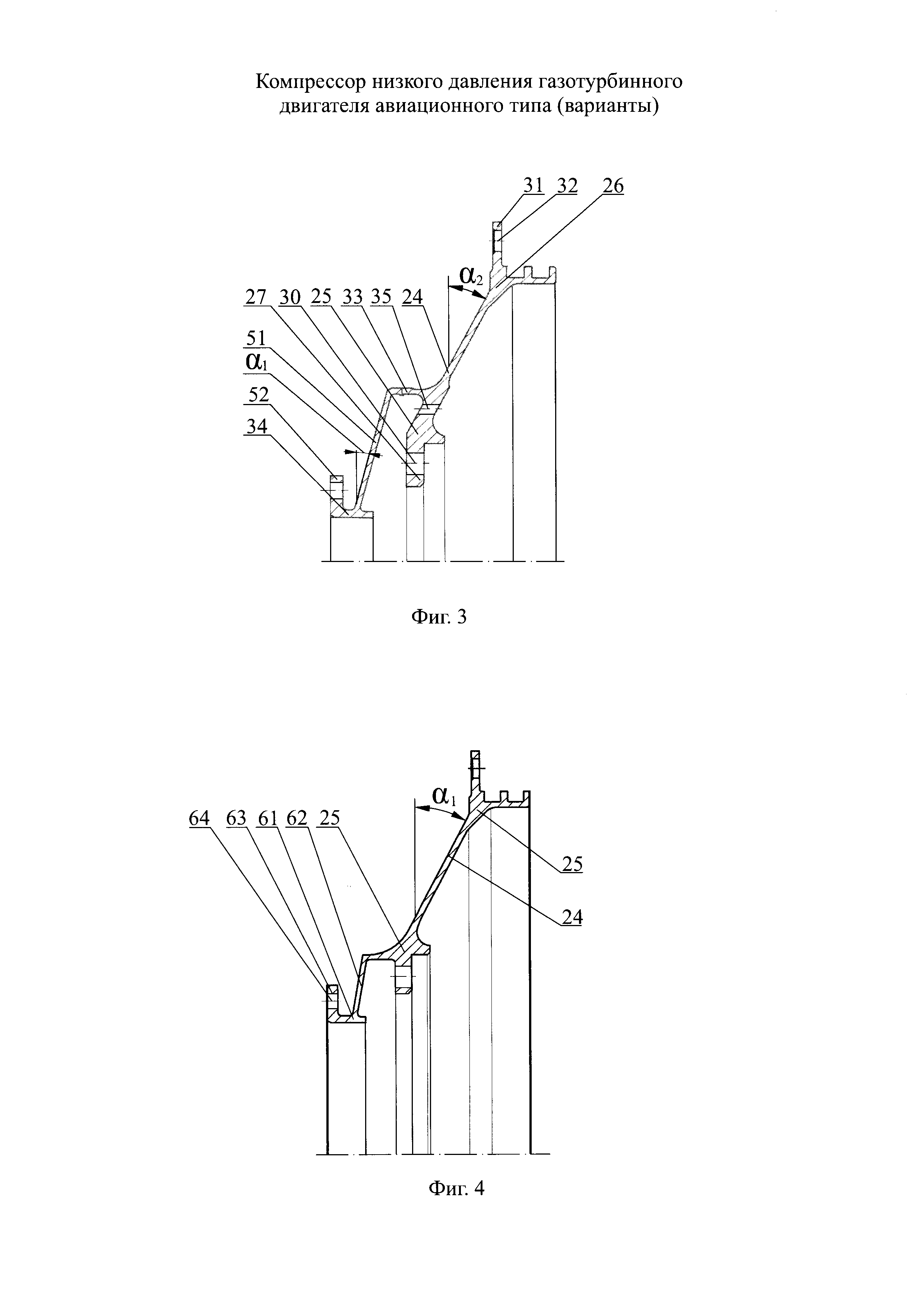Изобретения относятся к области производства и эксплуатации авиационных газотурбинных двигателей (ГТД), в частности к конструкциям и элементам компрессора низкого давления (КНД). Известен компрессор ГТД, включающий упруго-демпферную опору ротора с упругим элементом опоры типа «беличье колесо» (С.А. Вьюнов, Ю.И. Гусев, А.В. Карпов и др. Конструкция и проектирование авиационных газотурбинных двигателей. Москва. Машиностроение 1989, стр. 373-377). Известен компрессор ГТД, включающий опору ротора, выполненную корпусом опоры с упругим демпфером типа «беличье колесо» (Н.Н. Сиротин, А.С. Новиков, А.Г. Пайкин, А.Н. Сиротин. Основы конструирования производства и эксплуатации авиационных газотурбинных двигателей и энергетических установок в системе CALS технологий. Книга 1. Москва. Наука 2011. стр. 734-736, рис. 15.4, стр. 767). К недостаткам указанных известных решений относится невысокая проработанность адаптации компрессора низкого давления к работе в стационарных наземных условиях. Известен вал ротора барабанно-дискового типа осевого компрессора двигателя с дисками, попарно объединенными в ступени и расположенными последовательно по потоку в продольной плоскости сечения барабана. Оба диска каждой ступени соединены между собой с помощью кольцевого бурта первого диска и посадочного пояска в полотне второго диска. Кольцевой бурт второго диска образует трактовую барабанную оболочку, выполняя роль проставки между вторым и первым дисками каждой последующей рабочей ступени. На ободах дисков выполнены клиновидные кольцевые углубления, которые образуют кольцевой паз типа "ласточкин хвост" для контакта с клиновидными кольцевыми выступами на торцах полок рабочих лопаток ротора (RU 2269678 C1, опубл. 10.02.2006). Известен компрессор низкого давления ГТД с валом ротора, включающим систему из четырех дисков, каждый из которых содержит обод для установки и приведения во вращение рабочих лопаток, сообщенный с валом турбины низкого давления (ТНД) (Н.Н. Сиротин, А.С. Новиков, А.Г. Пайкин, А.Н. Сиротин. Основы конструирования производства и эксплуатации авиационных газотурбинных двигателей и энергетических установок в системе CALS технологий. Книга 1. Москва. Наука 2011. стр. 249-259) К недостаткам известных решений относятся отсутствие системы выбора совокупности необходимых параметров дисков, образующих конфигурацию вала ротора и влияющих на площадь проходного сечения проточной части и размещение на ободе диска лопаток, формирующих аэродинамические процессы взаимодействия вала ротора барабанно-дисковой конструкции с потоком рабочего тела, вследствие отсутствия конкретизации диапазонов геометрических и аэродинамических параметров пространственной конфигурации дисков, а также сложность получения компромиссного сочетания повышенных значений КПД, запасов газодинамической устойчивости (ГДУ) компрессора и как следствие сложность обеспечения оптимальной динамической прочности и повышенного ресурса вала ротора при минимуме материалоемкости дисков и их соединений в конструкции вала. Известен компрессор низкого давления ГТД, выполненный с опорой вала ротора компрессора, включающей размещенные на валу подшипник, соединенный с корпусом опоры, систему смазки и охлаждения подшипника и уплотнительные элементы (А.А. Иноземцев, М.А. Нихамкин, В.Л. Сандрацкий «Газотурбинны