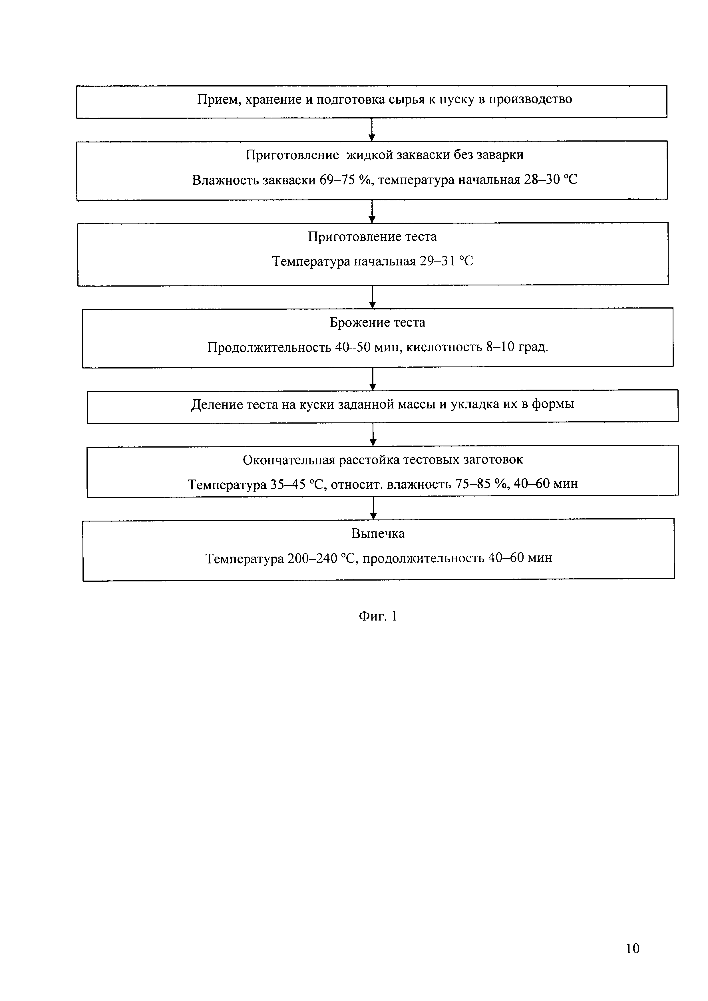 Изобретение относится к пищевой промышленности, в частности к хлебопекарному производству. Предложен способ производства ржано-пшеничного хлеба, предусматривающий приготовление жидкой закваски по унифицированной ленинградской схеме в трех фазах разводочного цикла из смеси чистых культур микроорганизмов и дрожжей или сухого лактобактерина для хлебных заквасок и прессованных дрожжей в соотношении 4:1, для чего смешивают активированные дрожжи и бактерии, добавляют питательную смесь из муки ржаной и воды в соотношении 1:2 и оставляют на брожение до достижения кислотности 9-13 град, готовят солевой раствор, дрожжевую суспензию, измельчают и просеивают гречневую мучку, замешивают тесто, выбраживают тесто 40-50 мин до достижения кислотности 8-10 град, делят тесто на куски, укладывают в формы, расстаивают в течение 40-60 мин и выпекают при температуре 200-240°С - 40-60 мин при следующем соотношении исходных компонентов, %: мука ржаная хлебопекарная обдирная 32,9; мука пшеничная хлебопекарная первого сорта 13,0-14,1; гречневая мучка 0,5-1,1; жидкая закваска по унифицированной ленинградской схеме 23,5; дрожжи хлебопекарные прессованные 0,25; соль поваренная пищевая 0,75; патока 2,8; вода питьевая – остальное. Изобретение позволяет расширить ассортимент хлебобулочных изделий с повышенной пищевой и биологической ценностью, улучшить органолептические характеристики хлеба при одновременном обеспечении стабильности физико-химических свойств. 3 ил., 4 табл., 1 пр.