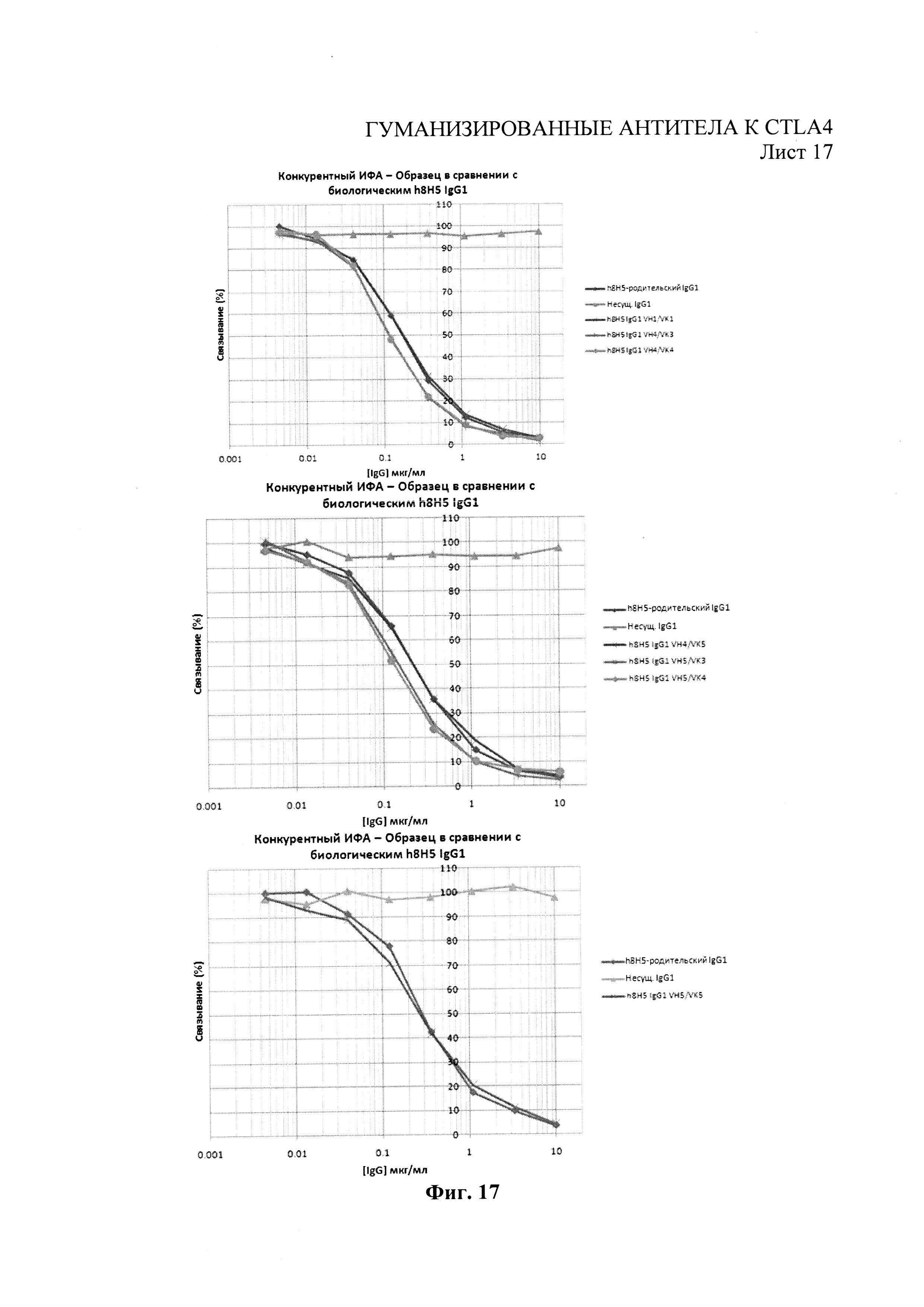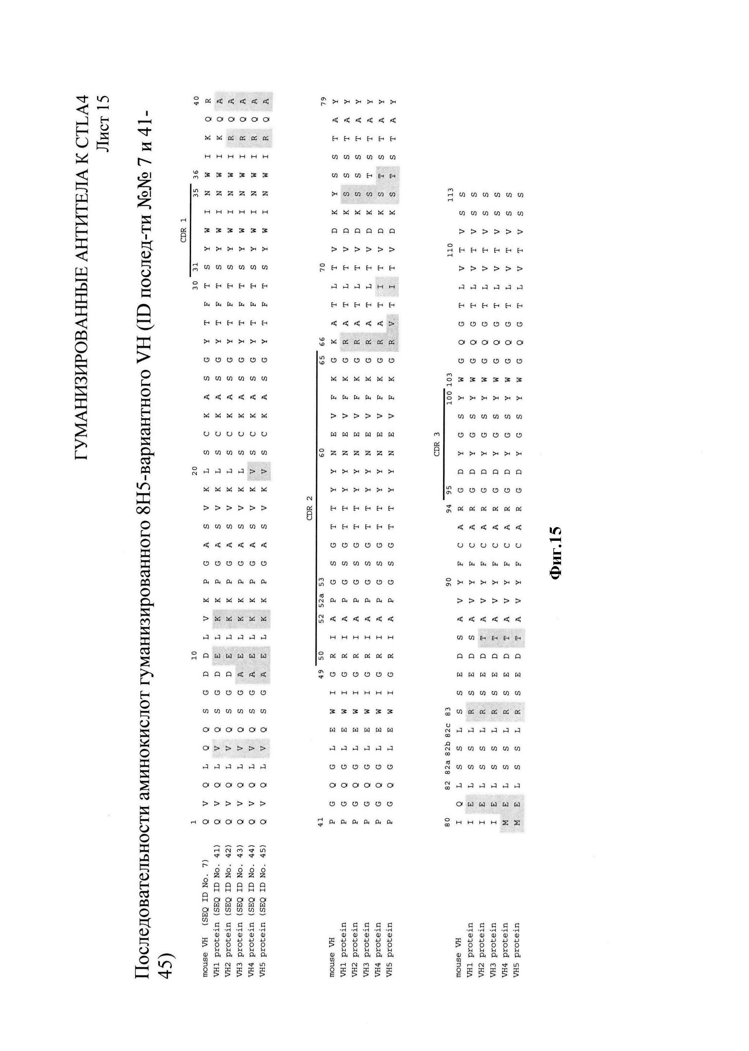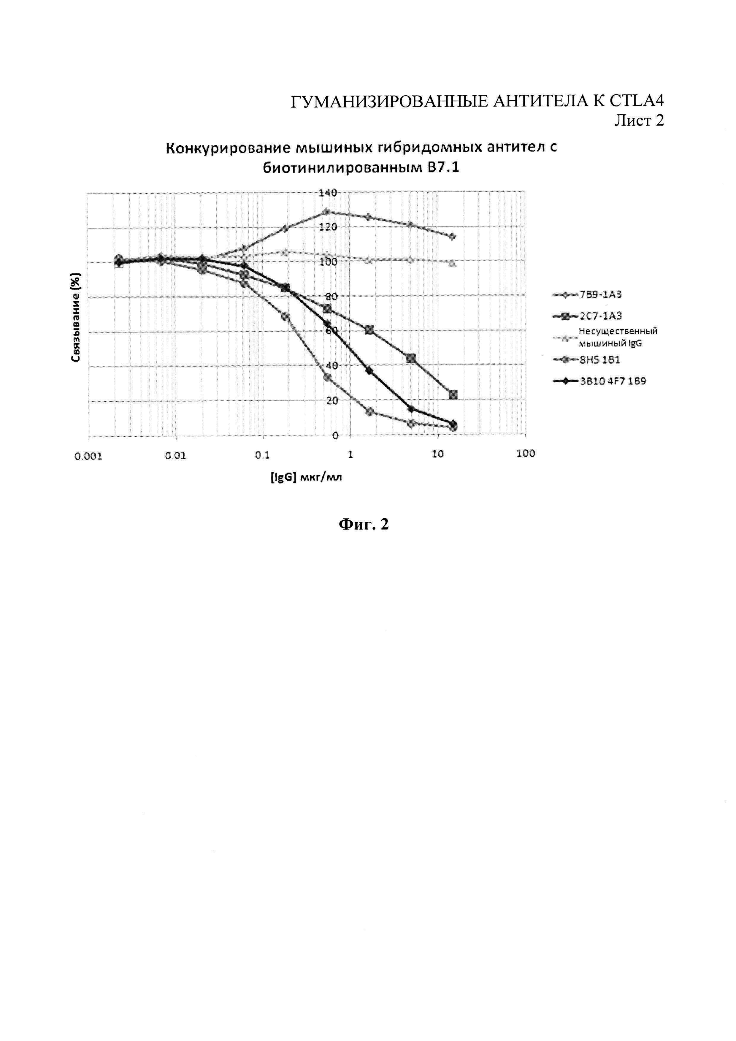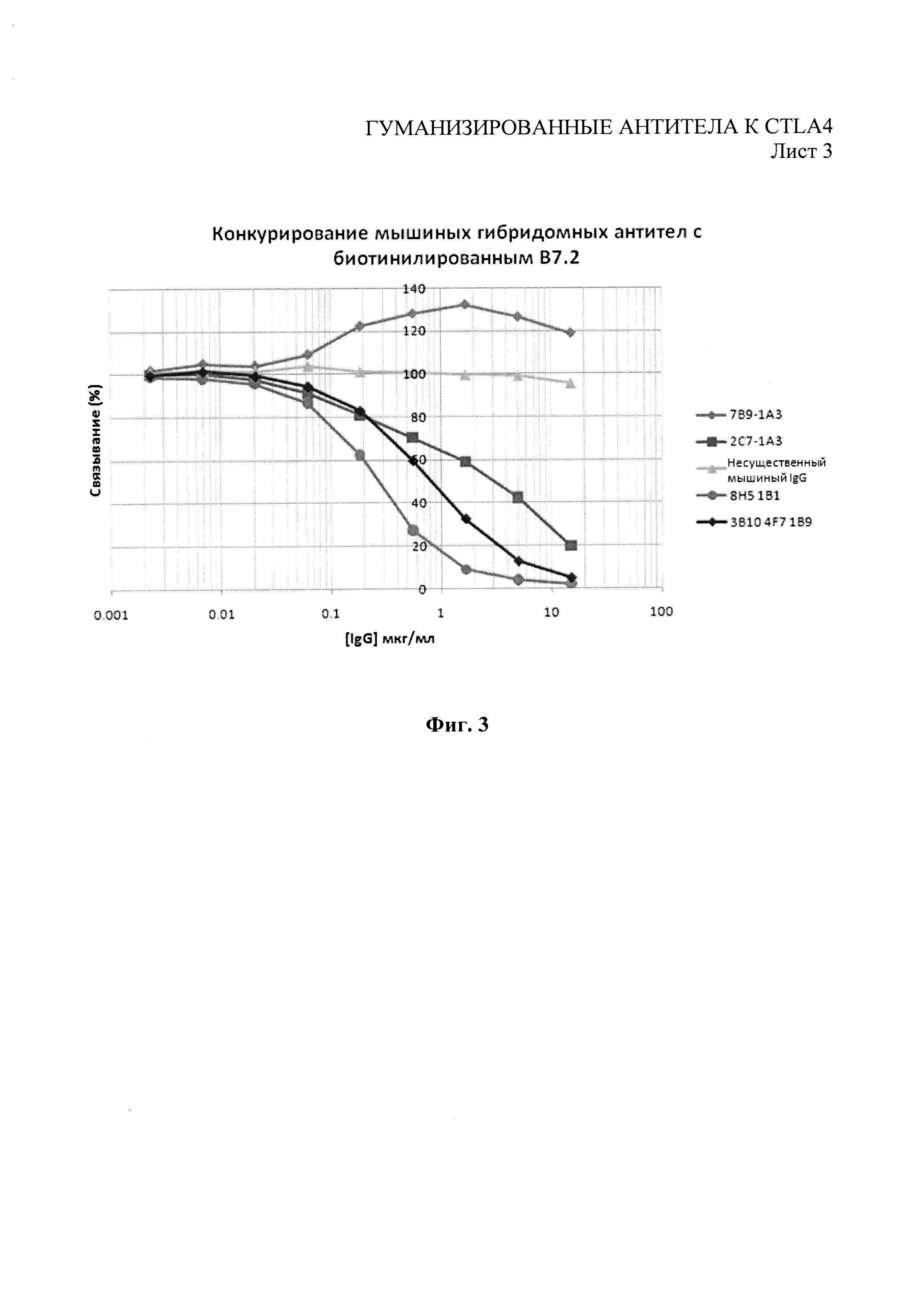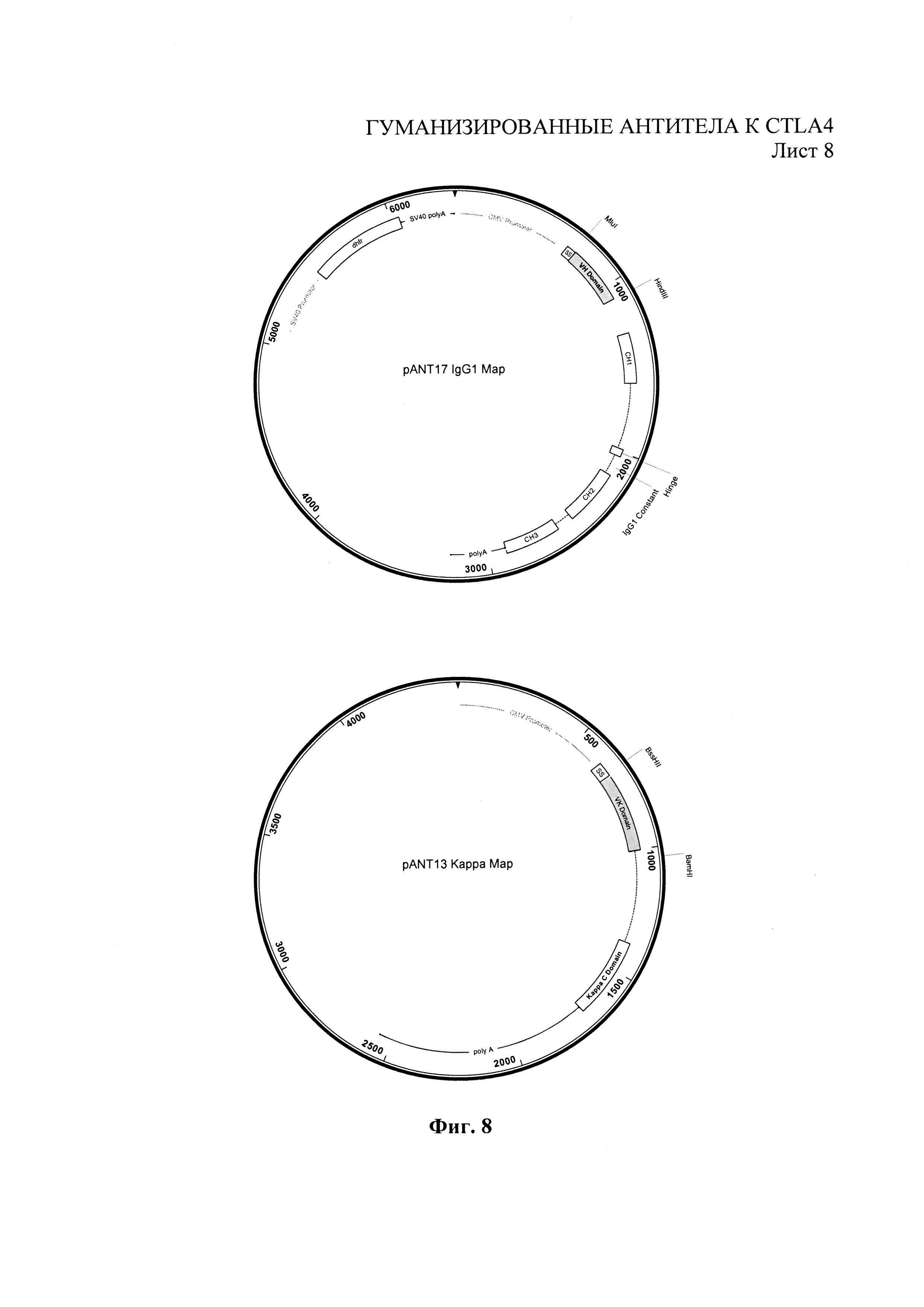 Область техники, к которой относится изобретение Данное изобретение относится к новым гуманизированным антителам против человеческого CTLA4 для лечения и профилактики заболеваний у людей, а также к способам лечения или профилактики заболеваний у людей при помощи таких антител. Уровень техники Иммунная система позвоночных требует множественных молекулярных и клеточных взаимодействий для достижения оптимальных иммунных ответов. В частности, активация Т-лимфоцитов (Т-клеток) является очень важным компонентом многих таких ответов. Антигенпредставляющие клетки (АРС) могут активировать Т-клетки путем представления антигенов через пептиды, переносимые молекулами главного комплекса гистосовместимости (МНС) к Т-клеточным рецепторам (TCR). Для такой активации также необходима дополнительная стимуляция антигенпредставляющими клетками. Для доставки неспецифического костимулирующего сигнала к Т-клеткам также требуется присутствие по меньшей мере двух гомологичных членов семейства В7 в антигенпредставляющей клетке, В7-1 (также именуемый В7, В7.1, или CD80) и В7-2 (также именуемый В7.2 или CD86), оба из которых могут передавать костимулирующие сигналы при связывании с антигеном CD28 в Т-клетках, что приводит к активации Т-клетки. CD28 является гомодимерным гликопротеиновым членом суперсемейства иммуноглобулинов (Ig) с одной внеклеточной вариабельной областью и присутствует в большинстве зрелых Т-клеток. Гомолог CD28, который был назван CTLA4 (антиген 4 цитотоксических Т-лимфоцитов, Cytotoxic Lymphocyte Associated Antigen; также был назван CD152) был открыт в 1987 г. (Brunet et al., (1987) Nature 328:267-270), и была выявлена его особая связь с цитотоксическими Т-клетками. Так же как и CD28, CTLA4 является членом суперсемейства иммуноглобулинов и содержит один внеклеточный домен Ig. Однако основной ролью CTLA4 является ингибирование активации Т-клеток, и это было доказано на мышах с дефицитом CTLA4 (Chambers et al., (1997) Immunity. 7:8855-8959), у которых наблюдалась тяжелая лимфопролиферация. Кроме этого, была продемонстрирована блокада CTLA4 для усиления ответов Т-клеток in vitro (Walunas et al., (1994) Immunity. 1:405-413) и in vivo (Keamey (1995) J. Immunol. 155:1032-1036), а также для повышения противоопухолевого иммунитета (Leach (1996) Science. 271:1734-1736). Следовательно, блокада CTLA4 может стать новым подходом в лечении заболеваний, особенно заболеваний человека, где может быть полезной иммуностимуляция, таком как лечение различных видов рака и инфекционных заболеваний. При разработке блокаторов функции CTLA4 внимание было сосредоточено на использовании моноклональных антител, особенно антител, полученных из трансгенных мышей, которым были внедрены гены, кодирующие человеческие иммуноглобулины (и с дефицитом генов иммуноглобулина мыши-хозяина). Продолжаются клинические испытания с такими антителами, в том числе с ипилимумабом (Keler et al., J Immunol 171:6251-6259(2003)), который является изотипом IgG1, и тремелимумабом (Ribas et al., Oncologist 12: 873-883(2005)), который является изотипом IgG2. В то время как иммуногенность (индукция антител против введенных человеческих моноклональных антител), по сообщениям, достаточно низка, ученые обеспокоены, что такие человеческие антитела, благодаря соматическим мутациям и перераспределению в последовательностях вариабельной области (которые могут привести к эпитопам Т-клеток), могут вызвать иммуногенность у некоторых пациентов, что приведет к нежелательным эффект