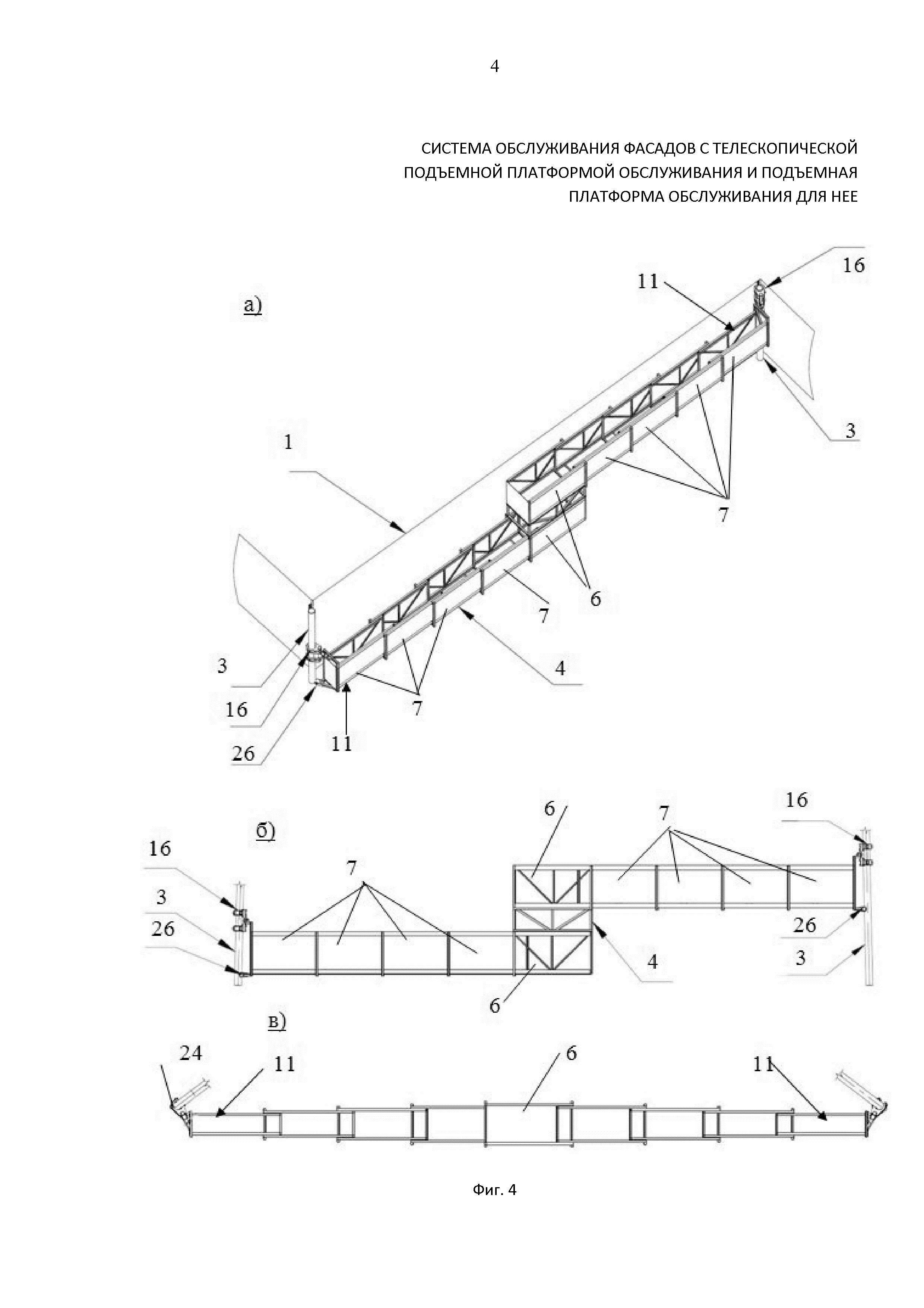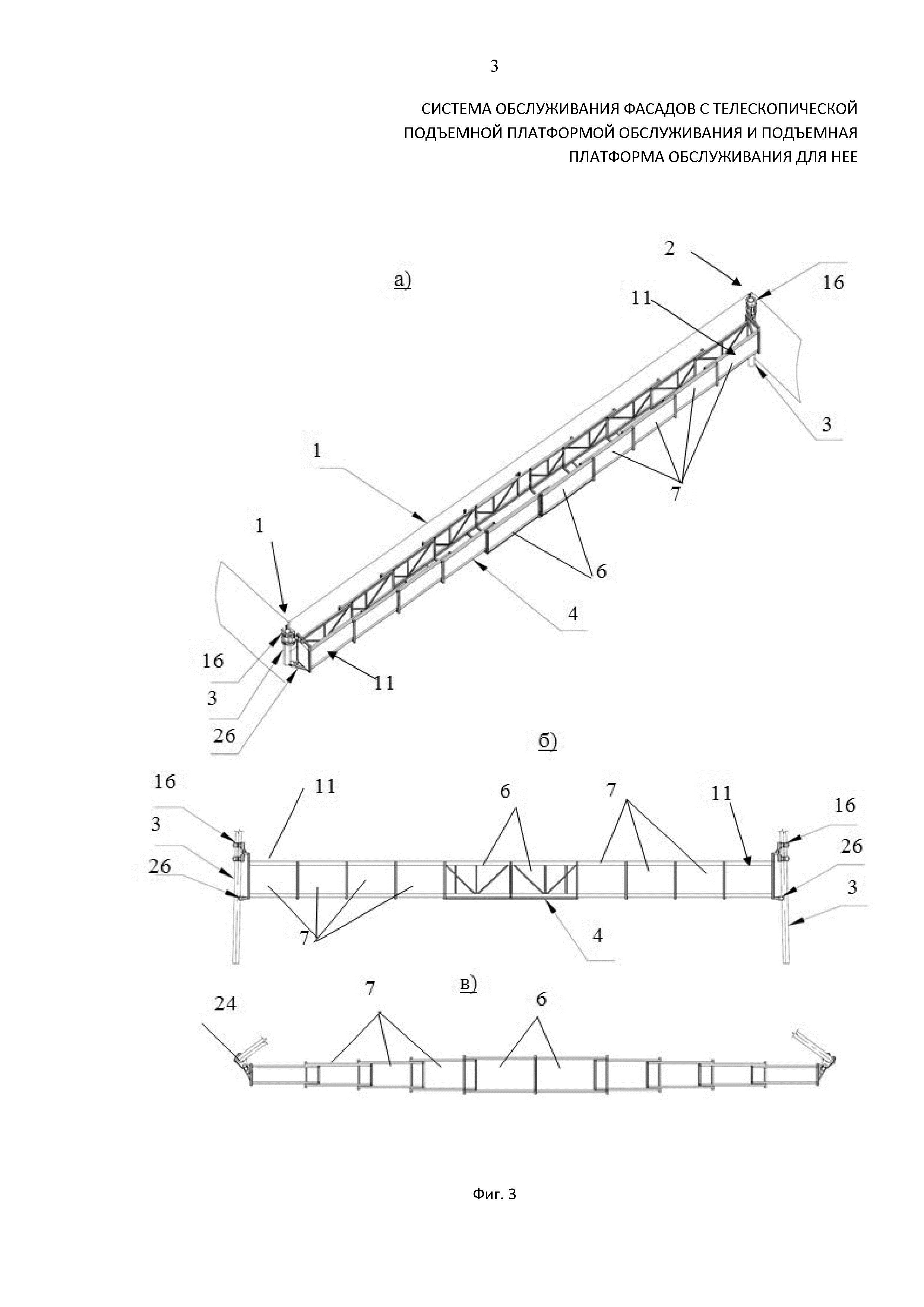 СИСТЕМА ОБСЛУЖИВАНИЯ ФАСАДОВ С ТЕЛЕСКОПИЧЕСКОЙ ПОДЪЕМНОЙ ПЛАТФОРМОЙ ОБСЛУЖИВАНИЯ И ПОДЪЕМНАЯ ПЛАТФОРМА ОБСЛУЖИВАНИЯ ДЛЯ НЕЕ