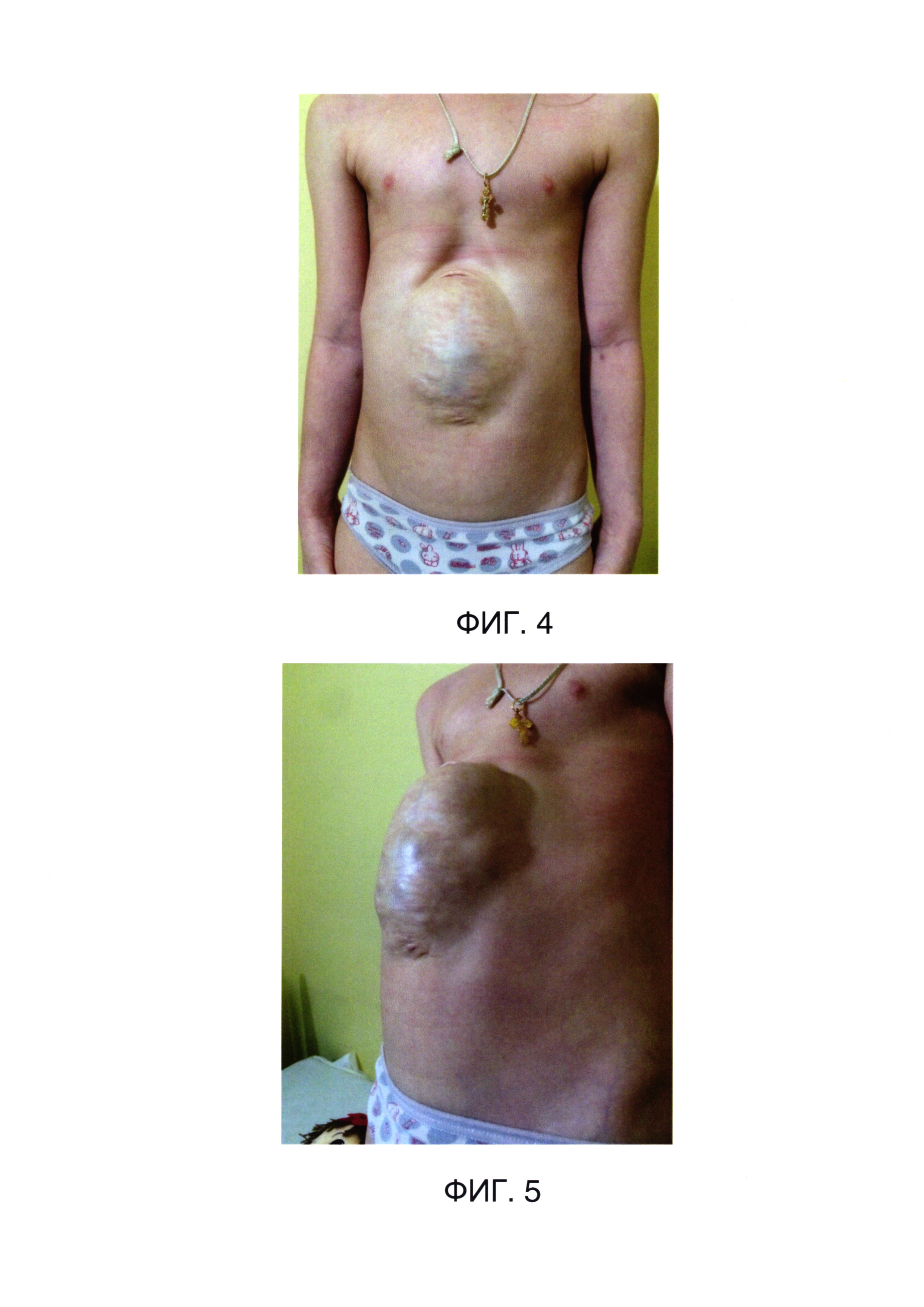 Изобретение относится к медицине, а именно к детской хирургии, может быть использовано для радикального одномоментного хирургического лечения больших и гигантских вентральных грыж у детей, рожденных с омфалоцеле. Лечения детей с вентральными грыжами больших и гигантских размеров является весьма трудной и актуальной задачей для детской хирургии. В подавляющем большинстве случаев грыжа передней брюшной стенки в детском возрасте формируется в результате этапного лечения врожденного порока, таких как гастрошизис и омфалоцеле [Исаков Ю.Ф., Володин Н.Н., Гераськин А.В. Неонатальная хирургия. М.: Издательство «Династия», 2011: 450-9]. В связи со стремительным развитием неонатологии и хирургии новорожденных, что позволило повысить выживаемость данной категории детей, повысилась частота возникновения абдоминальных грыж. Методики лечения омфалоцеле в периоде новорожденности, такие как консервативное лечение - путем обработки пуповинных оболочек дубящими растворами калия перманганата 5% или повидой-йода, а также оперативное лечение по методике Гросса приводят к формированию больших и гигантских артифициальных вентральных грыж [Исаков Ю.Ф., Дронов А.Ф. Детская хирургия: национальное руководство. М.: «ГЭОТАР-Медия», 2009: 307; Ашкрафт К.У., Холдер Т.М. Детская хирургия. СПб.: ООО «РАРИТЕТ-М»; 1999; т. 2: 395]. Выполнить радикальную пластику передней брюшной стенки в периоде новорожденности у данной категории больных затруднительно из-за выраженной висцеро-абдоминальной диспропорции, а также в связи с нередким сочетанием множественных врожденных пороков развития (мальротация кишечника, синдром Беквита-Видемана, пентада Контрелла). Методика Шустера (создание временной брюшной полости с последующей ранней отсроченной пластикой передней брюшной стенки) в некотором роде позволяет решить вопрос висцеро-абдоминальной диспропорции. Однако при ней также не всегда достигается адекватное восстановление анатомии мышц брюшного пресса. У пациентов, относящихся к этим категориям, формируется артифициальная вентральная грыжа больших и гигантских размеров, одномоментное радикальное оперативное лечение которой, даже в ясельном и дошкольном возрасте, весьма затруднительно из-за сохраняющейся висцеро-абдоминальной диспропорции, дистопии органов и сосудов брюшной полости [Гераськин А.В., Дронов А.Ф., Смирнов А.Н. Хирургия живота и промежности у детей: Атлас. М.: «ГЭОТАР-Медиа», 2012. - стр. 35]. Обычно в этих случаях требуется этапное лечение с постепенным сведением краев грыжевого дефекта или же пластика безнатяжными методиками с использованием имплантируемых тканевых материалов [Смирнов А.Н., Чирков И.С. Некоторые аспекты пластики дефектов передней брюшной стенки у детей. Журнал «Российский вестник детской хирургии, анестезиологии и реаниматологии» 1: 2014, стр. 91-93]. Решение проблемы одномоментной радикальной натяжной пластики с полным восстановлением нормальной анатомии брюшного пресса в ясельном и дошкольном возрасте у данной категории детей (родившихся с омфалоцеле) является актуальной проблемой. Методы операций при вентральных грыжах зависят от величины и локализации выпячивания, наличия спаек органов брюшной полости между собой и стенкой грыжевого мешка. Простое восстановление анатомических соотношений с последующим ушиванием брюшной стенки пр