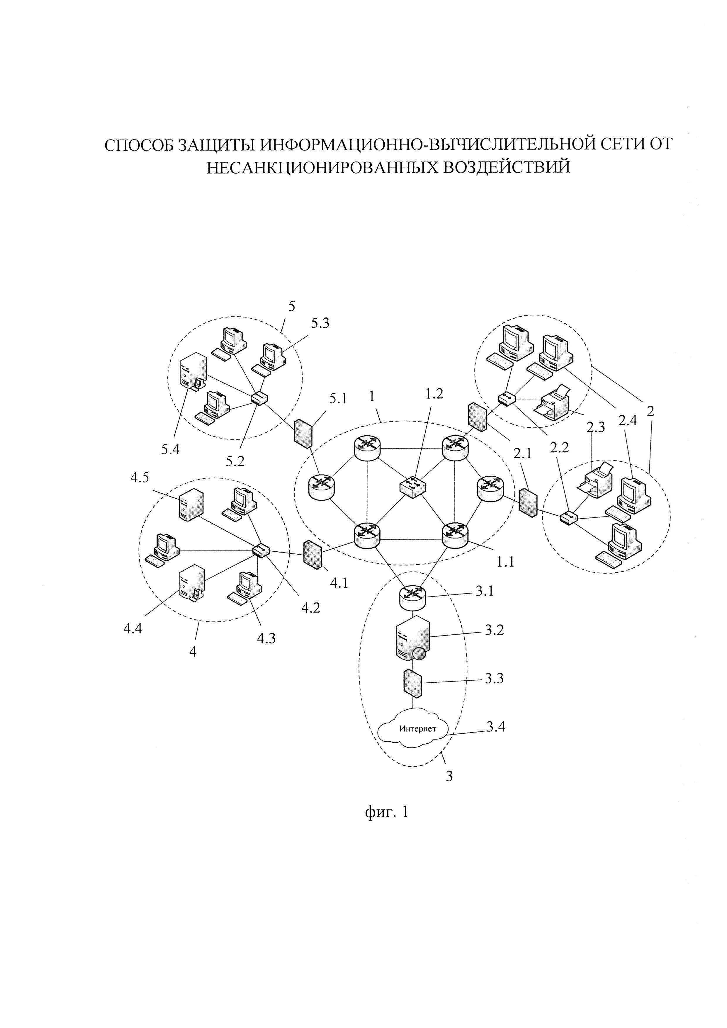 Изобретение относится к электросвязи и может быть использовано в системах защиты от несанкционированных воздействий (НСВ) путем прогнозирования возникновения и устранения уязвимостей при масштабировании и других изменениях информационно-вычислительных сети (ИБС) одновременно с ее функционированием. Известен способ защиты от компьютерных атак (КА), реализованный в патенте РФ №2179738 "Способ обнаружения удаленных атак в компьютерной сети", класс G06F 12/14, 24.04.2000. Данный способ включает следующую последовательность действий. Наблюдение за информационным потоком адресованных абоненту ИВС пакетов сообщений, включающее постоянно возобновляемый подсчет числа пакетов, выполняемый в пределах серии пакетов, поступающих из ИВС подряд друг за другом через промежутки времени не более заданного. При этом проверку поступающих пакетов данных на соответствие заданным правилам выполняют каждый раз, когда размер очередной наблюдаемой серии достигает критического числа пакетов. Недостатками данного способа являются: узкая область применения, что обусловлено его предназначением в основном для защиты от подмены одного из участников соединения, и недостаточная достоверность при обнаружении других типов НСВ. В аналоге применяют ограниченную совокупность признаковых описаний НСВ. При этом не учитывают масштабирование и другие изменения ИВС, которые влекут за собой появление новых уязвимостей, также выявление и защиту от НСВ в режиме функционирования ИВС. Известен способ оперативного динамического анализа состояния многопараметрического объекта, описанный в патенте РФ 2134897, опубликованном 20.08.1999 г., позволяющий по изменению состояния элемента ИВС обнаруживать НСВ. В известном способе преобразуют результаты допусковой оценки разнородных динамических параметров в соответствующие информационные сигналы с обобщением по всему множеству параметров в заданном временном интервале и определяют относительную величину и характер изменения интегрального состояния многопараметрического элемента ИВС. Недостатком данного способа является узкая область применения, обусловленная тем, что, несмотря на возможность оперативной диагностики технического и функционального состояний многопараметрического элемента ИВС, в нем применяют ограниченную совокупность признакового пространства, что создает условия для пропуска удаленных НСВ (см. Медведовский И.Д. и др. Атака на Internet. - М.: ДМК, 1999. - 336 с.: ил.). Также не учитывают появление новых уязвимостей вследствие масштабирования и других изменений ИВС и, как следствие, снижение устойчивости функционирования ИВС, и защиту от НСВ в режиме функционирования ИВС. Известен способ защиты от КА, реализованный в устройстве по патенту РФ 2219577 "Устройство поиска информации", класс G06F 17/40, опубликованном 24.04.2002. Способ заключается в том, что принимают из ИВС i-й пакет, где i=1, 2, 3, …, и запоминают его. Принимают (i+1)-й пакет, запоминают его. Выделяют из заголовка i-го и (i+1)-го пакетов идентификационные признаки, анализируют их на предмет совпадения, по результатам анализа принимают решение о факте наличия НСВ. Недостатком данного способа является относительно низкая устойчивость функционирования ИВС в условиях масштабирования и других изменениях, связанная с тем, что сравнением двух пакетов сообщений - последующег