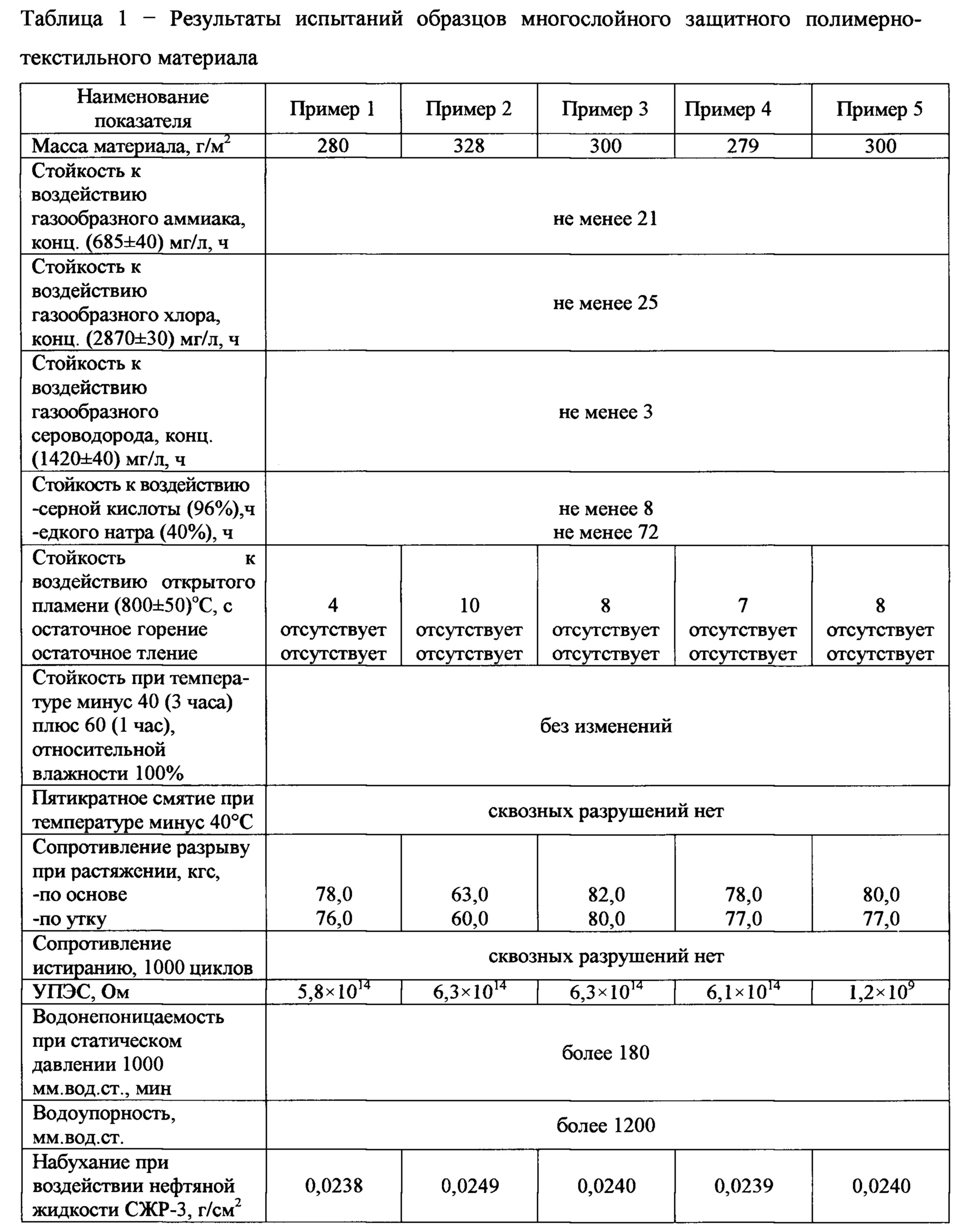 Многослойный защитный полимерно-текстильный материал для изготовления защитной одежды, содержащий ткань-основу, пропитанную полимерной смесью, включающей трехокись сурьмы, хлорпарафин ХП-470, пигмент и смесь растворителей нефраса и этилацетата, отличающийся тем, что в качестве ткани-основы он содержит полиэфирную, или хлопкополиэфирную, или полиамидную, или вискозно-полиамидную основу полотняного переплетения, в качестве антистатической добавки он содержит пигмент Минатек 51 СМ, а полимерная композиция дополнительно содержит бутадиен-стирольный термоэластопласт разветвленный ДСТ Р 30-814 и ДСТ Р 30-00, поливинилхлорид суспензионный марки ПВХ-С-70У, пигмент органический лак рубиновый СК марки Б и смесь органических растворителей нефраса и этилацетата в соотношении 2:1 при следующем содержании компонентов, мас.ч.:бутадиен-стирольный термоэластопласт разветвленный ДСТ Р 30-814 и ДСТ Р 30-00 100 трехокись сурьмы 15-30 хлорпарафин ХП-470 15-30 поливинилхлорид суспензионный марки ПВХ-С-70У 15 пигмент органический лак рубиновый СК марки Б 10 смесь органических растворителей нефраса и этилацетат в соотношении 2:1 500.