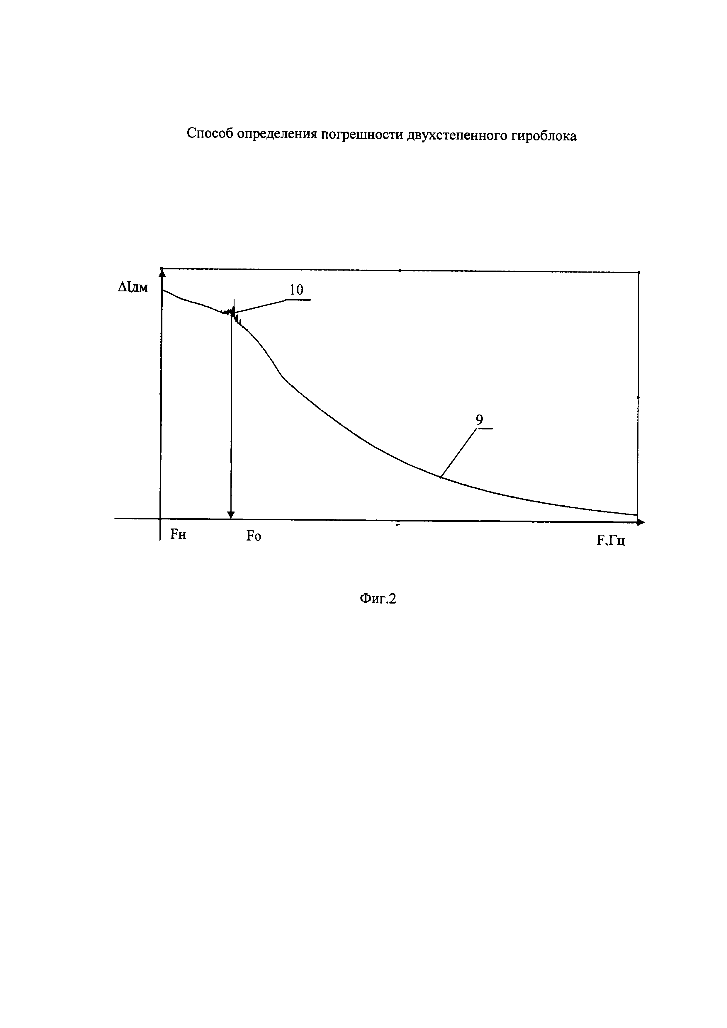 Изобретение относится к области прецизионного приборостроения и может быть использовано при разработке и производстве двухстепенных гироблоков. Известно, что с механической точки зрения, такие гироблоки представляют собой многомассовые динамические системы, функционирующие в условиях различных (внешних и внутренних) периодических воздействий [Е.А. Никитин, С.А. Шестов, В.А. Матвеев. Гироскопические системы, часть III // М.: Высшая школа, 1988, стр. 117]. К источникам внутренних периодических воздействий можно отнести: несбалансированность ротора гиромотора, наличие дефектов в элементах газодинамической опоры. При частотах воздействий, близких к частотам собственных колебаний конструкции гироблока, появляются резонансы, приводящие к увеличению его погрешности. Известен способ определения погрешностей двухстепенного гироблока [У. Ригли, У. Холлистер, У. Денхард. Теория, проектирование и испытания гироскопов // М.: Мир, 1972, стр. 358-367], заключающийся в выполнении следующих технологических операций: 1. Установка гироблока на платформе одноосного гиростабилизатора. 2. Выставка платформы в положение, при котором измерительная ось гироблока перпендикулярна плоскости меридиана, ось прецессии направлена по вертикали. 3. Включение гироблока в качестве чувствительного элемента одноосного гиростабилизатора. При этом датчик угла гироблока через усилитель-преобразователь замыкается на обмотку управления электродвигателя, установленного на оси стабилизации платформы. 4. Включение источника питания гиромотора. При этом ротор гиромотора разгоняется до рабочей (начальной) скорости вращения, равной номинальной, рассчитанной при проектировании гиромотора. 5. Измерение сигнала датчика угла гиростабилизатора (пропорционального скорости ухода гироблока) при номинальной скорости вращения ротора гиромотора. 6. Определение погрешности гироблока сравнением результатов измерений с эталонным значением. В данной ориентации за эталонное значение скорости ухода принимается значение, равное нулю. 7. Повторение операций по пп. 5 и 6 при нескольких фиксированных значениях скорости вращения ротора гиромотора. Фиксированные значения скорости вращения ротора задавались установкой значения частоты напряжения источника питания гиромотора. 8. Выключение гироблока, выключение его гиромотора, выключение гиростабилизатора. 9. Определение составляющей погрешности гироблока, обусловленной наличием резонансных частот в конструкции гироблока, по ее изменению (увеличению/уменьшению) в результатах измерений. Недостатками способа являются: 1. Малая достоверность. При дискретном изменении частоты вращения ротора имеется вероятность пропуска частот, совпадающих с резонансными частотами конструкции. 2. Значительная трудоемкость, обусловленная необходимостью проведения многократных изменений параметра (частоты) источника питания гиромотора, необходимостью многократного включения/выключения гиромотора, проведения многократных измерений сигнала датчика угла гиростабилизатора. 3. Необходимость при проведении испытаний в сложном дорогостоящем оборудовании - гиростабилизаторе. Известен также способ определения погрешности двухстепенного гироблока [У. Ригли, У. Холлистер, У. Денхард. Теория, проектирование и испытания гироскопов // М.: Мир, 1972, стр. 367-371], ко