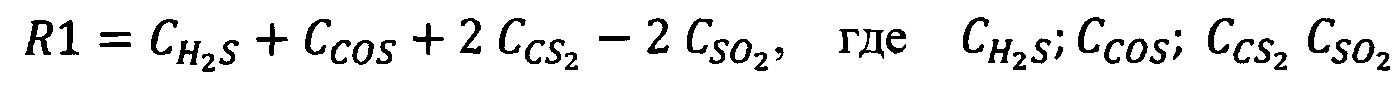 для каталитической ступени. Это соотношение использовали для тонкой подстройки стехиометрии реакции Клауса по показаниям газоанализатора отходящего газа, установленного на выходе каталитической ступени.