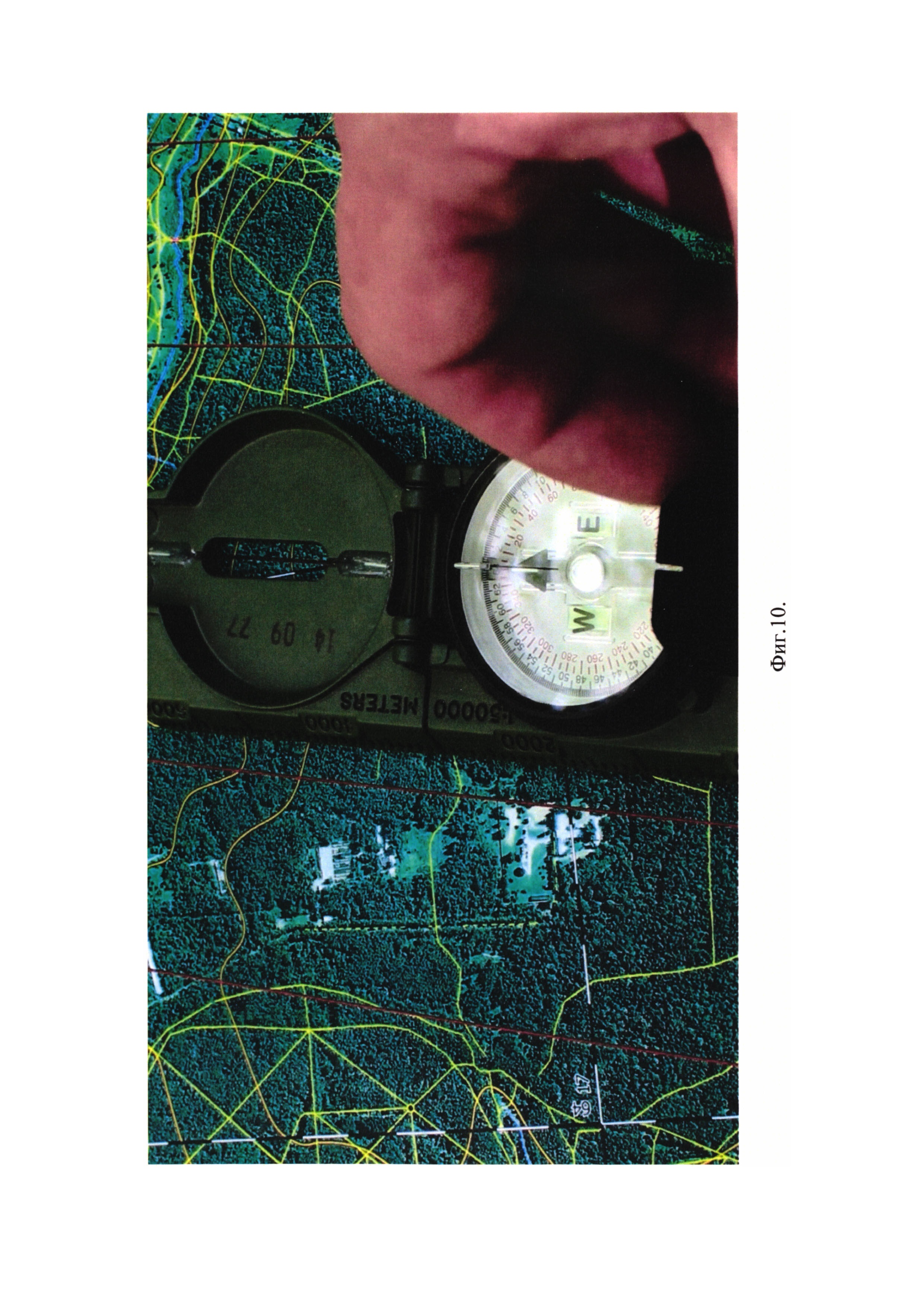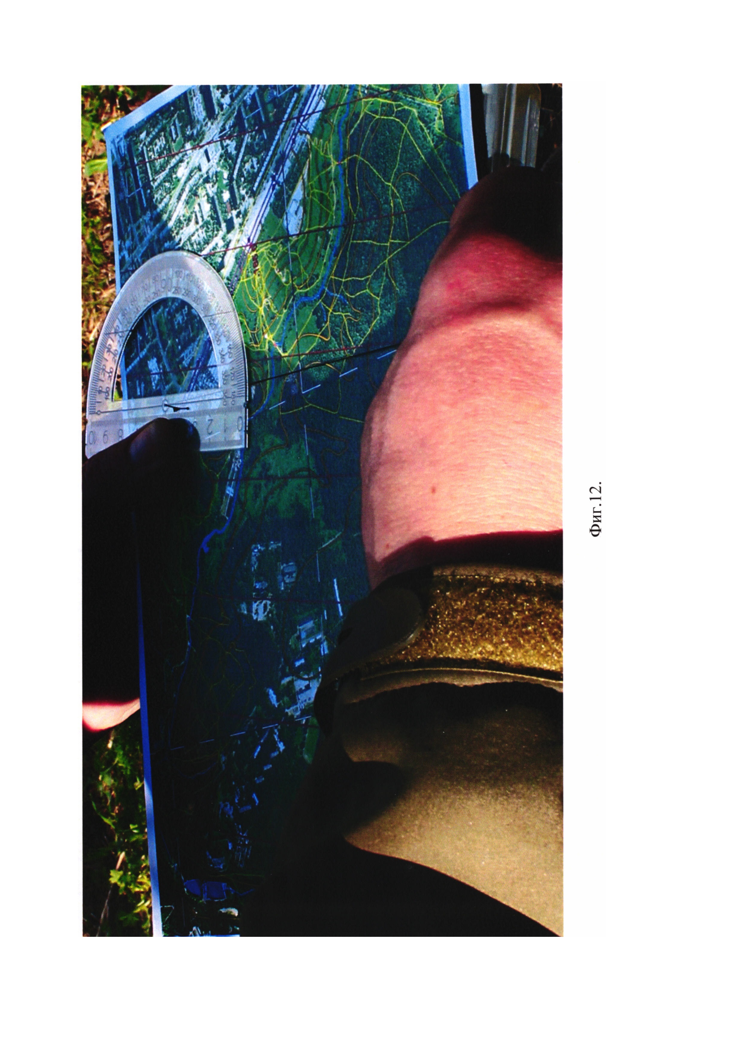 Военный транспортир относится к топографическим, письменным и чертежным приборам и принадлежностям, которые используются при работе с аналоговыми носителями информации о местности, а также с аэрофотоснимками, картами, фотокартами различных масштабов. Техническим результатом является повышение точности, скорости, а также усовершенствование способа выполнения различных учебно-боевых задач военнослужащими при работе с картой. Военный транспортир, содержащий линейную шкалу (7), угломерную шкалу (6), отверстие в центре полуокружности (1), характеризующийся тем, что изготовлен из прозрачного гибкого пластика, к которому крепится прочная нить (3), выходящая из оси в центре полуокружности (1), на которой находится резиновый ползунок-фиксатор (4), угломерная шкала (6) нанесена на полуокружность от 0 до 180 градусов слева направо и от 360 до 180 градусов справа налево, трафареты (9) расположены в центре транспортира, рядом с линейной шкалой (7) нанесена метровая шкала (8), рядом с ней нанесен дублер линейной шкалы (12), под и над шкалой нанесены горизонтальные направляющие (5), на боковых сторонах транспортира сделаны пазы (10), на которые наматывается нить, все числовые обозначения и шкалы, кроме метровой шкалы (8), нанесены на транспортир двумя цветами - черный на белом фоне (13). 6 з.п. ф-лы, 16 ил., 3 пр.