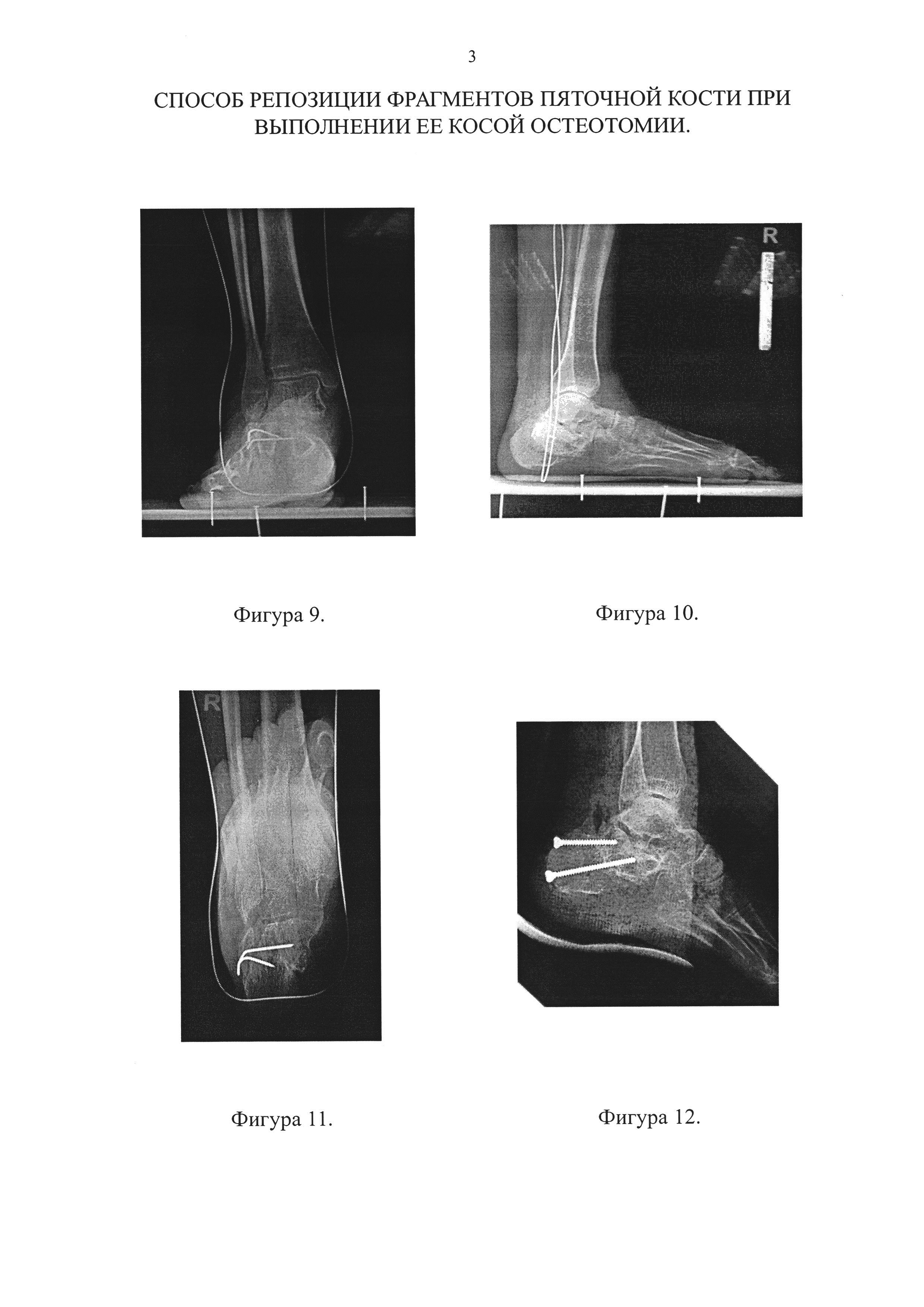 Изобретение относится к медицине, в частности к травматологии и ортопедии, и может быть использовано в ходе оперативного лечения пациентов с консолидированными в неправильном положении переломами пяточной кости. Частота переломов пяточной кости составляет 2% от переломов всех костей скелета. Около 60-75% от всех переломов пяточной кости являются внутрисуставными и сопровождаются смещением отломков [1]. Для успешного лечения таких переломов требуется значительный опыт и наличие в операционной специального набора инструментов [2]. Пренебрежение этими условиями обуславливает большое количество неудовлетворительных результатов лечения и высокий уровень инвалидизации пациентов [3]. При переломах пяточной кости, как правило, возникает смещение костных фрагментах во всех трех плоскостях и всех шести степенях свободы, что приводит к укорочению пяточной кости, снижению ее высоты, выдавливанию ее латеральной стенки, латерализации бугристости пяточной кости, варусной установке бугристости, импрессии суставных поверхностей [4]. Зачастую полностью устранить смещение отломков не удается даже в ходе оперативного лечения, что приводит к сращению перелома в неправильном положении и развитию целого ряда осложнений. Уменьшение высоты пяточной кости, с одной стороны, снижает длину трехглавой мышцы голени, тем самым снижая усилие, которое она может развить при толчке от поверхности [5], а с другой стороны, приводит к уменьшению угла инклинации таранной кости, приближая ее положение к горизонтальному и увеличивая вероятность возникновения импинжмент-синдрома с передним краем большеберцовой кости, вызывая болевой синдром по передней поверхности голеностопного сустава, возникающий при тыльном сгибании стопы. Смещение латеральной стенки пяточной кости кнаружи, возникающее при переломе, может приводить к сдавлению сухожилий малоберцовых мышц, а в некоторых случаях и к их вывиху, что обусловливает возникновение болевого синдрома с локализацией у верхушки латеральной лодыжки [6]. Что касается внутрисуставного компонента перелома, то даже при анатомичной репозиции суставных поверхностей, частота возникновения посттравматического артроза подтаранного сустава составляет 23-47% после переломов 3 типа по классификации Sanders и до 73% после переломов 4 типа по Sanders [7, 8]. Сочетание всех этих факторов обусловливает формирование многокомпонентного болевого синдрома и ограничение движений в суставах заднего отдела стопы. При лечении таких пациентов необходимо учитывать их функциональные запросы, и проводить тщательное клинико-рентгенологическое обследование для выявления возможных сопутствующих заболеваний [9]. На данный момент наиболее распространенными методами оперативного лечения пациентов с последствиями переломов пяточной кости и деформирующим артрозом подтаранного сустава являются артродез и(или) корригирующая остеотомия пяточной кости [10]. При отсутствии значимой деформации пяточной кости применяется артродезирование подтаранного сустава in situ. Однако, при наличии двух и более компонентов смещения фрагментов пяточной кости возникает деформация, которую невозможно корректировать даже за счет моделирующей резекции суставных поверхностей или применения дистракционного артродеза подтаранного сустава с использованием костн