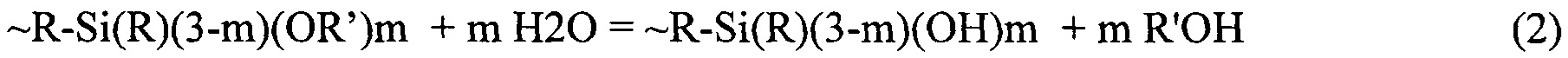 Изобретение относится к области получения полиэфируретантиолов (ПЭУТ), содержащих, помимо концевых тиольных (SH-) групп, также и алкоксисилановые (-Si-(OR)n) концевые группы. Макромолекулы ПЭУТ представляют собой полиуретановую основную цепь с концевыми тиольными (SH-) группами. Получают ПЭУТ двухстадийным способом. На первой стадии реакцией между полиэфир-полиолом с полиизоцианатом получают уретановый форполимер с концевыми изоцианатными (NCO-) группами. На второй стадии уретановый форполимер взаимодействует с меркаптоспиртом (HO-R-SH) с получением конечного продукта - ПЭУТ. Применяются ПЭУТ в основном как полимерная основа (связующее) для композиционных материалов холодного отверждения (герметики, клеи, мастики, покрытия). По химической структуре (концевые SH-группы) и областям применения наиболее близкими к ПЭУТ являются полисульфидные олигомеры (тиоколы) (HS-R(SS-R')n-SH). Однако, производство тиоколов является неэкологичным, т.к. сопровождается выделением большого количества побочных продуктов и химически загрязненной сточной воды. Получение ПЭУТ, напротив, является абсолютно безотходным. Важнейшей характеристикой герметизирующих и клеевых материалов является адгезия к покрываемой поверхности. Составы на основе ПЭУТ (а также и тиоколов) без использования специальных добавок не обладают удовлетворительной адгезией. Известен патент на изобретение US 3,114,734, в котором описывается способ получения полиуретанового полимера с концевыми SH-группами. Сообщается, что материалы на основе полиуретановых преполимеров с концевыми NCO-группами обладают высокими физико-механическими характеристиками (более высокими, чем материалы на основе жидких полисульфидных олигомеров), однако, сами жидкие полиуретановые преполимеры нестабильны при хранении, т.к. способны реагировать с влагой. Замена NCO-групп на SH-группы позволит получить стабильный при хранении полимер, который, после отверждения, представляет собой продукт с физико-механическими свойствами, присущими полиуретанам. Отверждается такой полимер теми же реагентами, применяемыми для отверждения жидких полисульфидных олигомеров с концевыми SH-группами (т.е. тиоколов). В данном патенте технология получения ПЭУТ заключалась во взаимодействии уретанового преполимера с димеркаптаном или меркаптоамином. В патенте US 3,446,780 описан процесс получения ПЭУТ реакцией между изоцианатным форполимером и меркаптоспиртом, при условии, что оба реагирующих вещества при 100°С являются жидкостями, а один из них имеет молекулярный вес от 400 до 10000 ед. В патенте US 4,742,125 изоцианатный форполимер получается взаимодействием полиизоцианата с полиолом в мольном соотношении NCO/OH от 1.8 до 4.0, полученный форполимер взаимодействует с меркаптоспиртом в мольном соотношении NCO/OH от 0.8 до 1.2 в присутствии неполных эфиров фосфорной кислоты (от 0.01 до 5% от суммарной массы форполимера и меркаптоспирта). В патенте US 4,820,789 в качестве реагента применяется простой полиэфир-триол, полученный с использованием стартового вещества трифункционального спирта (например, глицерин, триметилолпропан), в качестве мономеров использованы окись этилена и/или окись пропилена, молекулярный вес полученного полиэфира от 1800 до 6000. Все вышеперечисленные решения предусматривают использование адгезионных добавок не на стадии получения ПЭУТ, а на ста