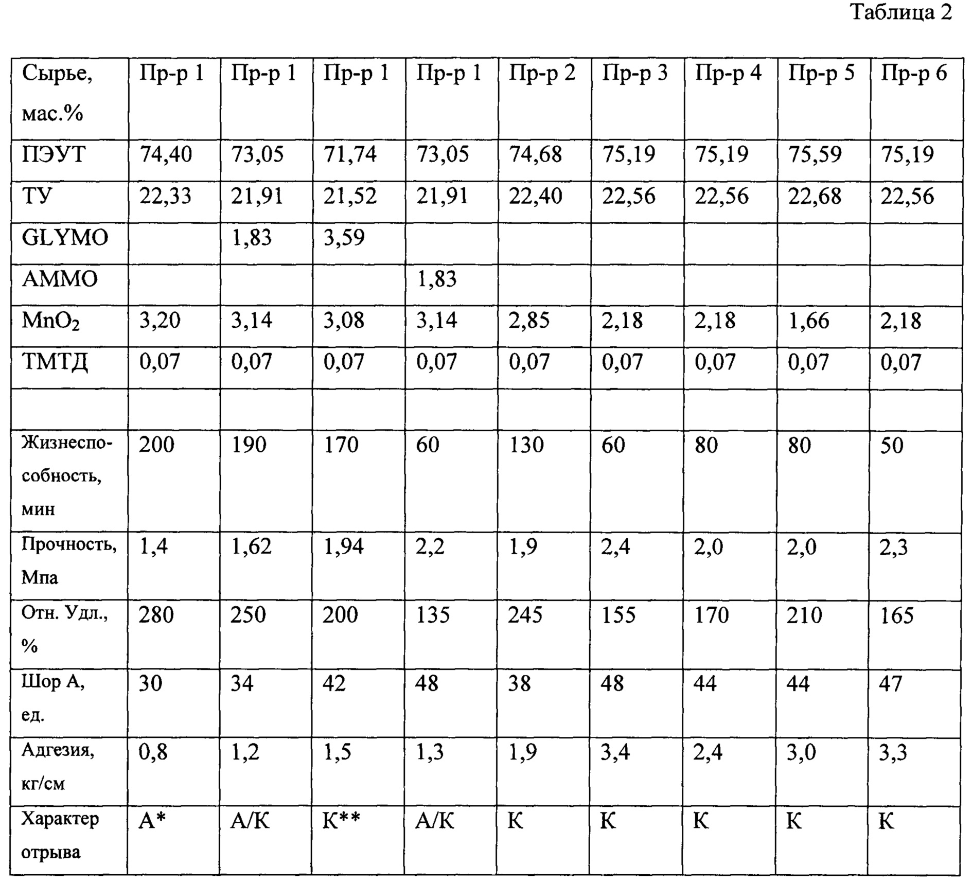 1. Способ получения полиэфируретантиола (ПЭУТ), включающий стадию обезвоживания простого полиэфирполиола с функциональностью по ОН-группам от 1,9 до 4, гидроксильным числом от 14 до 250; стадию синтеза форполимера из обезвоженного полиэфирполиола и полиизоцианата (с функциональностью по NCO-группе от 2 до 3) в присутствии катализатора уретанообразования; стадию введения меркаптоспирта (с функциональностью по ОН-группе, равной 1, по SH-группе от 1 до 2) в количестве, соответствующем мольному соотношению между ОН-группами меркаптоспирта и NCO-группами форполимера OH/NCO=0.7-0.9/1 в присутствии кислотного агента; стадию введения аминосилана в количестве, соответствующем мольному соотношению между NH2-группами аминосилана и остаточными NCO-группами ПЭУТ NH2/NCO=1.0-1.2/1; стадию введения пластификатора. 2. Способ получения ПЭУТ по п. 1, отличающийся тем, что в качестве простого полиэфира используется простой полиэфирполиол с функциональностью 3, гидроксильным числом 47 мгКОН/г (Лапрол-3603). 3. Способ получения ПЭУТ по п. 1, отличающийся тем, что в качестве простого полиэфира используется простой полиэфирполиол с функциональностью 3, гидроксильным числом 35 мгКОН/г (Лапрол-4503). 4. Способ получения ПЭУТ по п. 1, отличающийся тем, что в качестве полиизоцианата используется диизоцианат - смесь изомеров 2,4 и 2,6-толуилендиизоцианата (ТДИ). 5. Способ получения ПЭУТ по п. 1, отличающийся тем, что в качестве полиизоцианата используется 4,4-метилендифенилдиизоцианат (МДИ). 6. Способ получения ПЭУТ по п. 1, отличающийся тем, что в качестве катализатора уретанообразования используется дибутилдилаурат олова. 7. Способ получения ПЭУТ по п. 1, отличающийся тем, что в качестве меркаптоспирта используется 2-меркаптоэтанол. 8. Способ получения ПЭУТ по п. 1, отличающийся тем, что в качестве кислотного агента используется ди(2-этилгексил)фосфорная кислота. 9. Способ получения ПЭУТ по п. 1, отличающийся тем, что в качестве пластификатора используется дибутилфталат. 10. Способ получения ПЭУТ по п. 1, отличающийся тем, что в качестве аминосилана используется гамма-аминопропилтриметоксисилан (AMMO) или гамма-аминопропилтриэтоксисилан (АМЕО).