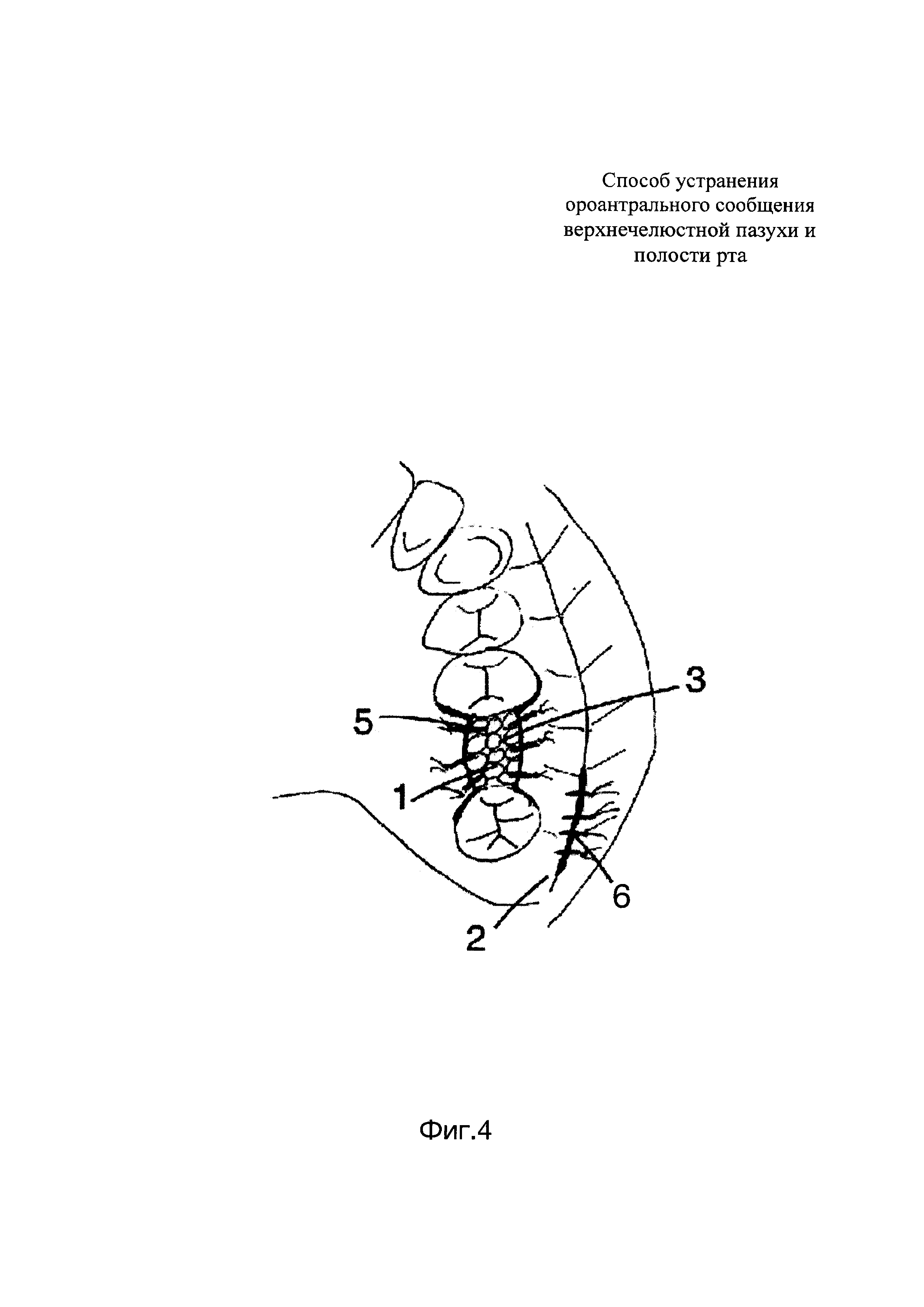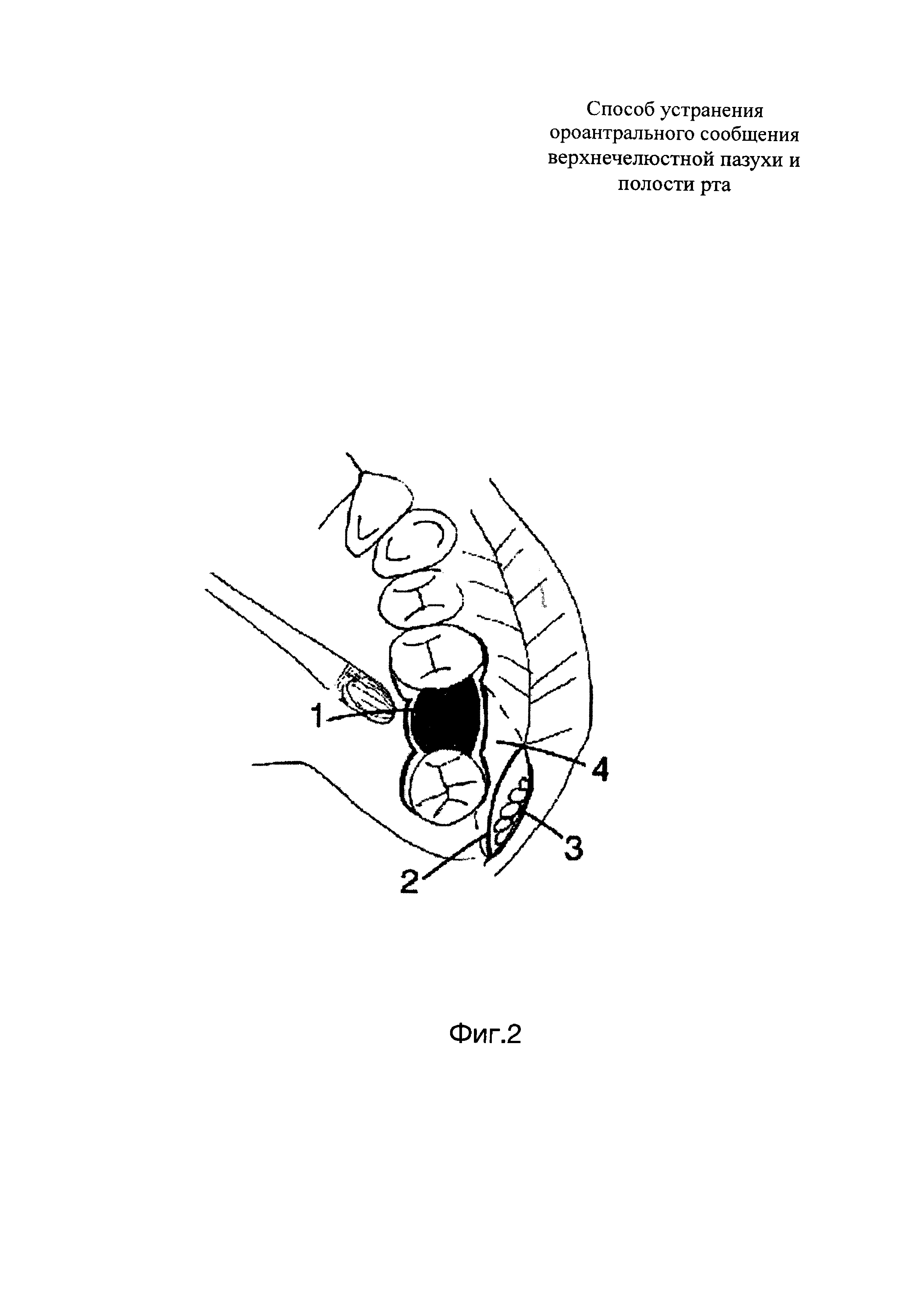 Способ устранения ороантрального сообщения верхнечелюстной пазухи и полости рта, включающий осуществление доступа к жировому телу щеки, его мобилизацию и перекрытие им ороантрального сообщения, отличающийся тем, что для осуществления доступа к жировому телу щеки выполняют горизонтальный разрез слизистой длиной 1,5-2,0 см в дистальной части верхнего свода преддверия полости рта, тупым способом раздвигают щечно-глоточную фасцию до визуализации жирового тела щеки, на всю длину раны рассекают надкостницу, от лунки удаленного зуба до рассеченной надкостницы распатором формируют поднадкостничный тоннель для мобилизации жирового тела щеки и перекрытия им ороантрального сообщения.