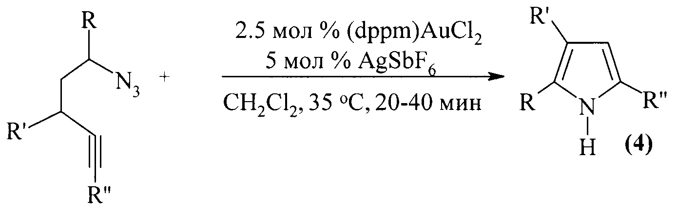 Изобретение относится к области органической химии, в частности к новому способу получения 3-алкил(фенил)-2,5-дифенил-1H-пирролов, представляющих интерес в качестве исходных синтонов для создания биологически активных соединений медицинского и сельскохозяйственного назначения, проявляющих антимикробные, противовирусные, противогрибковые, противоопухолевые, обезболивающие свойства. Способ заключается во взаимодействии терминальных ацетиленов с 2-кратным избытком бензонитрила, 2.5-кратным избытком этилалюминийдихлорида (EtAlCl), в присутствии магния, катализатора CpTiClи BF⋅EtO при комнатной температуре и атмосферном давлении в течение 6 ч. Выход 3-алкил(фенил)-2,5-дифенил-1H-пирролов (1) составляет 55-78%. 1 табл., 1 пр.