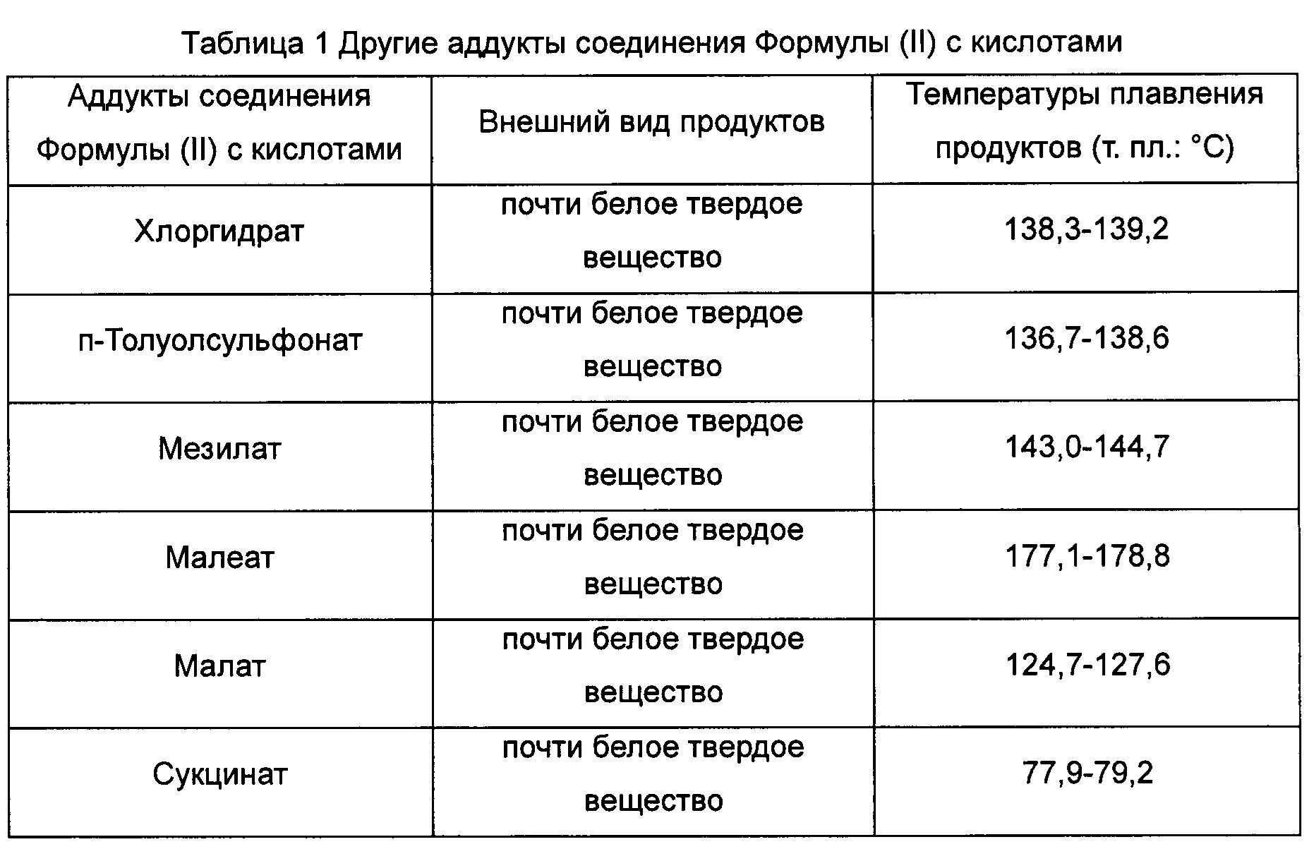 Эталонный Пример 1 Получение других аддуктов соединения Формулы (II) с кислотами
