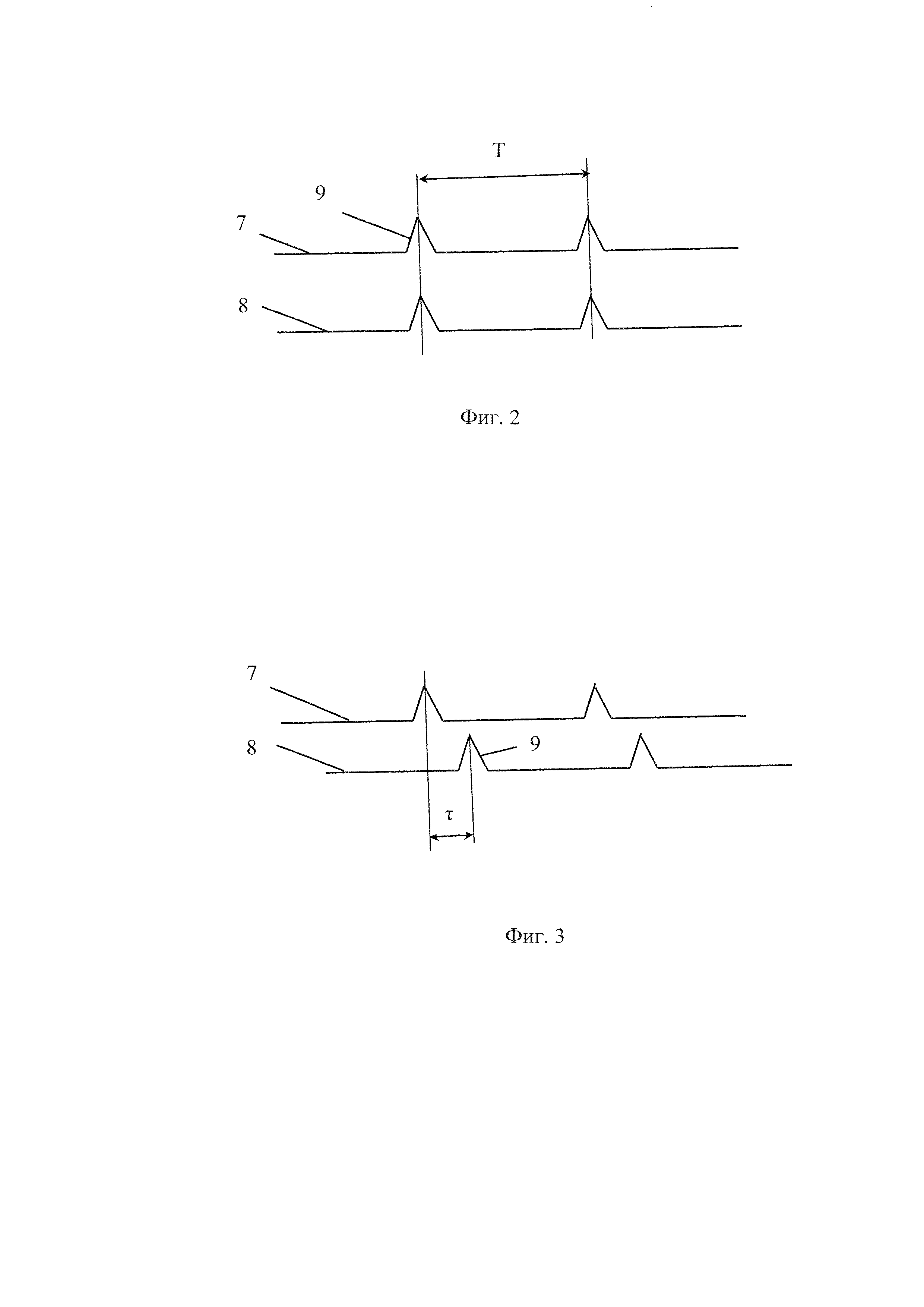 Изобретение поясняется рисунками, где на фиг. 1 представлена схема размещения датчиков, на фиг. 2 - запись импульсов от каждого из датчиков при вращении вала без крутящего момента, а на фиг. 3 - запись импульсов от каждого из датчиков при наличии измеряемого крутящего момента на валу.