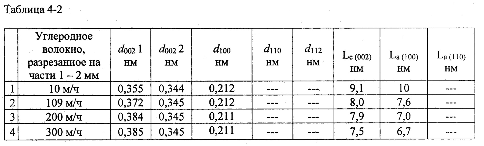 Использование: для исследования различий структурного состояния углеродных волокон после различных термомеханических воздействий методом рентгеноструктурного анализа. Сущность изобретения заключается в том, что выполняют пробоподготовку, установку образца в держателе рентгеновской установки с острофокусной рентгеновской трубкой предпочтительно с «Со» анодом, с изогнутым координатно-чувствительным детектором и с одновременной регистрацией дифракционной картины в большом интервале углов, при этом пробоподготовка заключается в приготовлении порошка измельченных образцов углеродных волокон, прошедших высокотемпературную обработку при разных режимах термообработки и температурах, включает в себя резку жгута углеродного волокна до размера не более 2 мм, измельчение в шаровой мельнице в течение 12-15 мин, рассеивание полученного порошка до фракции -50/+40 мкм, а также в других размольных агрегатах, позволяющих получить порошок углеродного волокна данной фракции, установка образца в держателе производится подпрессовкой полученной фракции порошка в кювете под давлением 0,2 МПа, при этом съемка дифрактограмм производится с полным набором рефлексов, во всем диапазоне углов. Технический результат: увеличение точности и достоверности исследования различий структурного состояния углеродных волокон после различных термомеханических воздействий методом рентгеноструктурного анализа, возможность получать при съемке дифрактограмму с полным набором рефлексов, во всем диапазоне углов. 10 ил., 4 табл.