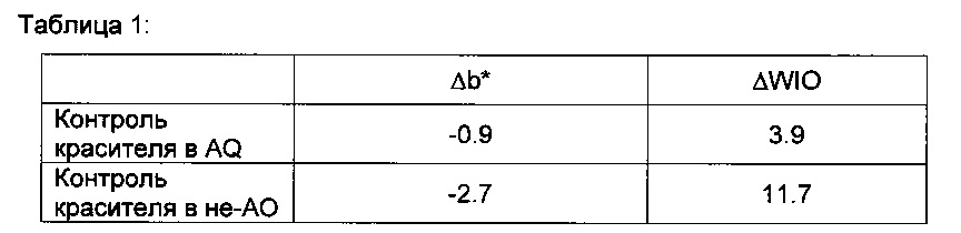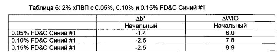 ПЕРЕКРЕСТНЫЕ ССЫЛКИ НА РОДСТВЕННЫЕ ЗАЯВКИ [1] Эта заявка заявляет приоритет по предварительной патентной заявке на патент США 61/918,938, заявленной 20 декабря 2013; США с серийным номером 61/918,925, заявленной 20 декабря 2013; Международная заявка номер PCT/US2014/071298, заявленной 18 декабря 2014; Международная заявка номер PCT/US2014/071304, заявленной 18 декабря 2014; Международная заявка номер PCT/US2014/071337, заявленной 19 декабря 2014, полное содержание которых включено в данный документ посредством ссылки. УРОВЕНЬ ТЕХНИКИ [2] Многие люди не довольны своим существующим цветом зубов. Таким образом, существует желание иметь более белые зубы, что может быть достигнуто за счет использования продуктов для отбеливания зубов. Отбеливающее действие может быть осуществлено путем химического видоизменения или удаления пятна и/или изменения визуального восприятия цвета зубов, известного в литературе в том, что визуальное восприятие белого вещества может быть изменено посредством покрытия оптического отбеливателя, синего пигмента или синего красителя, в особенности у одного из которых угол цветового того (в системе CIELAB) отраженного или излучаемого света будет между 200 и 320 градусами. Этот эффект обычно используется в моющих средствах для стирки белья, чтобы сделать одежду визуально "белее" для восприятия человеческим глазом. Та же концепция как таковая была применена для отбеливания зубов. Естественный белый цвет с желтоватым или сероватым оттенком или желтый цвет зубов может быть сделан для того, чтобы казаться более белым, посредством нанесения синего вещества на зубы. Использование пигментов с помощью нанесения, таких как Gantrez® (сополимеры малеинового ангидрида и метилвинилового эфира) в зубной пасте, чтобы сделать зубы на вид более белыми раскрыто в ЕР1935395 В1. [3] В ЕР1935395 было продемонстрировано, что осаждение синего вещества из водных растворов на зубы является оптимальным, если синее вещество имеет ограниченную растворимость в слюне, как в случае с синим пигментом. Кроме того, было показано, что осаждение является оптимальным, если полимер с высокой молекулярной массой (ММ>200,000 Да), такой как полимеры типа Gantrez, ПЭГ, и простые эфиры целлюлозы присутствуют в составе, чтобы помочь пигментам приклеиваться к зубу. Известно также, что другие полимеры, в особенности низкомолекулярные полимеры гидроксипропилметилцеллюлозы, могут увеличить осаждение синего пигмента на зубах, в особенности, когда синий пигмент инкапсулируется в пределах матрицы ленты полимера. [4] Красители имеют в значительной степени отличающиеся свойства, чем у пигментов, в частности, красители являются гораздо более растворимыми в воде, чем пигменты. Эта растворимость красителей делает их гораздо более трудными для осаждения и удержания на зубах. Патент США 6,030,222 раскрывает осаждение красителей на зубы при смешивании с конкретными носителями. Опубликованная заявка на Патент США 2012/0093905 раскрывает красители, соединенные с некоторыми полимерами. [5] Синий краситель, такой как FD&C синий #1 или FD&C синий #5, имеет другую химическую структуру, чем синий пигмент 15 и таким образом имеет отличающуюся растворимость в воде. На самом деле, растворимость FD&C Синего красителя #1 составляет >20 г/100 мл в воде, по сравнению с <0.1 г/100 мл для синего пигмента 15. Большая растворимость синего красителя в воде по сравнению с син