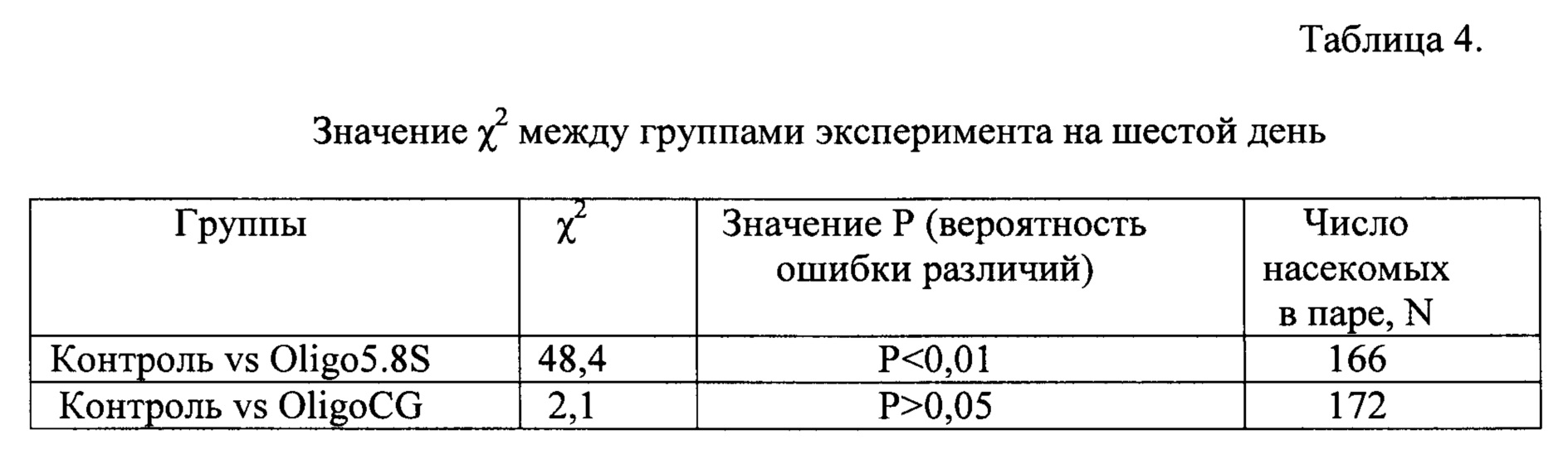 Изобретение относится к области биотехнологии. Изобретение представляет собой способ борьбы с гусеницами непарного шелкопряда (Lymantria dispar), включающий использование инсектицида на основе антисмыслового фрагмента ДНК, избирательно действующего на личинок насекомых определенного вида, где проводят контактную обработку пульверизатором гусениц насекомого водным раствором короткого 11 нуклеотидов длиной антисмыслового фрагмента ДНК гена 5,8S рибосомальной РНК непарного шелкопряда с последовательностью 5'-TGCGTTGAAA-3' в концентрации 200 пмоль/мкл таким образом, чтобы на гусеницу I-II возраста попало не менее 0,3 мкл раствора. Изобретение позволяет повысить смертность гусениц непарного шелкопряда (Lymantria dispar). 4 табл.