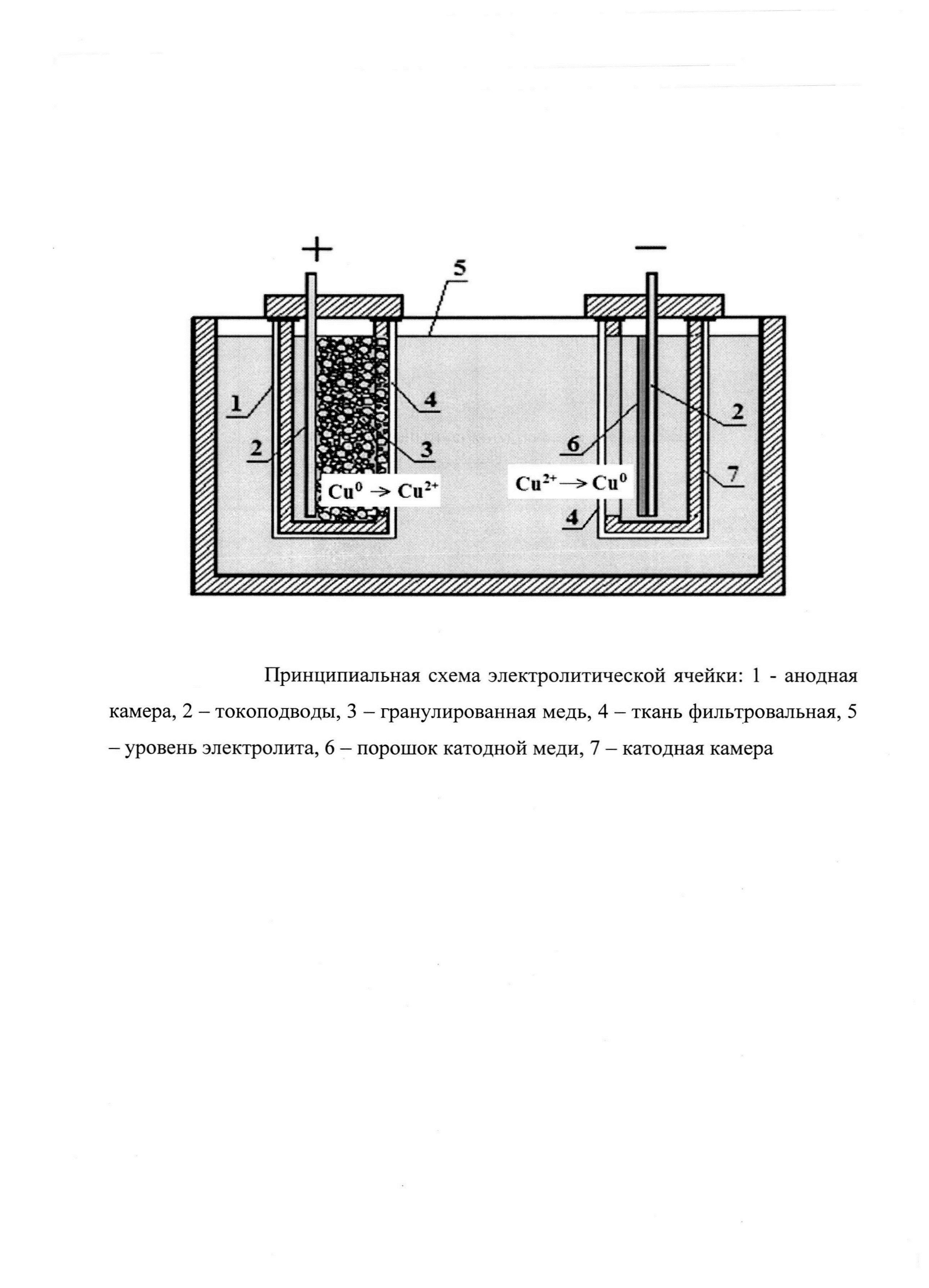 Изобретение относится к электролитическому рафинированию меди, содержащей примеси в количестве до 2 мас.%. Способ включает формирование из меди анода и электролитическое растворение анода в сернокислотном растворе с осаждением катодной меди. Формируют насыпной анод из гранул меди крупностью 0,5-20,0 мм. Электролитическое растворение анода ведут при наложении постоянного анодного тока плотностью 50,0-100,0 А/м2 с получением катодного осадка в виде порошка меди. Формирование насыпного анода ведут из гранул, полученных водной грануляцией расплава анодной меди. Обеспечивается исключение образования оборотных материалов в виде остатков анодов. 1 з.п. ф-лы, 1 ил., 1 табл.