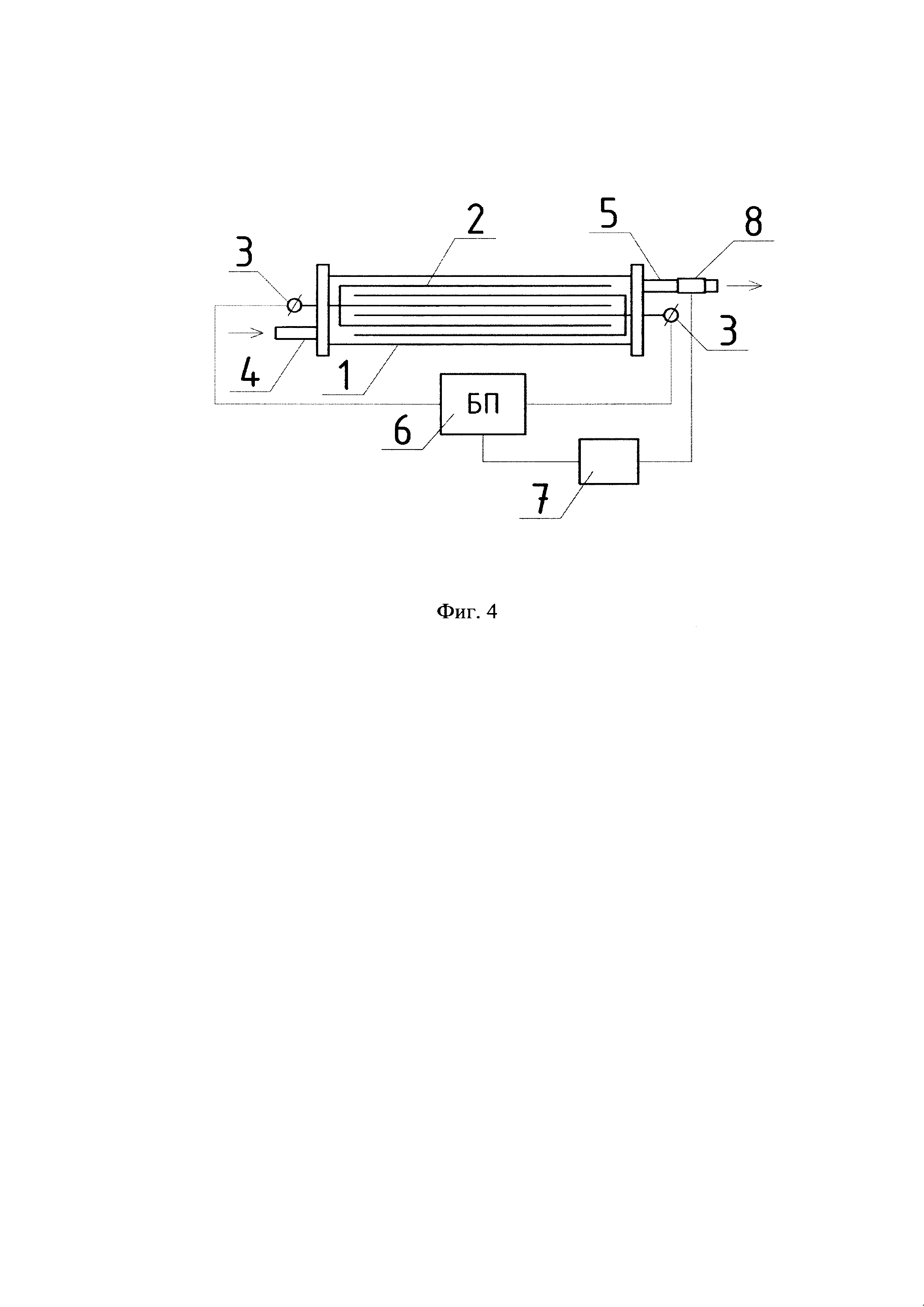 Изобретение относится к способам электрохимической обработки воды дезинфектантами с целью обеззараживания питьевых, сточных и технических вод, воды плавательных бассейнов, для производства моющих и дезинфицирующих растворов. Изобретение также относится к устройству для электрохимической обработки воды дезинфектантами, которое состоит из напорного корпуса с патрубками для подачи и отвода обрабатываемой воды, электродного блока, состоящего минимум из двух и более электродов изготовленных из титановой основы с нанесенным покрытием из оксидов металлов платиновой группы, блока питания подающего ток на электродный блок с изменением полярности и средства подвода тока к электродам. Известен способ обработки воды гипохлоритом натрия, реализованный в RU 2100483 от 19.02.1996, в котором дезинфектант производится на месте потребления путем прямого электролиза подземной минерализованной воды с содержанием хлорида натрия от 1,5 до 15 г/л. Недостатком этого технического решения является невозможность использования в качестве сырья воды с содержанием хлорида натрия менее 1,5 г/л, а также низкий срок службы электродов. Также из BG 66016 В1 от 29.10.2009 известен способ проведения электролиза и устройство для его проведения, который предусматривает использование групп электродов ЕК1-EKn, электрически соединенных с источником питания, каждая из которых содержит, по меньшей мере, одну пару разноименно заряженных электродов, при этом, в процессе электролиза осуществляют коммутацию электрической цепи через блок коммутации, обеспечивающую поочередное подключение к источнику питания и отключение от него групп электродов. Согласно примеру осуществления известного способа частоту и продолжительность подключения источника питания к группам электродов определяет блок управления, который отслеживает мощность постоянного тока, подаваемого на группы электродов. Таким образом, в BG 66016 В1 используют принцип отключения электропитания и последующего включения для поддержания необходимой силы постоянного тока на группах электродов без изменения полярности. Недостатком данного способа является узкая область безреагентного обеззараживания воды, низкая производительность электролизера, обусловленная образованием отложений солей на электродах. Известен ряд технических решений, направленных на увеличение надежности функционирования электролизных устройств, путем применения различных способов удаления отложений солей жесткости на катодах этих устройств. Так, например, известен электродиализатор, в котором удаление осадка с катода при получении гипохлорита в электродных камерах производят реверсом тока. (ISSN 0203-7815. Химическая промышленность. Серия "Производство и переработка пластических масс". Обзорная информация. Основные научно-технические направления развития проблемы электролиза (процессы и аппараты) в СССР и за рубежом. НИИТЭХИМ. М., 1986, с. 46). Недостатком данного устройства является применение в качестве электродов платинированного титана, что значительно увеличивает стоимость данного устройства. Известно устройство для электрохимической обработки жидкости RU 2493108 от 13.02.2012, в которых используют титановые аноды и катоды с каталитически активной поверхностью, полученные путем обработки поверхности электродов в водном растворе с содержа
