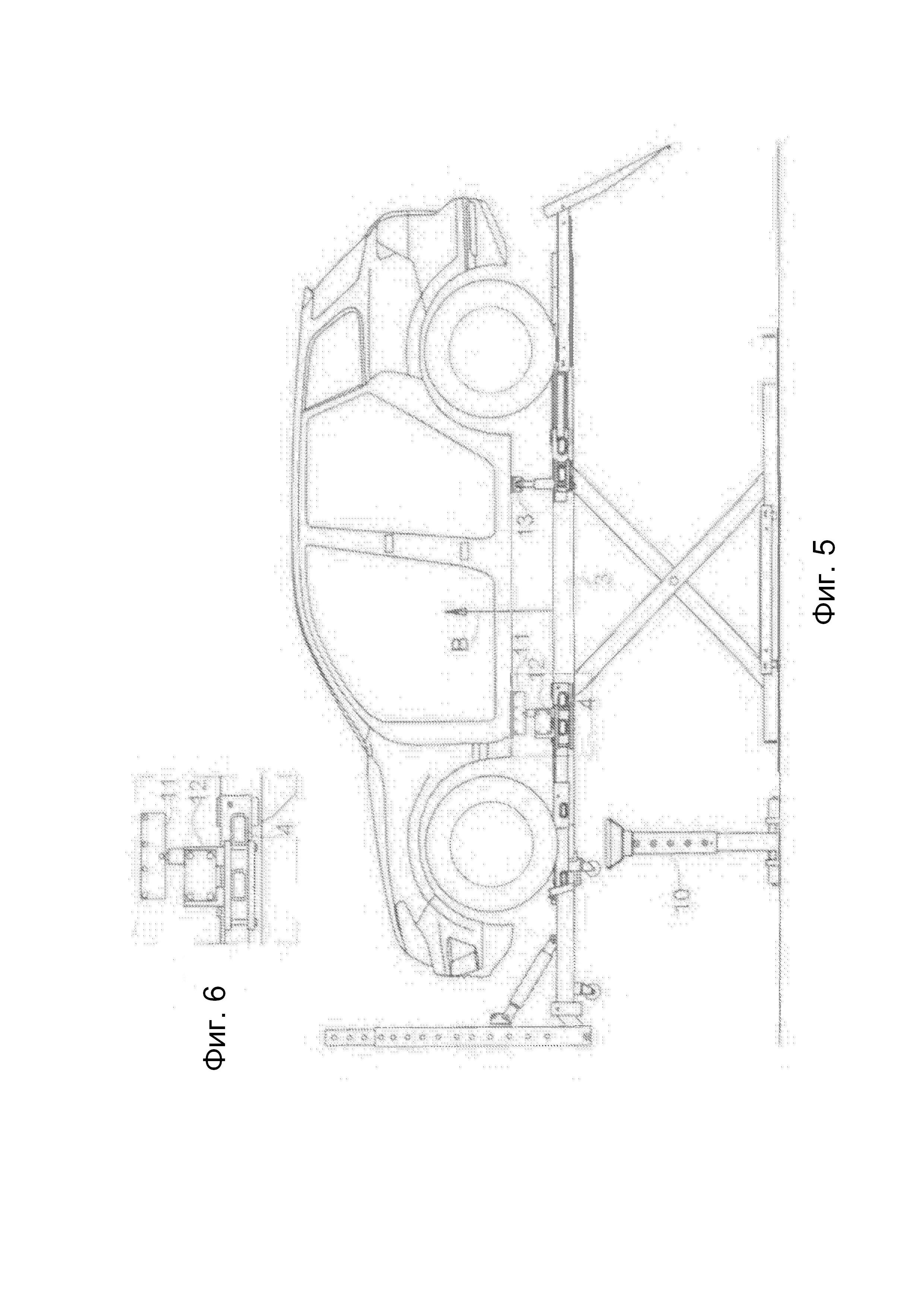1. Рихтовочное устройство для автомобиля, содержащее раму (1), подъемный механизм (2), прикрепленный к раме, прикрепленный к подъемному механизму рихтовочный стенд (3), снабженный по бокам платформами (5а1, 5а2, 6, 8а1, 8а2, 5, 8) для перемещения по ним автомобиля для проведения рихтовочных работ, анкерные балки (4а1, 4а2, 4а3, 4а4; 4) и фиксаторы (12а1, 12а2, 13а1, 13а2; 11, 12, 13), прикрепленные к анкерным балкам, для крепления автомобиля к рихтовочному стенду для проведения рихтовочных работ, причем анкерные балки (4а1, 4а2, 4а3, 4а4; 4) неподвижно закреплены в зазорах между платформами (5а1, 5а2, 8а1, 8а2, 5, 6, 8) по бокам рихтовочного стенда (3), отличающееся тем, что оно снабжено опорными устройствами (10а1, 10а2, 10), выполненными с возможностью монтажа у колес автомобиля, расположенных в передней части рихтовочного стенда между балками (9а1, 9а2 и 9а3, 9а4), и под ними при поднятом на рабочую высоту рихтовочном стенде и размещенными с возможностью поддержания колес в процессе опускания рихтовочного стенда и автомобиля. 2. Рихтовочное устройство по п. 1, отличающееся тем, что фиксаторы содержат фиксирующие рамы (12а1, 12а2, 13а1, 13а2; 12), прикрепленные к анкерным балкам (4а1, 4а2, 4а3, 4а4; 4) с возможностью перемещения в продольном направлении рихтовочного стенда (3). 3. Рихтовочное устройство по п. 1, отличающееся тем, что фиксаторы содержат приспособления (11, 13), прикрепленные к фиксирующим рамам (12а1, 12а2, 13а1, 13а2; 12). 4. Рихтовочное устройство по п. 3, отличающееся тем, что фиксирующая рама (12) содержит опорную часть (14) для крепления приспособления (11, 13). 5. Рихтовочное устройство по п. 2, отличающееся тем, что фиксирующие рамы (12) содержат две пластинчатые части (17), находящиеся на расстоянии одна от другой, и расположенные между ними крепежные винты (18), находящиеся на расстоянии один от другого. 6. Рихтовочное устройство по п. 5, отличающееся тем, что расстояние между крепежными винтами (18) больше ширины фиксирующей рамы (4).