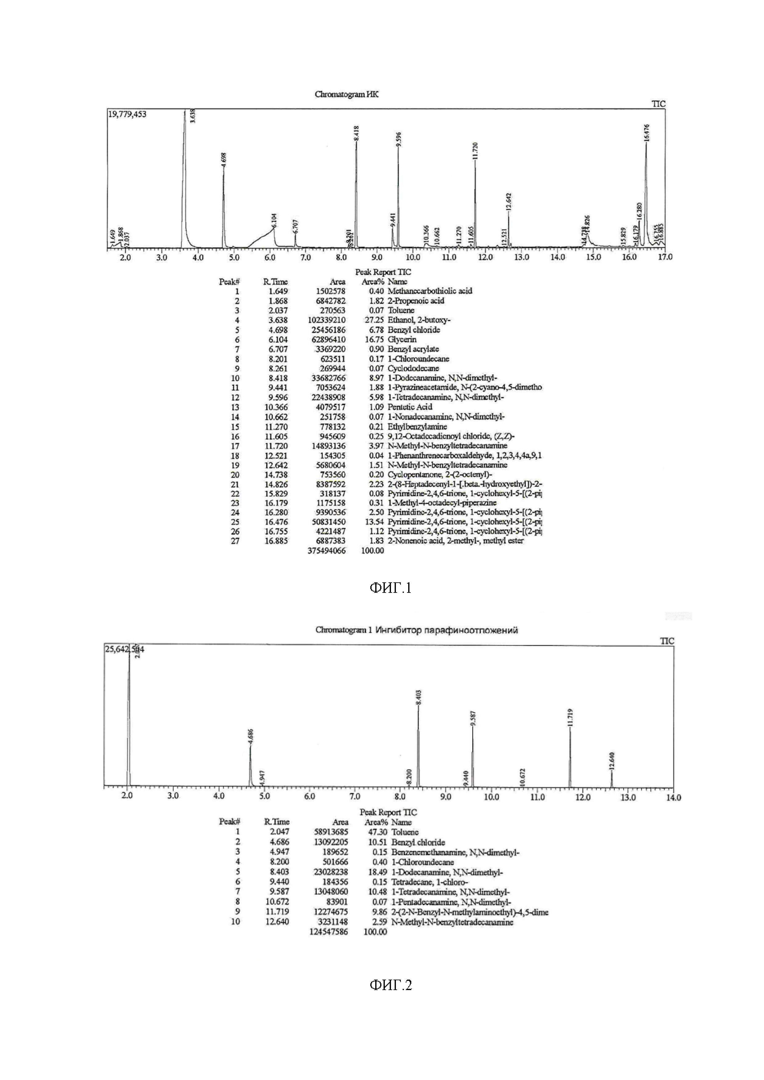 Изобретение относится к аналитической химии, а именно к способу подготовки проб нефтепромысловых реагентов. Способ подготовки проб нефтепромысловых химреагентов для определения хлорорганических соединений и органически связанного хлора включает отделение солей четвертичных аммониевых соединений для исключения влияния продуктов их термической деструкции, при этом осуществляют отбор исследуемой пробы, полярного и неполярного растворителей в равных долях, экстрагирование смеси с переходом четвертичных аммониевых соединений в полярную фазу, а хлорорганических соединений в неполярную фазу с последующим отбором аликвоты экстракта неполярного растворителя для проведения анализа. Техническим результатом увеличение точности и достоверности определения количественного содержания хлорорганических соединений, присутствующих в реагентах. 2 н. и 3 з.п. ф-лы, 7 ил., 1 табл.