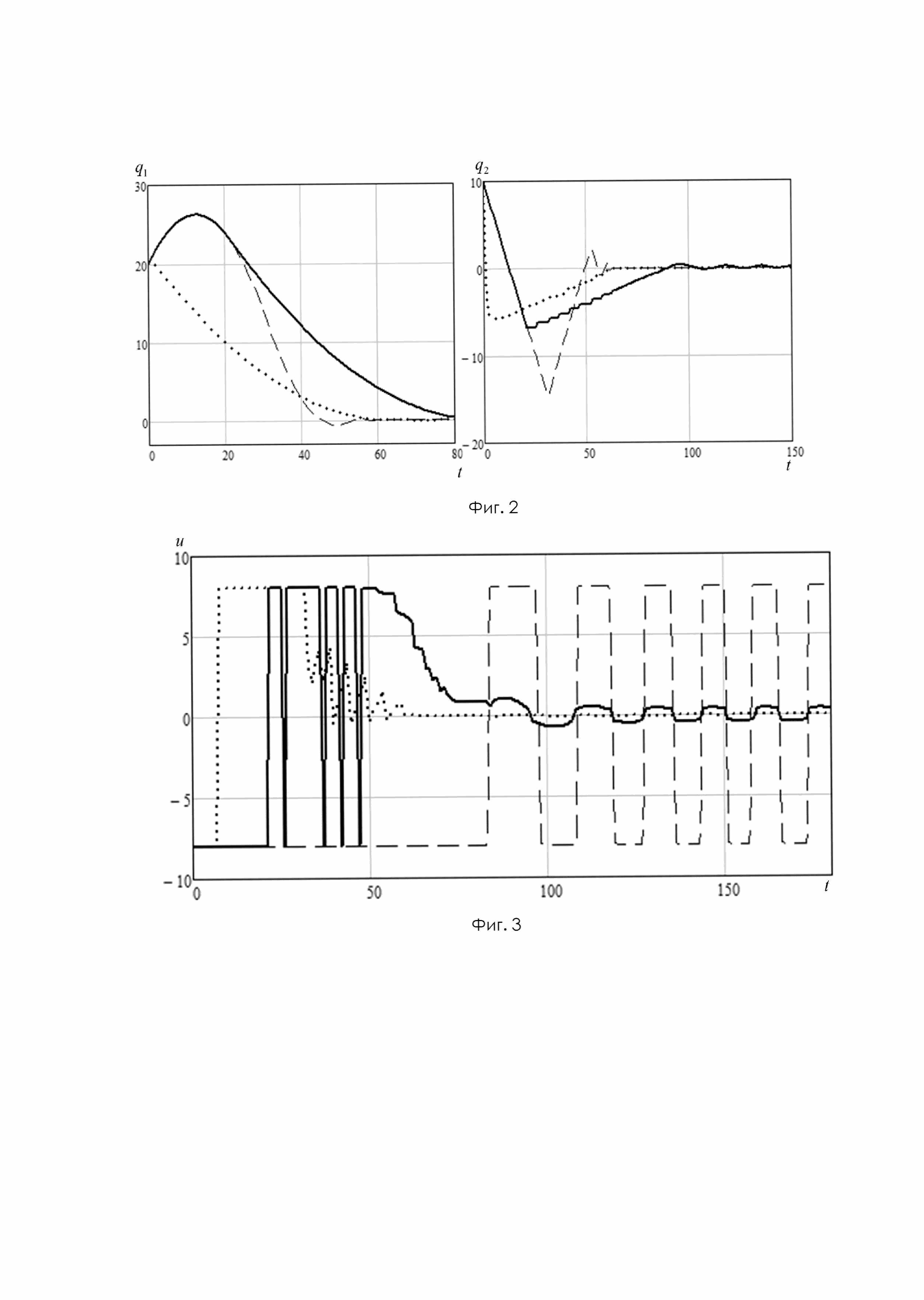 Расчеты показывают, что полученный результат исключает режим учащающихся переключений при снижении быстродействия на 0,4% в сравнении с классическим решением Л.С. Понтрягина, что подтверждает его близость к оптимальному. Результаты, приведенные в примере, позволяют сделать заключение о достижении заявленного технического результата.