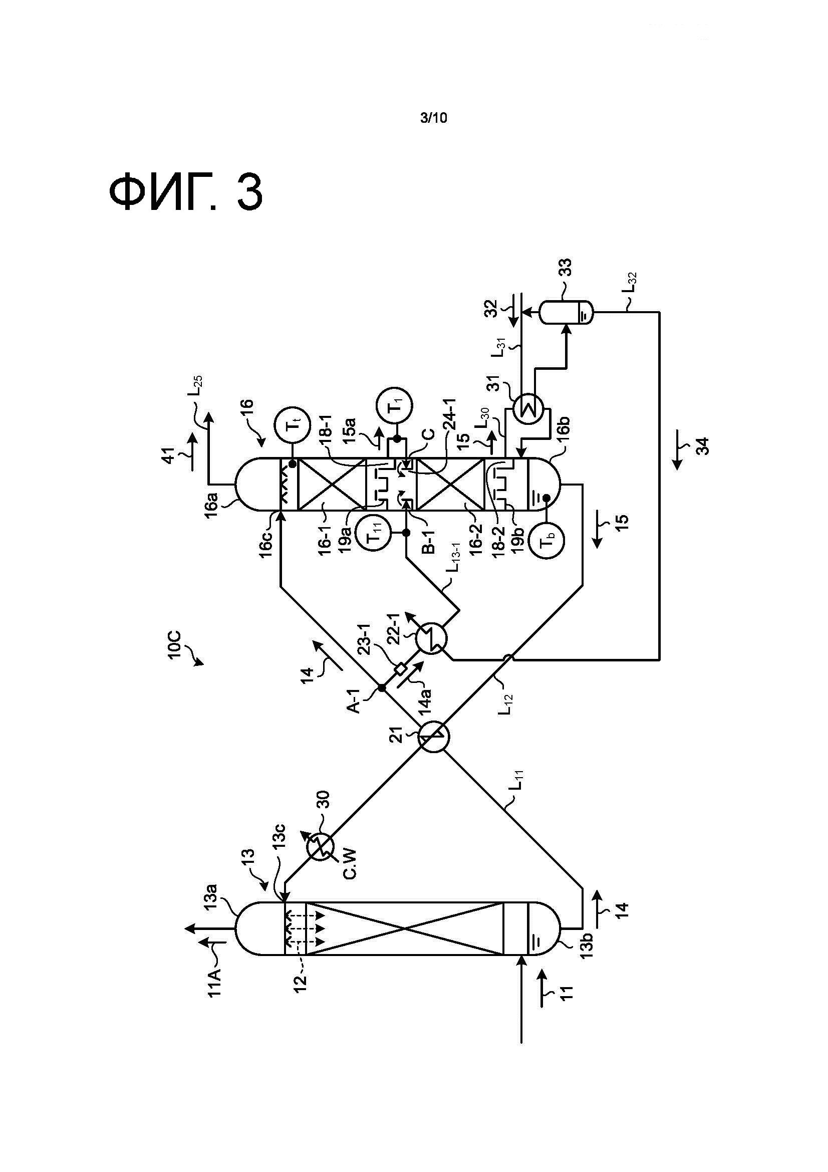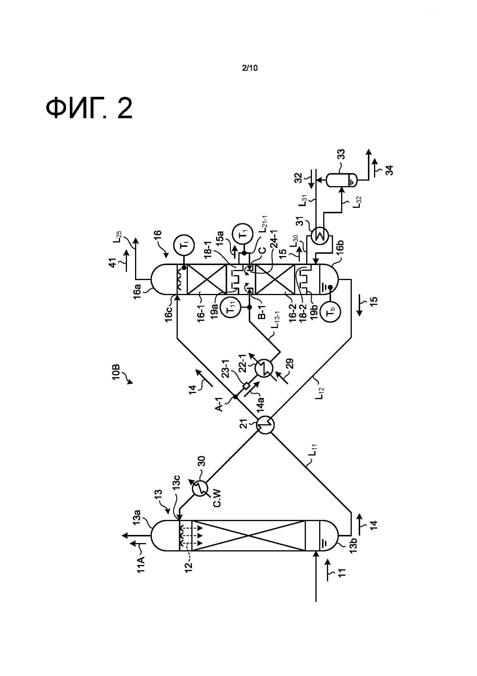 Система извлечения СОсодержит абсорбер СОдля удаления СОиз отходящих газов с помощью абсорбента СО, регенератор абсорбента, предназначенный для регенерации абсорбента СО, линию Lподачи обогащенного раствора, используемую для подачи обогащенного раствора из абсорбера в точку с ввода обогащенного раствора в регенератор, теплообменник обогащенного/обедненного растворов, в котором осуществляется теплообмен между обогащенным раствором и обедненным раствором, первую линию Lотделения обогащенного раствора, предназначенную для отделения части обогащенного раствора в первом узле А-1 разделения, расположенном на линии Lподачи обогащенного раствора между теплообменником обогащенного/обедненного растворов и регенератором, и подачи отделенного обогащенного раствора в первую точку В-1 ввода обогащенного раствора, которая находится на боковой стенке ближе к нижней стороне регенератора, чем точка подачи обогащенного раствора, первый теплообменник обогащенного раствора, служащий для предварительного нагрева отделенной части обогащенного раствора, и первое устройство для регулировки расхода, предназначенное для регулировки потока обогащенного раствора, отделяемого в первом узле А-1 разделения, таким образом, чтобы обогащенный раствор нагревался в первом теплообменнике обогащенного раствора до предварительно заданной температуры. 2 н. и 10 з.п. ф-лы, 10 ил., 1 табл.