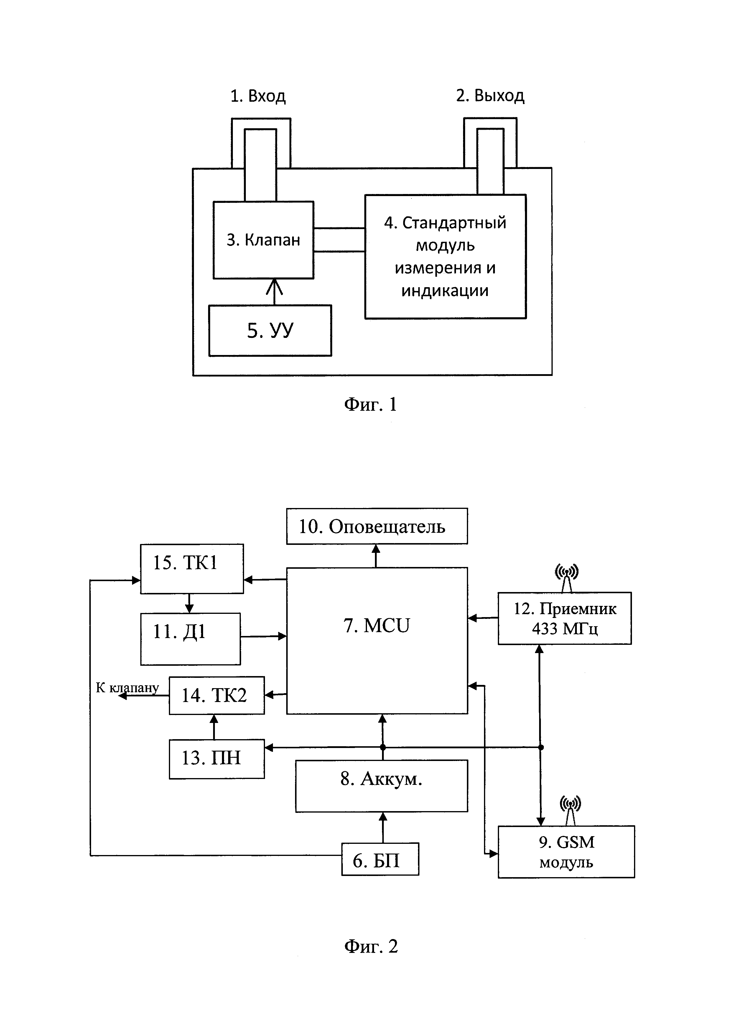 1. Счетчик газовый бытовой катастрофоупреждающий, в корпусе которого установлены стандартный блок измерения и индикации, а также отсекающее газ устройство, выполненное в виде электромагнитного клапана и установленное на входе стандартного блока измерения и индикации, и устройство управления, в состав которого входит микроконтроллер, встроенный датчик газа и беспроводные внешние датчики газа и дыма для контроля помещения, транзисторные ключи, один из которых предназначен для подключения встроенного датчика газа к микроконтроллеру, модуль свето-звукового оповещения, модуль GSM, модуль радиоприема с частотой 433 МГц, предназначенный для приема сигналов от беспроводных датчиков газа и дыма и передачи связанному с ним микроконтроллеру, выполненному с возможностью циклических измерений с постоянным контролем допустимых значений сигналов встроенного газа и беспроводных внешних датчиков газа и дыма и с обеспечением поиска кодов беспроводных внешних датчиков газа и дыма, хранимых в постоянной памяти микроконтроллера (ППЗУ), при получении от них сигналов, а по истечении интервала времени отправки значений сигналов от указанных датчиков на сервер, при этом в случае выявления превышения допустимого предела показаний значений сигналов от указанных датчиков, обеспечения перехода в состояние тревоги, при котором микроконтроллер выполнен с возможностью открытия другого транзисторного ключа, посредством которого электромагнитный клапан предназначен для закрытия газа на входе стандартного блока измерения и индикации, и активизации модуля свето-звукового оповещения, а также посылки сообщения на номера телефонов пользователей с использованием GSM модуля. 2. Устройство по п.1, отличающееся тем, что для передачи данных используется модуль подключения к мобильной сотовой сети, представляющий собой приемопередатчик с SIM-картой, который поддерживает стандарт мобильной сотовой сети GSM поколения 2G и/или поколения 3G и/или поколения 4G или любого другого поколения (далее - модуль GSM), позволяющий отправлять и получать короткие текстовые сообщения (SMS), совершать и принимать звонки, а также отправлять и получать данные по протоколу tcp/ip, а также отключать газоснабжение помещения при приеме управляющей SMS и/или команды по протоколу tcp/ip. 3. Устройство по п.1, отличающееся тем, что в качестве датчиков газов используются полупроводниковые сенсоры с чувствительным элементом на основе диоксида олова или другого вещества, позволяющие определять широкий спектр газов: углеводородные газы и угарный газ. 4. Устройство, отличающееся тем, что оно включает в свой состав беспроводной интерфейс, позволяющий получать сигнал от внешних стандартных беспроводных датчиков газов и дыма по беспроводному радиоканалу. 5. Устройство по п.1, отличающееся тем, что в процессе работы устройства с заранее заданными временными промежутками через мобильную сотовую сеть с использованием протокола tcp/ip производится отправка пакета данных, содержащих показания датчиков на заранее заданные удаленные серверы. 6. Устройство по п.1, отличающееся тем, что в процессе функционирования устройства производится непрерывный контроль параметров датчика газов для определения момента выхода показателей за допустимые пределы. 7. Устройство по п.1, отличающееся тем, что при выходе пок