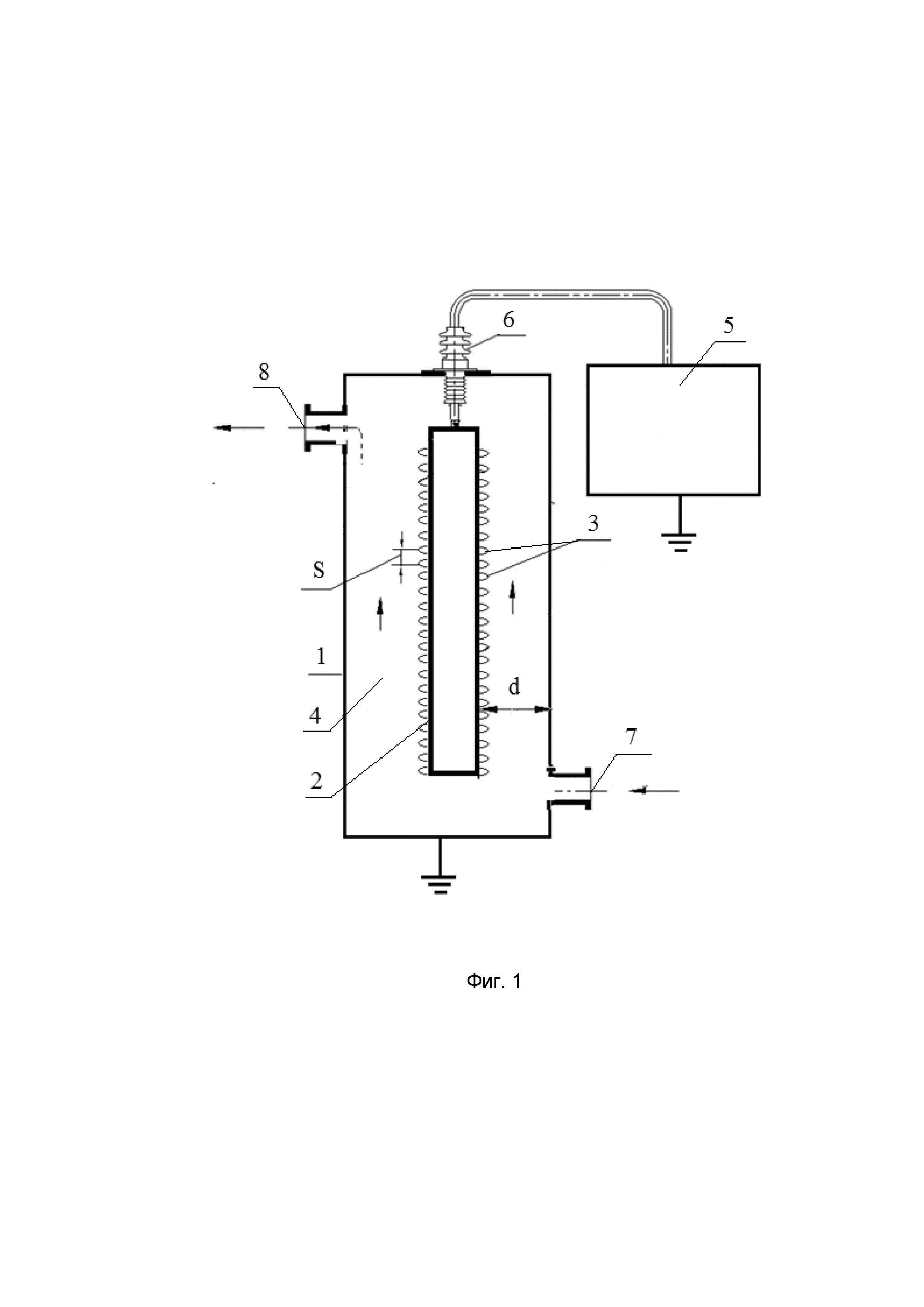 Изобретение относится к технике высоких напряжений, в частности – к электрофизическому устройству для очистки газов от экологически вредных примесей (газообразных примесей, а также пылевых и мелкодисперсных аэрозольных частиц), для обеззараживания воздуха (снижения обсемененности воздуха патогенными микроогранизмами и вирусами до безопасного уровня), стерилизации как воздуха, так и диэлектрических и металлических предметов при помощи низкотемпературной плазмы, создаваемой импульсными стримерными коронными разрядами. Известны устройства [Masuda S., Nakao H. Removal of NOx in the exhaust gas from a diesel engine using pulsed plasma. //IEEE-IAS Annual Conference. 1986. Denver. P. 1173.3., А. З. Понизовский, С. Г. Гостеев, О. С. Кужель, А. С. Смирнов. Промышленные установки для очистки воздуха с помощью низкотемпературной неравновесной плазмы газового разряда. Химическая безопасность 2018г. Том 2 №2, с:212-228.], в которых с помощью импульсного стримерного коронного разряда осуществляется очистка воздуха от экологически вредных газообразных примесей, пылевых и мелкодисперсных аэрозольных частиц. Эти устройства состоят из реакторных камер, через которые проходит поток воздуха, ограниченных коаксиально или плоско расположенными высоковольтными и заземленными электродами. Высоковольтные электроды подключаются к высоковольтному импульсному генератору, который генерирует импульсы напряжения наносекундной длительности. Под действием импульсов в пространстве между высоковольтным и заземленным электродом возникает стримерный коронный разряд, создающий низкотемпературную плазму. Низкотемпературная плазма характеризуется значительными плотностями и энергиями электронов, способных создать в разрядном промежутке высокие концентрации активных промежуточных частиц (атомарного кислорода, ионов и радикалов), которые вступают в радиационно-химические реакции с молекулами-загрязнителями. В результате реакций происходит конверсия газообразных примесей в экологически безвредные газы или аэрозоли [Понизовский А.З. Очистка вент выбросов с помощью импульсного и постоянного коронных разрядов. Экологические системы и приборы. 2007г. №11 с.9-14]. Мелкодисперсный аэрозоль, пыль и продукты, образующиеся под действием коронного разряда, за счет постоянного коронного разряда, имеющего место в паузе между импульсами, оседают на заземленном электроде, откуда смываются водой. Кроме того, в генерируемой импульсным стримерным коронным разрядом низкотемпературной плазме за счет большой плотности энергии электронов, радикалов, атомарного кислорода, озона и ультрафиолетового излучения происходит обеззараживание воздуха от микроорганизмов и вирусов [T.Xia1, A.Kleinhekse, E.M. Lee, Z.Qiao, K.R.Wigginton H.L.Clack. Inactivation of airborne viruses using a packed bed non-thermal plasma reactor. J. Phys. D: Appl. Phys. 52 (2019) 255201 (12pp)]. Аналогично в зоне действия низкотемпературной плазмы имеет место и стерилизация объектов [J Ehlbeck, U Schnabe, M Polak, J Winter, Th von Woedtke, R Brandenburg, T von dem Hagen, K-D Weltmann Low temperature atmospheric pressure plasma sources for microbial decontamination. J. Phys. D: Appl. Phys. 44 (2011) 013002 (18pp)]. Наиболее близким к предлагаемому изобретению является устройство, описанное в патенте США № 6224653, содержащее реакторную камеру, образованную между цилиндрическим заземленным электродом и концентрично установленным внутри него цилиндрическим высоковольтным электродом, содержащим большое количество острий. Острия на этом электро