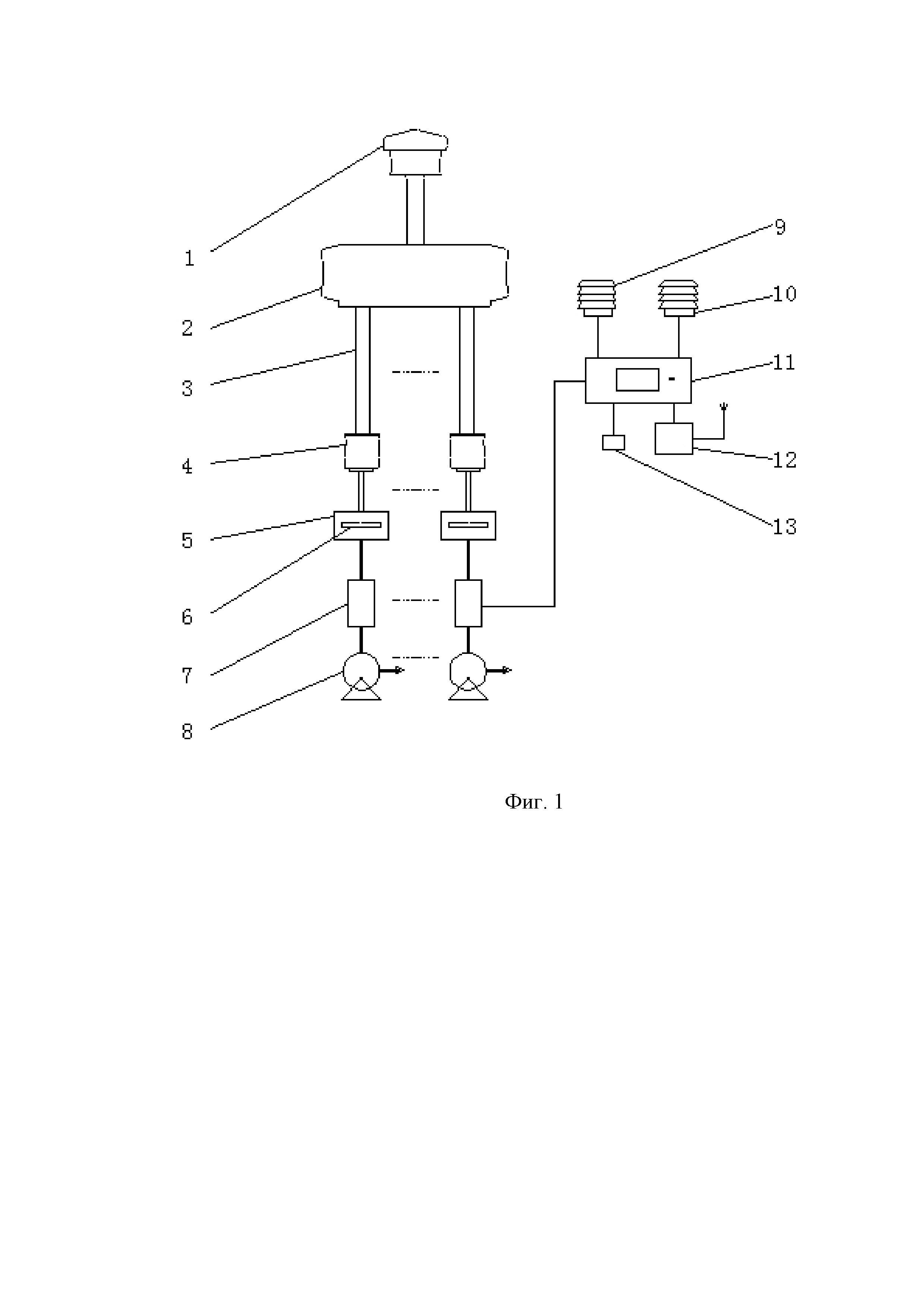 ПРЕДПОСЫЛКИ ДЛЯ СОЗДАНИЯ ИЗОБРЕТЕНИЯ [0001] 1. Область техники [0002] Изобретение относится к механическому пробоотборнику с конструкцией многоканального распределения потока и относится к области сбора твердых частиц. [0003] 2. Уровень техники [0004] Наиболее точным способом, признанным во всем мире, контроля за концентрацией твердых частиц в окружающем воздухе, является отбор проб атмосферы с помощью механического пробоотборника, то есть, забор атмосферной пробы с постоянным расходом, и после того, как проба газа пройдет через мембрану фильтра, определение прироста массы мембраны фильтра до и после сбора с последующим делением на объем собранного газа и, таким образом, получение концентрации твердых частиц. [0005] Самые ранние механические пробоотборники являются одноканальными конструкциями. После рассеивания рассекателем твердые частицы попадают непосредственно на мембрану по вертикальным трубкам, и, теоретически, накопления пыли не происходит. Для дальнейшего изучения результатов анализа твердых частиц требуется проанализировать собранные пробы после однородного отбора, поэтому для сбора проб требуется многоканальный механический пробоотборник для твердых частиц. Обычно многоканальный механический пробоотборник для твердых частиц включает впускное отверстие, рассекатель, устройство для распределения потока, соединительные трубки, пробоотборную мембрану, насос и контроллер, и в процессе реальной работы в устройстве для распределения потока и в соединительных трубках легко скапливается пыль, что приводит к искажению получаемых данных. РАСКРЫТИЕ ИЗОБРЕТЕНИЯ [0006] Для того, чтобы решить технические проблемы известного уровня техники, изобретение предлагает простой механический пробоотборник с конструкцией многоканального распределения потока, в котором использован аэродинамический принцип для измельчения твердых частиц путем ударного воздействия, чтобы избежать накопления пыли. [0007] Для того, чтобы достигнуть вышеуказанной цели, изобретение использует следующую техническую схему: механический пробоотборник с конструкцией многоканального распределения потока, включающий рассекатель для распределения потока, который соединен с впускным отверстием механического пробоотборника, многоканальные коллекторные трубки соединены с нижней частью рассекателя для распределения потока, причем коллекторные трубки снабжены рассекателем, мембранный компонент, регулятор расхода и пробоотборный насос, при этом рассекатель для распределения потока включает корпус, ударную трубку, ударную пластину и распределительную трубку, причем ударная пластина установлена внутри корпуса, ударная трубка установлена на верхней части корпуса, распределительные трубки установлены на нижней части корпуса, и ударная трубка и распределительные трубки заходят внутрь корпуса. [0008] Предпочтительно, ударная трубка и распределительные трубки расположены перпендикулярно ударной пластине. [0009] Предпочтительно, на ударной пластине расположен улавливатель, на дне улавливателя расположен выход для воды, на выходе для воды расположена выпускная трубка, и выпускная трубка соединена с сосудом для воды. [0010] По сравнению с известным уровнем техники изобретение имеет следующие технические эффекты: изобретение не использует отдельную конст