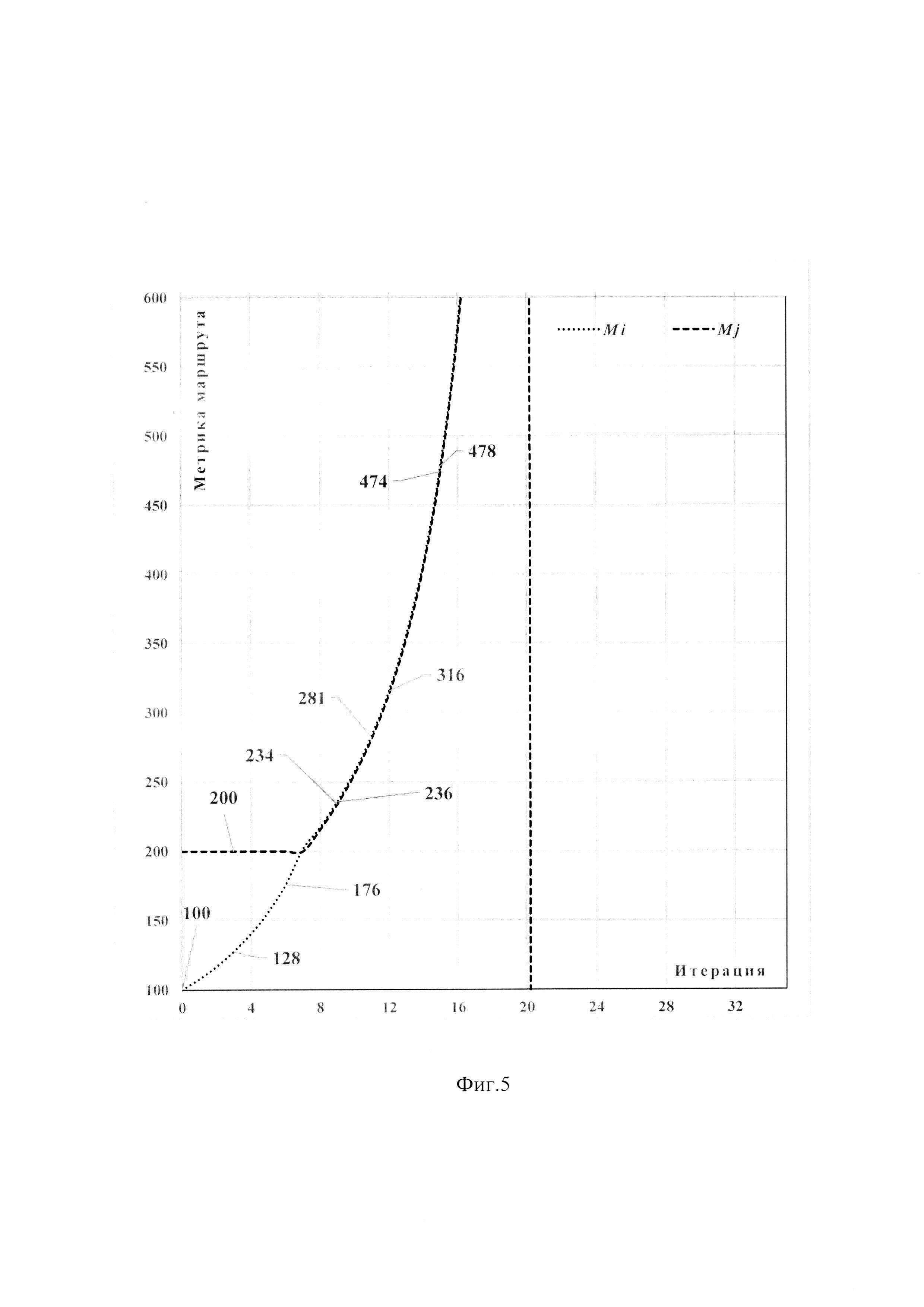 - приращение объема входящего потока пакетов, сравнивают Mi, Mj, распределяют пакеты на маршрут с наименьшей метрикой, для адаптации таблицы маршрутизации к параметрам пакета, в качестве параметра выбирают значение размера пакетов, находящихся в очереди на передачу, формируют таблицу соответствия размера пакета и его номера в очереди, формируют таблицу соответствия номера маршрута и его динамической метрики.
