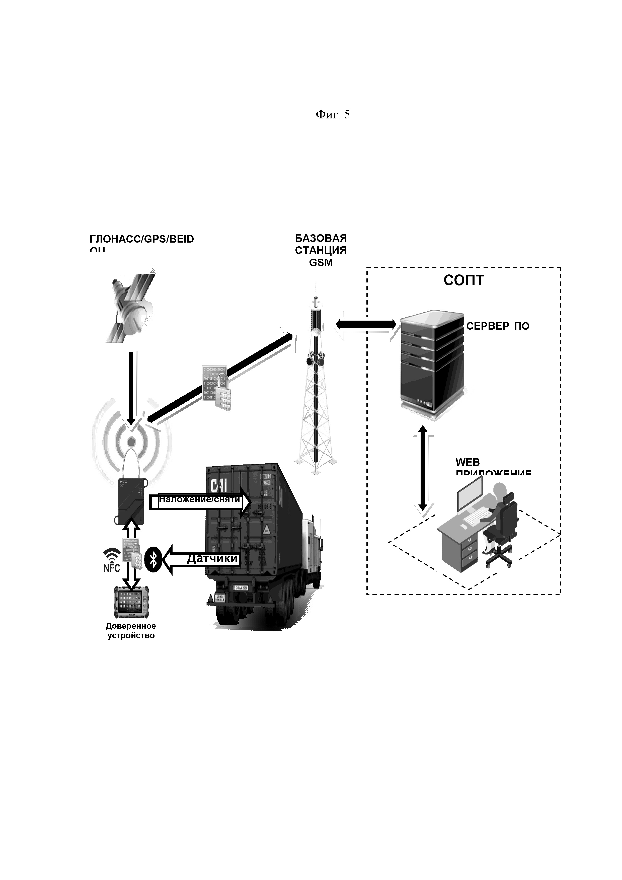 Изобретение относится к системам запирания и пломбирования вагонов и контейнеров, в частности, железнодорожных грузовых вагонов и контейнеров, подлежащих пломбированию в соответствии с правилами перевозок грузов железнодорожным транспортом, и может быть использовано для контроля и предотвращения несанкционированного доступа к перевозимому грузу. Электронная навигационная пломба (далее – ЭНП) помимо своего основного назначения – блокировки доступа к перевозимому грузу, – предназначена для измерений текущих навигационных параметров (географических координат, скорости перемещения и пр.) по сигналам навигационных космических аппаратов глобальных навигационных спутниковых систем, таких как ГЛОНАСС, GPS и BeiDou, определения на их основе координат местоположения ЭНП, записи и хранения полученной информации в энергонезависимой памяти изделия, отправки на основе навигационных параметров информации о перемещении транспортных средств, контейнеров или вагонов, а также о сохранности (вскрытии) изделия в систему отслеживания перевозки товаров (далее – СОПТ). Известна система автоматизированного учета грузовых перевозок и online мониторинга сохранности грузов (патент РФ RU2672172, опубл. 12.11.2018, МПК G08B25/08), которая содержит в своем составе блок приема-передачи данных, навигации обработки и отображения оперативной информации, связанный по нескольким различным каналам связи с центральным диспетчерским пунктом транспортной компании, содержащий двухсистемный навигационный приемник ГЛОНАСС/GPS, таймер реального времени, модем цифрового стандарта GSM с поддержкой протокола передачи данных GPRS, модем спутниковой системы связи, блок радиосвязи УКВ диапазона, логический блок, многопортовый преобразователь интерфейсов, приемный модуль системы LPWAN, набор пломб, содержащих в своем составе LPWAN-модемы. В случае нарушения целостности пломб соответствующая информация отображается на информационном табло блока приема-передачи данных, навигации обработки и отображения оперативной информации, срабатывает зуммер, и соответствующий сигнал посредством средств связи передается на центральный диспетчерский пункт транспортной компании, что позволяет принять меры к сохранности груза непосредственно на этапе попытки несанкционированного вскрытия. Технический результат заключается в повышении качества и надежности контроля перевозок грузов, а также повышении информативности и достоверности информации о грузе в процессе его транспортировки. Однако электронные пломбы, используемые в данной системе, значительно отличаются от заявленного изобретения по конструкции исполнения. Известно электронное пломбировочное устройство многоразового действия (ЭПУ МД) (патент РФ RU2596474, опубл. 10.09.2016, МПК Е05В39/02), которое представляет собой устройство, содержащее в своем составе корпус, средства хранения пломбировочной информации и обмена данными с переносным и/или стационарным считывающим устройством с одним источником модулированного оптического излучения, одним приемником оптического излучения, которые последовательно замыкаются одноразовым силовым оптико-электронным крепежом (ОСОЭК), геркон, устанавливаемый в непосредственной близости от антенны радиочастотной идентификации, источник электрического питания во взрывобезопасном исполнении, ми