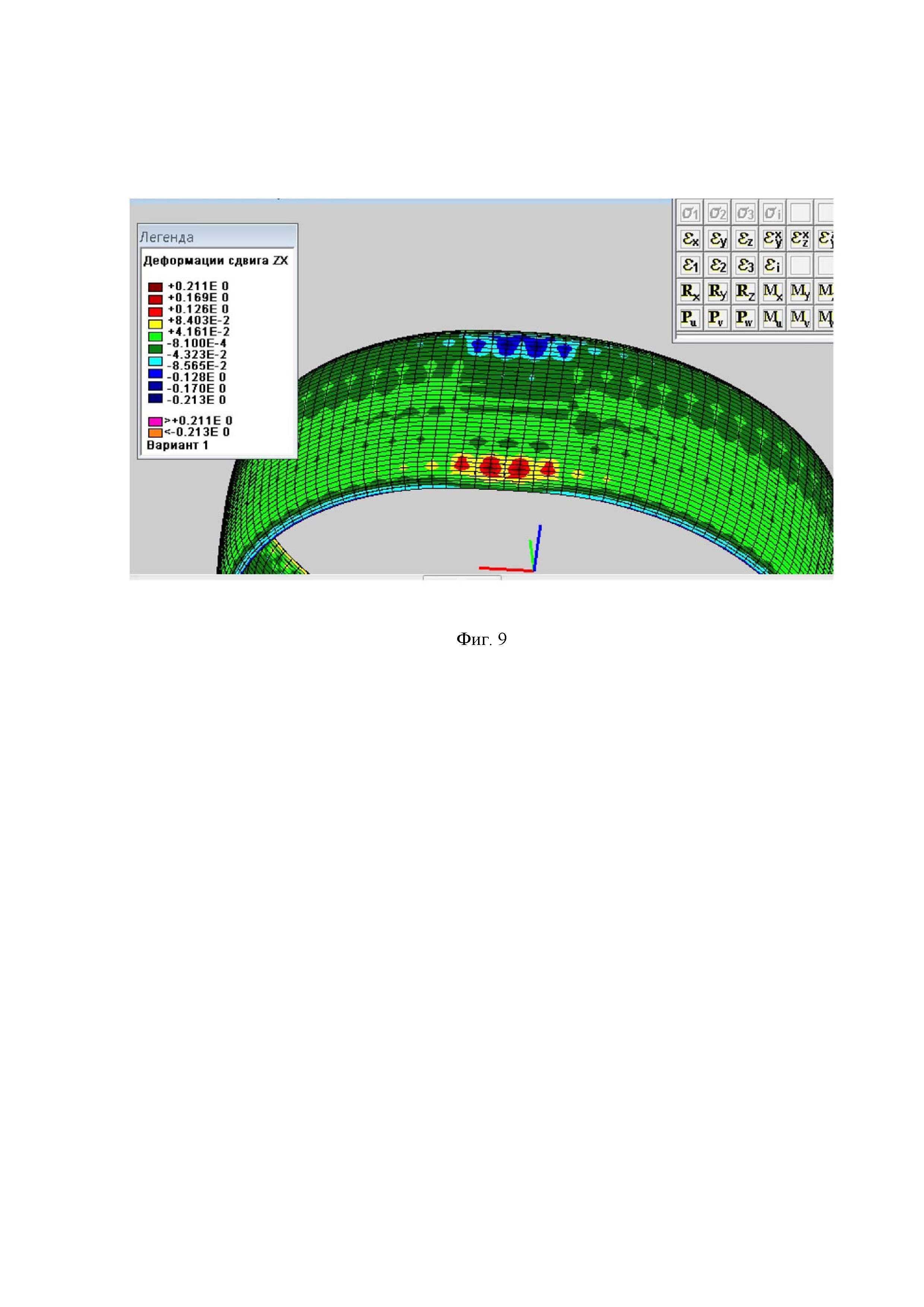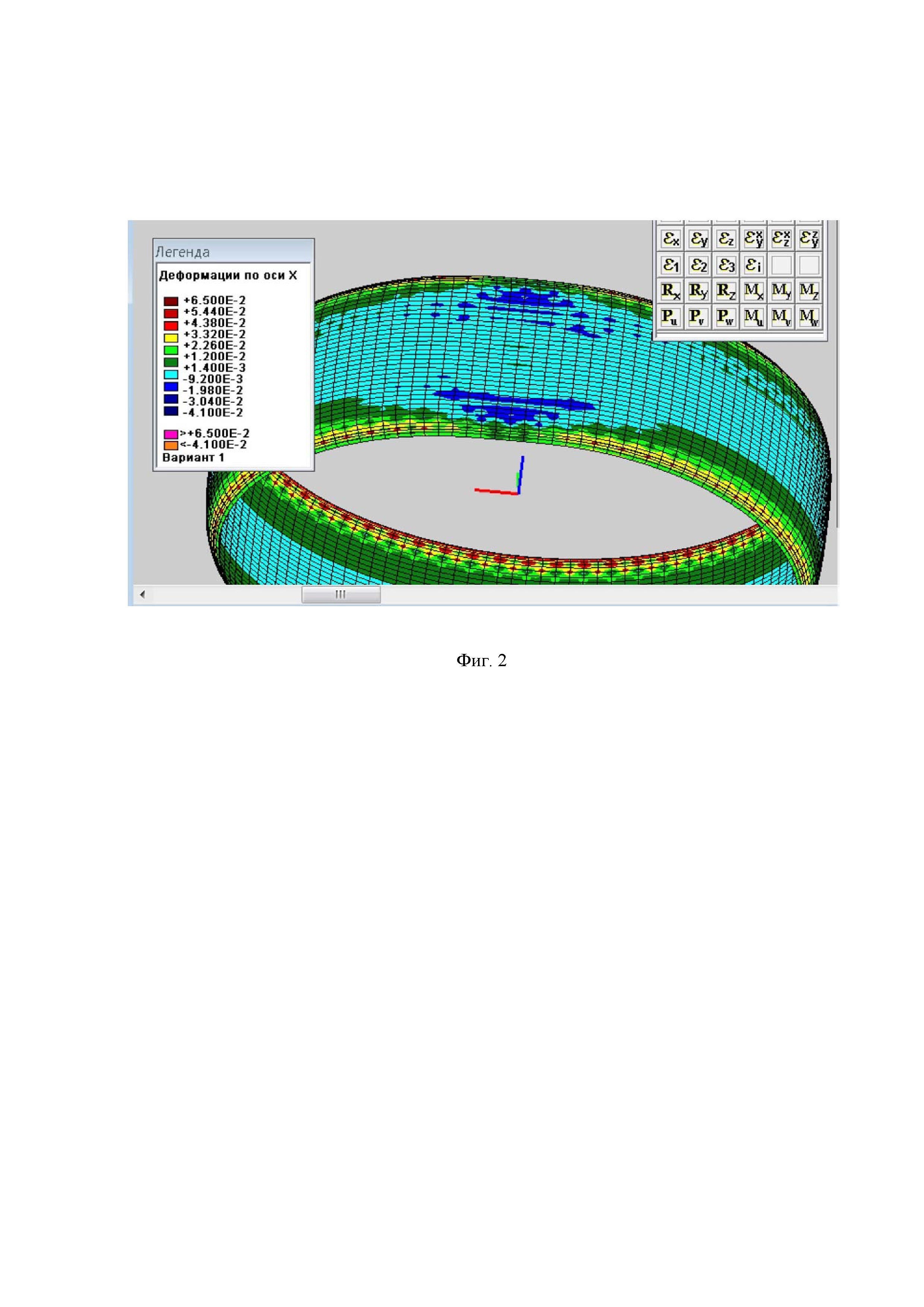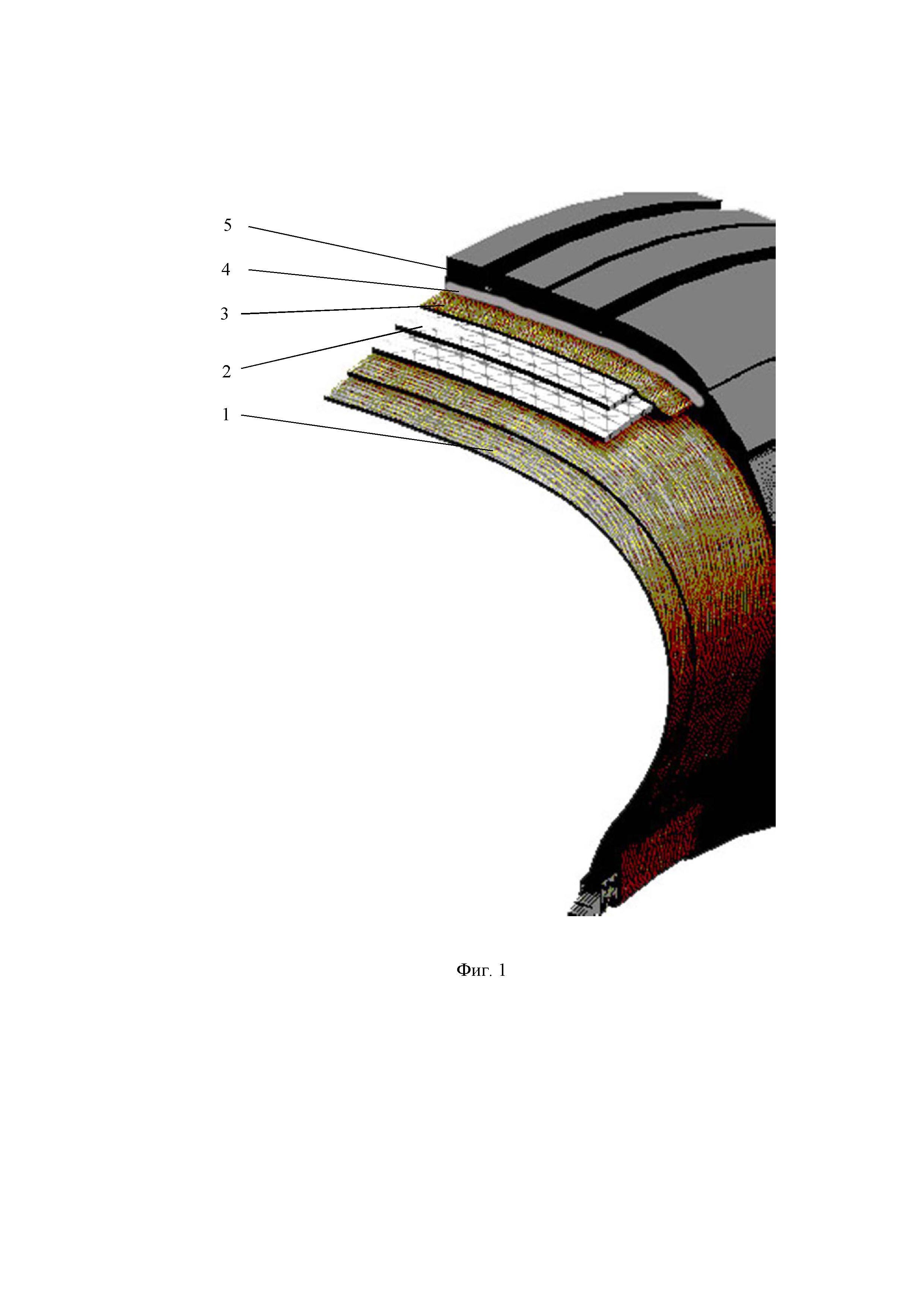 Сетчатая ткань предназначена для использования в конструкциях современных радиальных шин, которые имеют кроме основных армирующих слоев каркаса и брекера также дополнительный слой брекера, называемый экранирующим слоем (см. В.В. Рагулин «Технология шинного производства», Химия, 1970). Его основное назначение – стабилизировать основные несущие слои брекера при качении с высокой скоростью, поскольку, как правило, основные слои брекера имеют диагональное расположение нитей армирующего материала, концы которого удерживаются только за счет прочности резины (Фиг. 1). В массовом производстве радиальных шин экранирующий слой выполняют либо из раскроенного слоя полной ширины (а.с. СССР № 1421545, 1988 г.; № 1648806, 1991 г.), либо в виде аналогичных полос на краях брекера, либо спиральной намоткой ленты. Последний способ наиболее распространен на современном оборудовании. В качестве армирующего материала для экранирующего слоя в массовом производстве радиальных шин применяют чаще всего кордные ткани с линейной плотностью 940х1, 940х2, 1100x1, 1100х2, 1400х1, 1400х2 из различных полимеров (полиамид, арамид, полиэфир). Также известна ткань для образования экранирующего слоя, выполненная в виде ленты из одиночных термообработанных, пропитанных крученых нитей (монокорд) (патент США № 4284117, опубл. 18.08.1981). При этом лента изготавливается с помощью специального экструдора. Известны также ткани, образованные путем наложения необрезиненного клейкого материала из предварительно пропитанных и термообработанных сдвоенных нитей (патенты РФ № 2242372, опубл. 20.12.2004; № 2269419, опубл. 10.02.2006). При качении шины в зоне контакта с дорогой происходит деформирование каркаса и основных слоев брекера ввиду закроя слоев брекера в противоположных диагональных направлениях, возникают существенные сдвиговые деформации в резине. Деформации особенно существенны в зоне кромок брекера. Кроме того, добавляются еще центробежные силы, возникающие при качении шины. Для снижения уровня деформаций и перемещений предназначен экранирующий слой. Однако надо еще учесть, что поверх брекера расположен протектор и сдвиговые деформации его нижней части в совокупности с деформациями от контакта с дорогой могут существенно снизить долговечность резины протектора. Для снижения влияния сдвиговых деформаций в конструкции шины применяется так называемый подканавочный слой – слой резины поверх брекера под протектором. Очень часто этот слой в современной технологии шин делается из резины со свойствами, отличными от свойств резины протектора для обеспечения лучшей долговечности и экономичности конструкции в целом. Армирующие нити экранирующего слоя брекера ограничивают деформирование только в окружном направлении, поскольку либо не связаны между собой, либо удерживаются утком, линейная плотность и частота которого очень малы в сравнении с линейной плотностью и частотой основной нити. К примеру, для кордных тканей линейная плотность утка – 20–30 дтекс, частота – всего 8–30 нитей на дециметр, что в 30 и более раз меньше линейной плотности основной нити. Известен армирующий корд брекера, сформированный путем спиральной намотки в виде полосы, содержащей по меньшей мере два корда, таким образом, чтобы она составляла угол от 0 до 5° с экваториальной плоскостью на пакете брекера. Армирующий корд слоя бреке