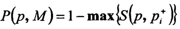 - мера несоответствия текущего изображения объектов на набор положительных примеров; S(p, pj) мера соответствия двух изображений, определяется по формуле:
