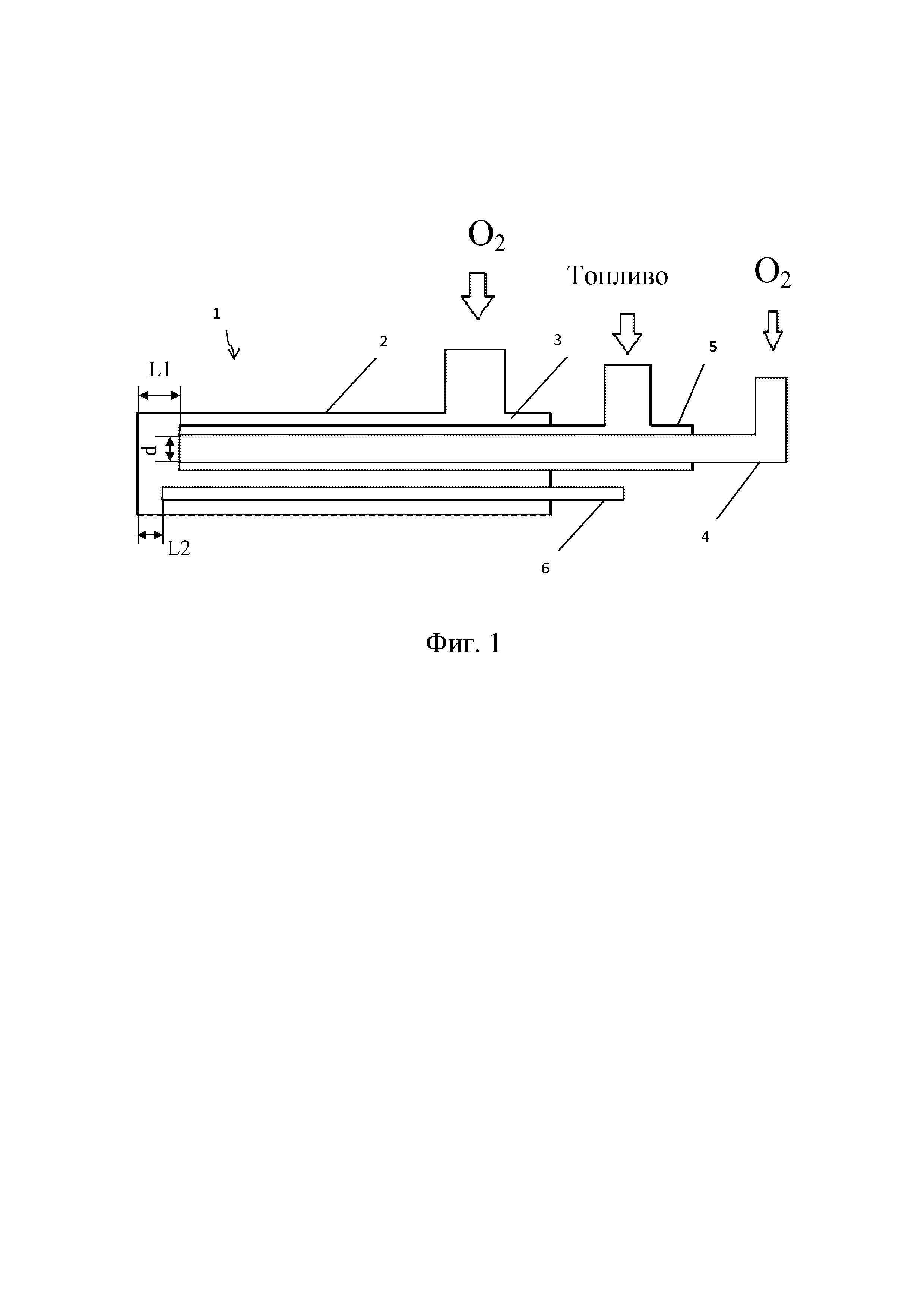 1. Топливно-кислородная горелка (1), выполненная с возможностью размещения в стенке плавильной печи и содержащая: корпус (2), определяющий канал (3) подачи окислителя, проходящий в продольном направлении, от верхнего по потоку конца до нижнего по потоку конца корпуса с выпускным отверстием на нижнем по потоку конце корпуса, канал (5) подачи топлива, проходящий в продольном направлении корпуса, выпускное отверстие которого расположено у нижнего по потоку конца корпуса, и кислородный инжектор (4), проходящий в продольном направлении внутри канала (5) подачи топлива, выпускное отверстие которого расположено у нижнего по потоку конца корпуса, а также электрод (6) розжига и контроля пламени, проходящий внутри канала (3) подачи окислителя, выполненный с возможностью первоначального розжига горелки и последующего контроля пламени, причем указанный электрод (6) розжига и контроля пламени выполнен с возможностью соединения с системой автоматического управления розжигом и контроля пламени горелки. 2. Топливно-кислородная горелка по п. 1, в которой электрод (6) розжига и контроля пламени представляет собой ионизационный электрод. 3. Топливно-кислородная горелка по п. 1 или 2, в которой кислородный инжектор (4) выполнен с возможностью подачи окислителя с дозвуковой скоростью. 4. Топливно-кислородная горелка по п. 1 или 2, в которой кислородный инжектор выполнен с возможностью подачи окислителя со сверхзвуковой скоростью. 5. Топливно-кислородная горелка по п. 4, в которой кислородный инжектор (5) оснащен соплом Лаваля. 6. Топливно-кислородная горелка по любому из пп. 1-5, в которой концентрация кислорода в окислителе, вводимом через кислородный инжектор (4), выше концентрации кислорода, вводимого через канал (3) подачи окислителя. 7. Топливно-кислородная горелка по любому из пп. 1-6, в которой топливо представляет собой природный газ. 8. Топливно-кислородная горелка по любому из пп. 1-7, содержащая заземляющий электрод, расположенный на расстоянии 3-4 мм в поперечном направлении от электрода (6) розжига и контроля пламени, причем нижние по потоку концы заземляющего электрода и электрода (6) розжига и контроля пламени расположены на одинаковом расстоянии от нижнего по потоку конца корпуса (2) горелки. 9. Топливно-кислородная горелка по любому из пп. 1-8, в которой расстояние (L1) от нижнего по потоку конца кислородного инжектора (4) до нижнего по потоку конца корпуса (2) горелки равно внешнему диаметру (d) кислородного инжектора (4), а расстояние (L2) от нижнего по потоку конца электрода (6) розжига и контроля пламени до нижнего по потоку конца корпуса (2) горелки равно 0,5d. 10. Топливно-кислородная горелка по любому из пп. 1-9, выполненная с возможностью установки в фурму, расположенную в стенке плавильной печи, при этом расстояние от нижнего по потоку конца корпуса горелки (2) до нижнего по потоку конца фурмы составляет от 2D до 3D, где D-внутренний диаметр фурмы. 11. Топливно-кислородная горелка по п. 10, выполненная с возможностью установки в фурму, рассчитанную на подачу дутья с расходом 700-1200 м3/ч при температуре 250-650°С. 12. Система автоматического управления розжигом и контролем пламени топливно-кислородной горелки по любому из пп. 1-11, причем указанная система содержит устройство розжига, сигнализатор горения, блок отсечных клапанов, выполненный с возможностью соединения с газокислоро
