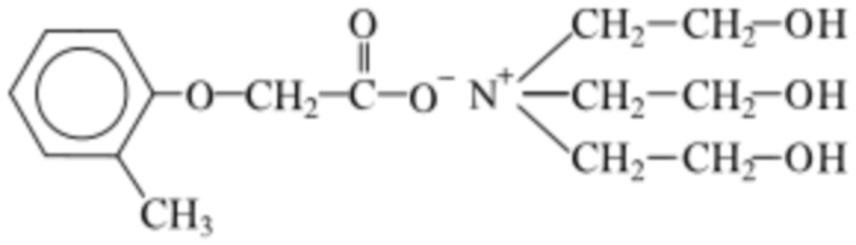 - был синтезирован в начале 1970-х годов в Иркутском институте химии им. А.Е. Фаворского СО РАН (ранее - Иркутском институте органической химии АН СССР) отечественным ученым М.Г. Воронковым (авторское свидетельство SU515742, дата подачи: 06.08.1973 г.). оксиэтиламмония метилфеноксиацетат 0,2 г; вспомогательные вещества: крахмал картофельный 0,0925 г; лактозы моногидрат (сахар молочный) 0,2 г; натрия стеарилфумарат 0,005 г; кремния диоксид коллоидный (аэросил) 0,0025 г. оксиэтиламмония метилфеноксиацетат 0,2 г; вспомогательные вещества: крахмал картофельный 0,095 г; лактозы моногидрат (сахар молочный) 0,2 г; кальция стеарат 0,005 оксиэтиламмония метилфеноксиацетат 20-60 микрокристаллическая целлюлоза 10,2-28 лактозы моногидрат или маннитол или кальция гидрофосфат 29-47 натрия стеарилфумарат или магния стеарат или стеариновая кислота 0,5-3 кремния диоксид коллоидный (аэросил) 0,3-2. оксиэтиламмония метилфеноксиацетат 40 микрокристаллическая целлюлоза 18,5 лактозы моногидрат 40 натрия стеарилфумарат 1 кремния диоксид коллоидный (аэросил) 0,5 Получение состава-прототипа, час Получение заявляемого состава, час 5 2-2,5 Компонент Количество в мг Количество в мас. % Оксиэтиламмония метилфеноксиацетат 200 40 Лактозы моногидрат 200 40 Микрокристаллическая целлюлоза 92,5 18,5 Натрия стеарилфумарат 5 1 Кремния диоксид коллоидный (аэросил) 2,5 0,5 Компонент Количество в мг Количество в мас. % Оксиэтиламмония метилфеноксиацетат 100 20 Лактозы моногидрат 235 47 Микрокристаллическая целлюлоза 140 28 Натрия стеарилфумарат 15 3 Кремния диоксид коллоидный (аэросил) 100 2 Компонент Количество в мг Количество в мас. % Оксиэтиламмония метилфеноксиацетат 300 60 Лактозы моногидрат 51 10,2 Микрокристаллическая целлюлоза 145 29 Натрия стеарилфумарат 2,5 0,5 Кремния диоксид коллоидный (аэросил) 1,5 0,3 Компонент Количество в мг Количество в мас. % Оксиэтиламмония метилфеноксиацетат 250 50 Лактозы моногидрат 171 34,2 Микрокристаллическая целлюлоза 72,5 14,5 Натрия стеарилфумарат 4 0,8 Кремния диоксид коллоидный (аэросил) 2,5 0,5 Компонент Количество в мг Количество в мас. % Оксиэтиламмония метилфеноксиацетат 200 40 Маннитол 200 40 Микрокристаллическая целлюлоза 92,5 18,5 Натрия стеарилфумарат 5 1 Кремния диоксид коллоидный (аэросил) 2,5 0,5 Компонент Количество в мг Количество в мас. % Оксиэтиламмония метилфеноксиацетат 100 20 Маннитол 200 47 Микрокристаллическая целлюлоза 92,5 28 Натрия стеарилфумарат 5 3 Кремния диоксид коллоидный (аэросил) 2,5 2 Компонент Количество в мг Количество в мас. % Оксиэтиламмония метилфеноксиацетат 300 60 Маннитол 51 10,2 Микрокристаллическая целлюлоза 145 29 Натрия стеарилфумарат 2,5 0,5 Кремния диоксид коллоидный (аэросил) 1,5 0,3 Компонент Количество в мг Количество в мас. % Оксиэтиламмония метилфеноксиацетат 250 50 Маннитол 171 34,2 Микрокристаллическая целлюлоза 72,5 14,5 Натрия стеарилфумарат 4 0,8 Кремния диоксид коллоидный (аэросил) 2,5 0,5 Компонент Количество в мг Количество в мас. % Оксиэтиламмония метилфеноксиацетат 200 40 Кальция гидрофосфат 200 40 Микрокристаллическая целлюлоза 92,5 18,5 Натрия стеарилфумарат 5 1 Кремния диоксид коллоидный (аэросил) 2,5 0,5 Компонент Количество в мг Количество в мас. % Оксиэтиламмония метилфеноксиацетат 100 20 Кальция гидрофосфат 235 47 Микрокристаллическая целлюлоза 140 28 Натрия стеарилфумарат 15 3 Кремния диоксид коллоидный (аэросил) 10 2 Компонент Количество в мг Количество в мас. % Оксиэтиламмония метилфеноксиацетат 300 60 Кальция