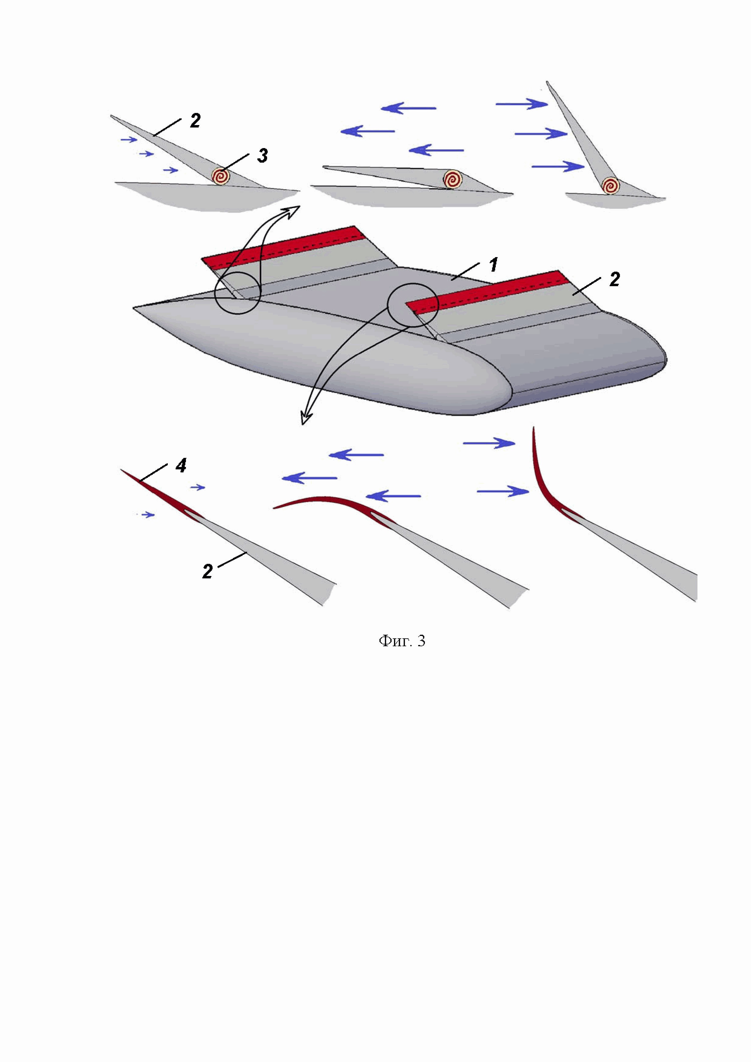 Изобретение относится к судостроению, в частности к средствам использования энергии морских волн для движения судна. Из уровня развития техники известны волновые движители в виде погруженных крыльев, принцип действия которых основан на том, что их вертикальное движение от качки судна на волнении при определённых углах атаки формирует силу тяги. Г.Е. Павленко в 1935 г. предложил использовать крыло с переменным углом атаки, автоматически регулируемым пружинными ограничителями [Устройство для использования качки на волнении для передвижения судна, Авт. свид. 47562, МКИ В63Н 19/02]. Большинство разновидностей волновых движителей, предложенных впоследствии разными изобретателями, было основано на этом принципе. Недостатком таких устройств является малая эффективность движителя. Причиной является то, что вертикальное движение подводных крыльев формируется не непосредственно волнением, а вследствие качки судна. То есть первичным приемником энергии волн служит корпус судна. Для формирования достаточной тяги судно должно интенсивно раскачиваться. Но при этом энергия волн в первую очередь затрачивается на создание качки и связанного с ней дополнительного сопротивления воды движению судна, а крылья играют роль в большей степени не волновых движителей, а стабилизаторов качки, вследствие чего уменьшают дополнительное волновое сопротивление. Для надводных судов эффективность волновых движителей на основе крыльев с переменным углом атаки повышается при увеличении заглубления крыльев. Это связано с увеличением относительной вертикальной скорости потока, набегающего на крылья. Такой же эффект наблюдается у волновых глайдеров, имеющих надводный корпус, обеспечивающий плавучесть и преобразующих энергию волн в качку, и подводный корпус с крыльевыми волновыми движителями, связанный с надводным корпусом буксирными канатами [Wave Power, Patent № US 7371136 B2]. При заглублении подводных крыльев амплитуды качки надводного корпуса уменьшаются, но растут ускорения, динамические нагрузки и удары волн в корпус судна. Также возможны повреждения подводных крыльев при ударах о дно на малых глубинах. Способом повышения эффективности волнового движителя является использование энергии не качки судна, а непосредственного орбитального движения воды. В первую очередь это относится к подводным и полуподводным (полупогружным) судам, а также к судам, которые вследствие особой формы корпуса (катамараны, суда с малой площадью ватерлинии) подвержены воздействию волн и качки в гораздо меньшей степени, чем надводные. Такие движители должны располагаться вблизи поверхности воды, где сосредоточена основная энергия морских волн. Примеры движителей, расположенных вблизи поверхности воды, для надводных однокорпусных и многокорпусных судов приведены в обзорной работе В.Н. Глушко [К вопросу использования энергии морского волнения движителями судов. Институт гидромеханики НАНУ. – Киев, 2017]. Недостатками таких волновых движителей для надводных судов является низкая эффективность вследствие того, что они создают дополнительные реактивные силы, увеличивающие качку судна и сопротивление воды. Кроме того, их выступающие и подвижные части недостаточно надёжны при воздействии динамических нагрузок, особенно ударов волн в штормовых условиях плавания. Наиболее близ